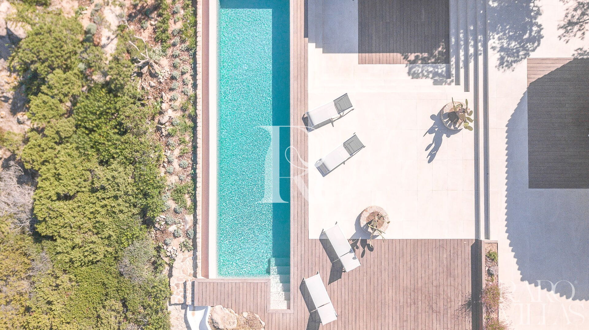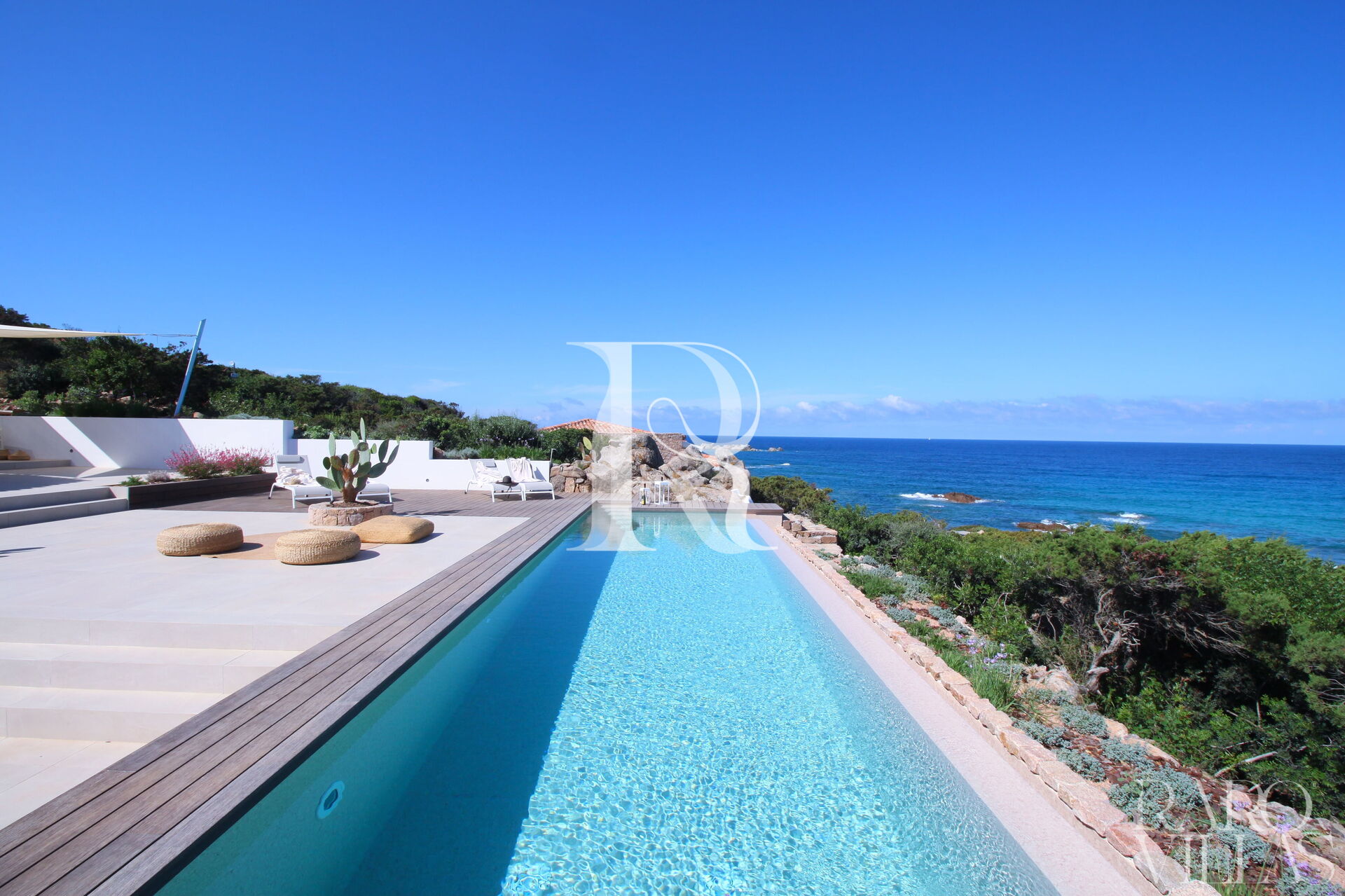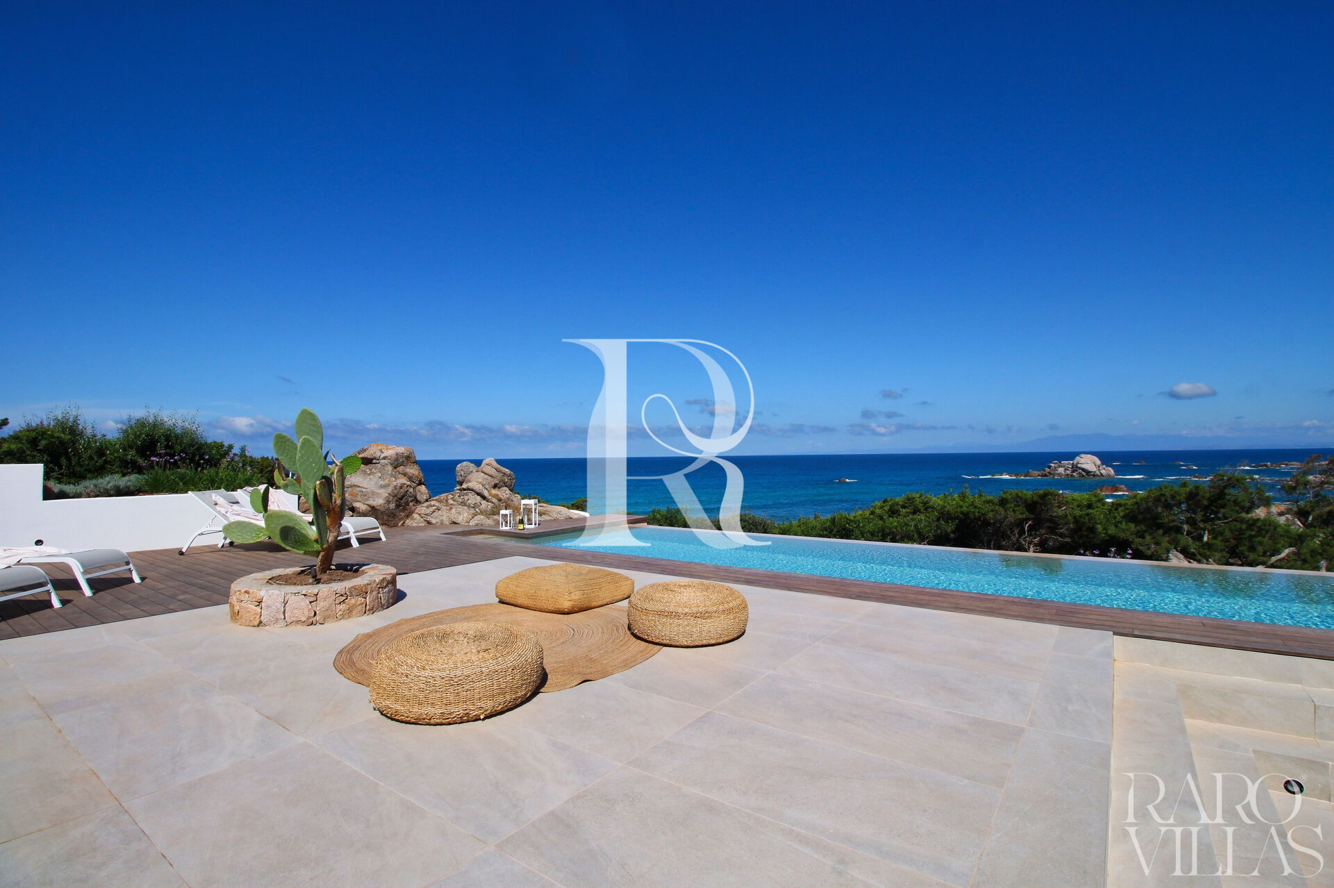 By the sea, stands a villa with an elegant contemporary and essential design, immersed in a context of extraordinary natural beauty. This residence occupies a privileged position, overlooking the water, with the sea taking on the role of undisputed protagonist. The structure unfolds horseshoe around a large panoramic terrace, enriched by a scenic infinity pool, a refined dining area and spaces dedicated to total outdoor relaxation.