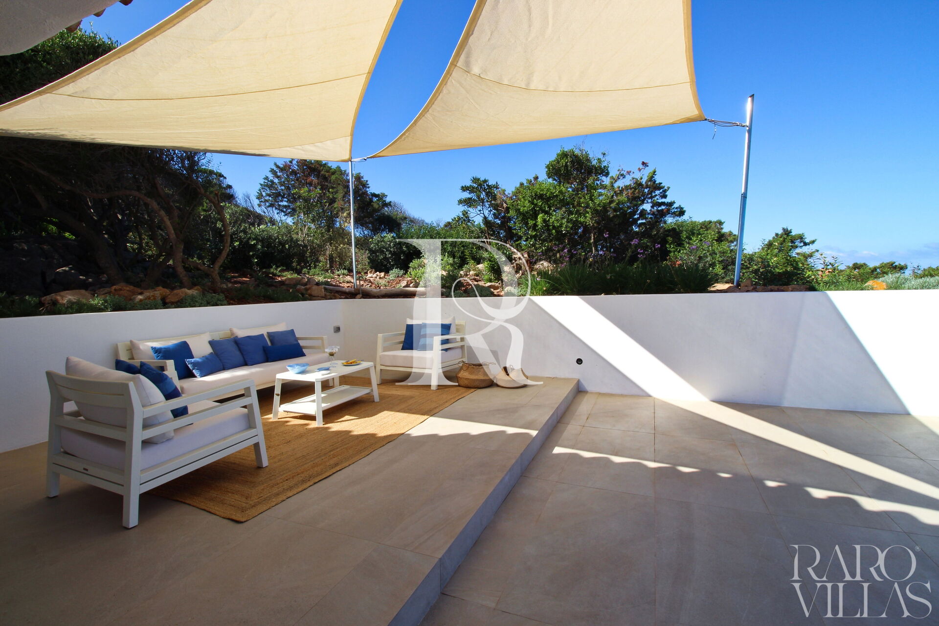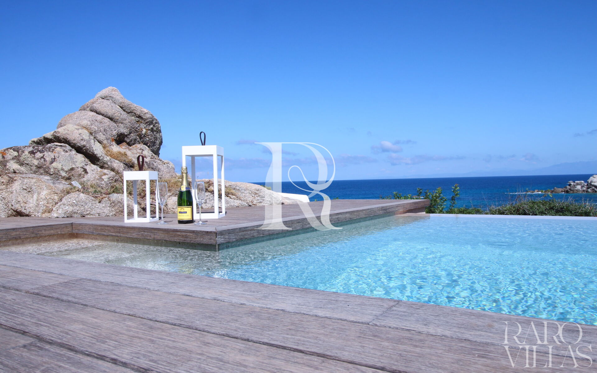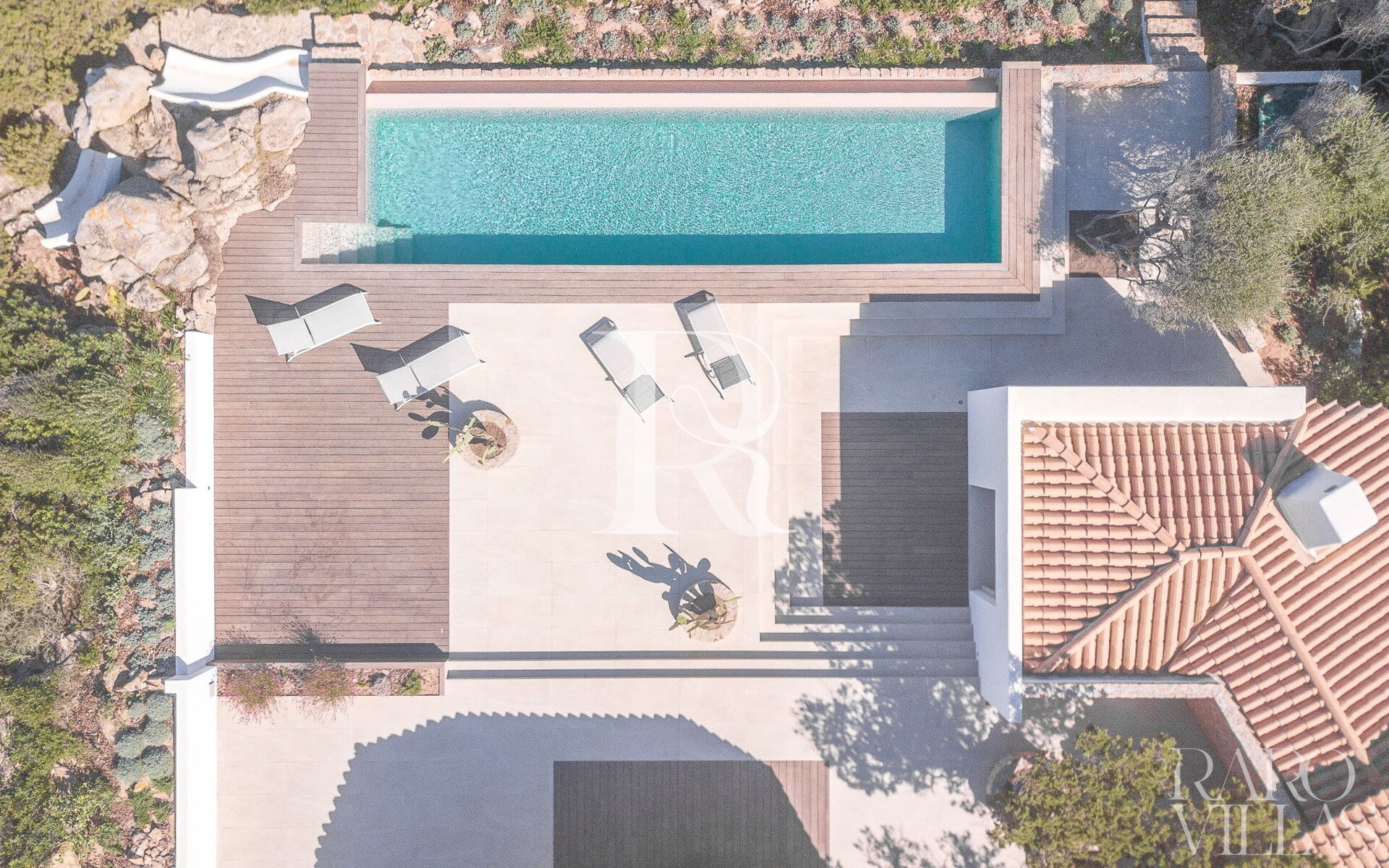 By the sea, stands a villa with an elegant contemporary and essential design, immersed in a context of extraordinary natural beauty. This residence occupies a privileged position, overlooking the water, with the sea taking on the role of undisputed protagonist. The structure unfolds horseshoe around a large panoramic terrace, enriched by a scenic infinity pool, a refined dining area and spaces dedicated to total outdoor relaxation.