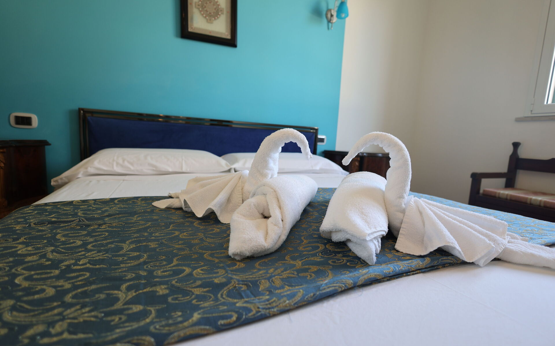 chambre avec salle de bain 4 (40 m2): deux lits à une place (largeur: 0.8m, longueur: 1.9m), internet WIFI, climatisation, tv satellitaire, coffre-fort, bassin, wc, bidet, douche, sèche-cheveux, détecteur de fumée, sortie sur la terrasse.