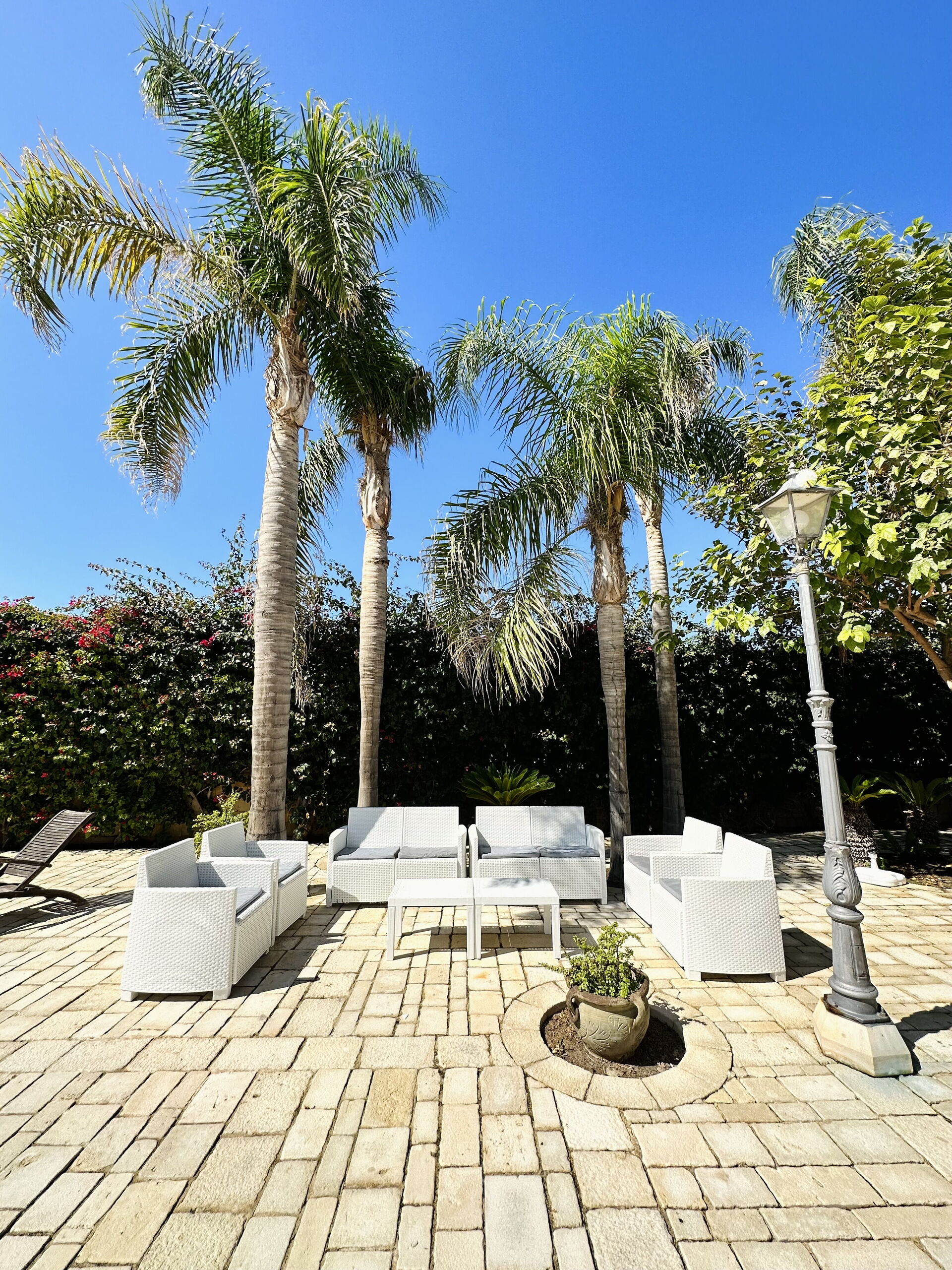 à votre arrivée vous serez reçus par le propriétaire, ou une personne de sa confiance, et vous trouverez une jolie propriété, propre et bien entretenue, avec vue sur mer parfaite pour des vacances paisibles en Sicile. Après une mouvementée journée de shopping, passez du temps avec la famille et les amis en bord de piscine en dégustant un verre de vin, un moyen idéal pour vous délasser à la fin de la journée. Pour votre plaisir, sur le terrain il y a un barbecue, bain à remous, terrain de jeu et une véranda. Si vous aimez cuisiner pour la famille et les amis il y a une cuisine bien equipée y compris machine à café, four micro-onde, grille-pain, cuisinière et réfrigérateur, ainsi que, assez de vaisselle et couverts jusqu'à 16 personnes.