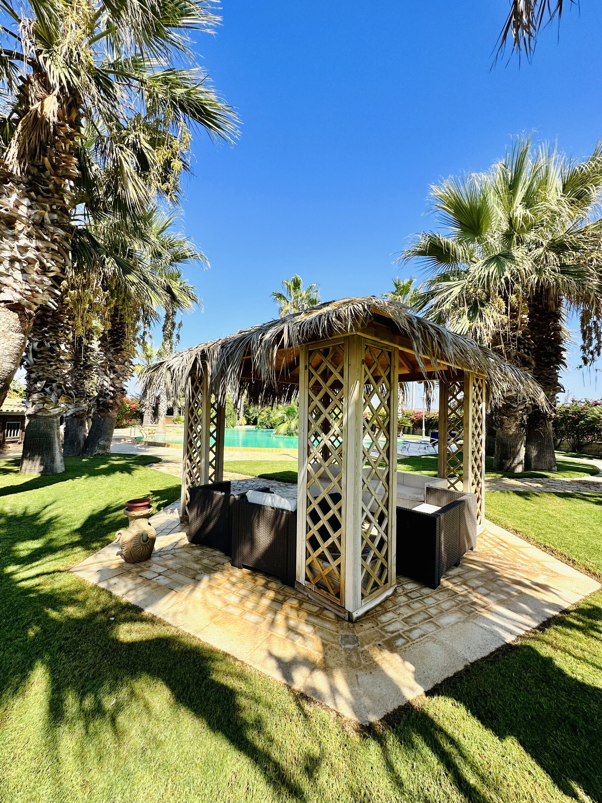 jardin (1500 m2): piscine (privé, largeur: 17m, longueur: 28m, profondeur: 1.5m, profondeur max.: 2.5m, profondeur min.: 0.5m, en plein air), bain à remous extérieur (largeur: 2.5m, longueur: 3m), douche, barbecue, espace extérieur pour les repas en plein air, table à manger, pavillon, chaise longue, clôturé /clôturée, propriété clôturée, court de tennis.