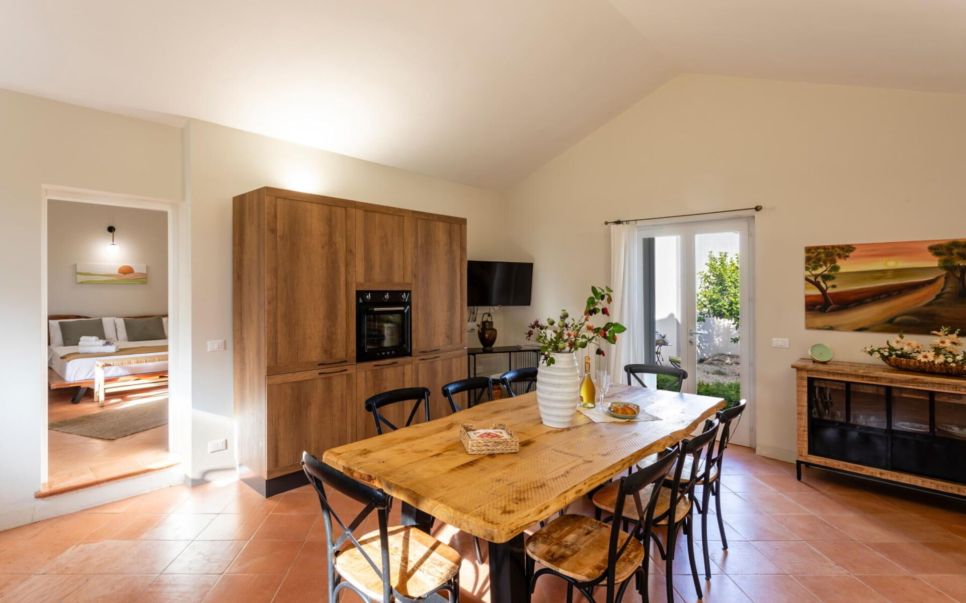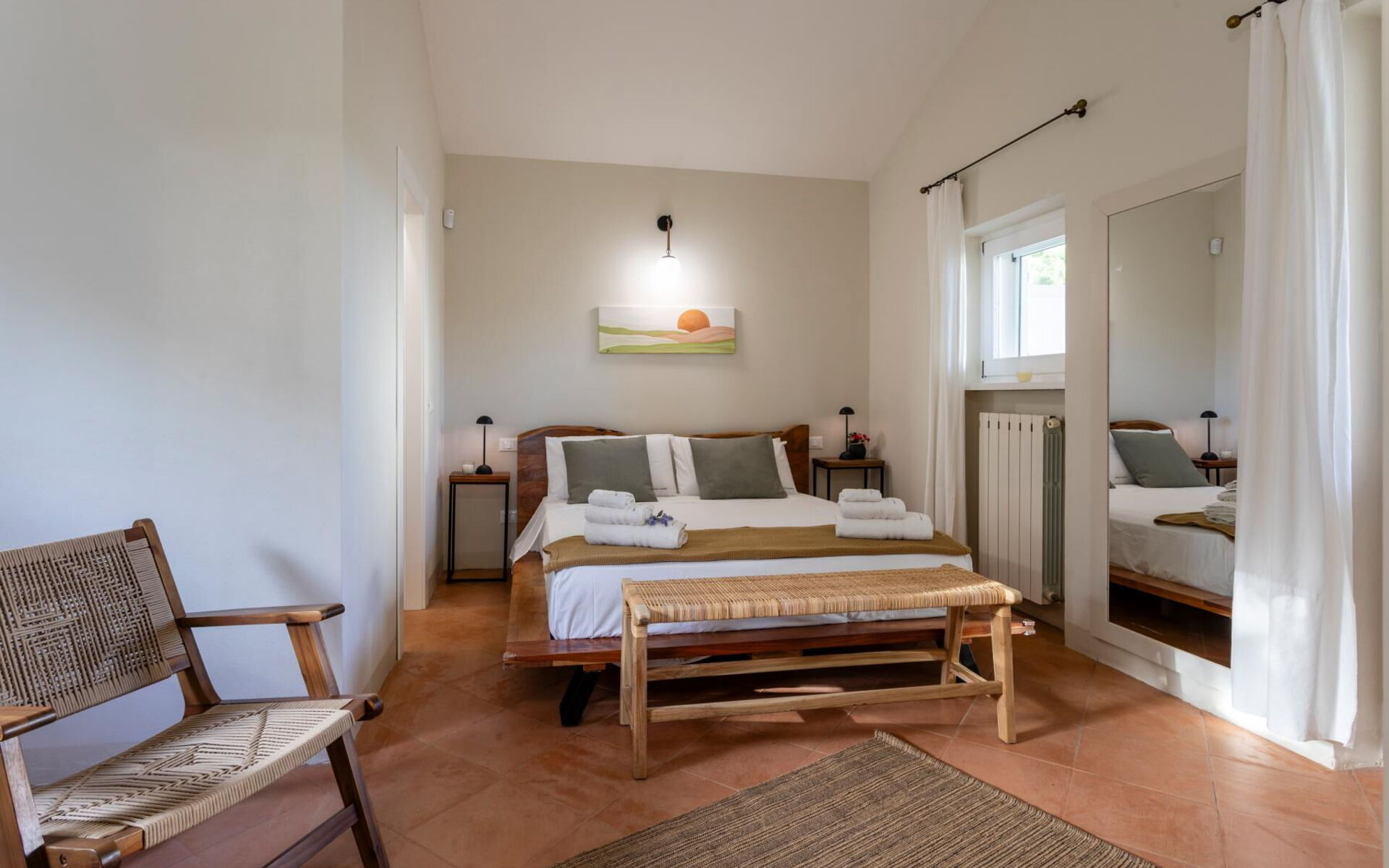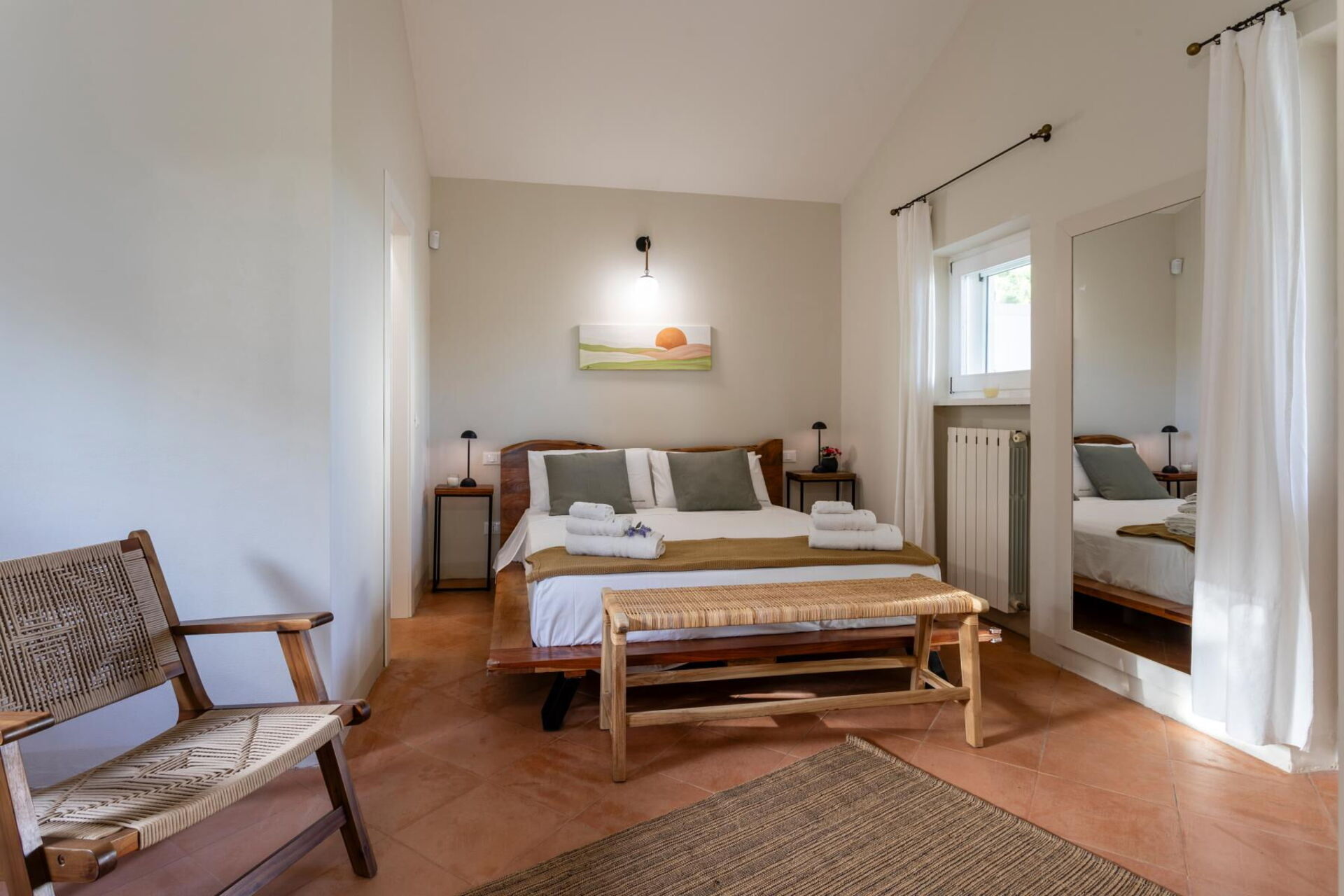 In the main building, in addition to the bright kitchen and living room, there are 3 double bedrooms, all with private bathroom, 2 of which with an additional sofa bed.