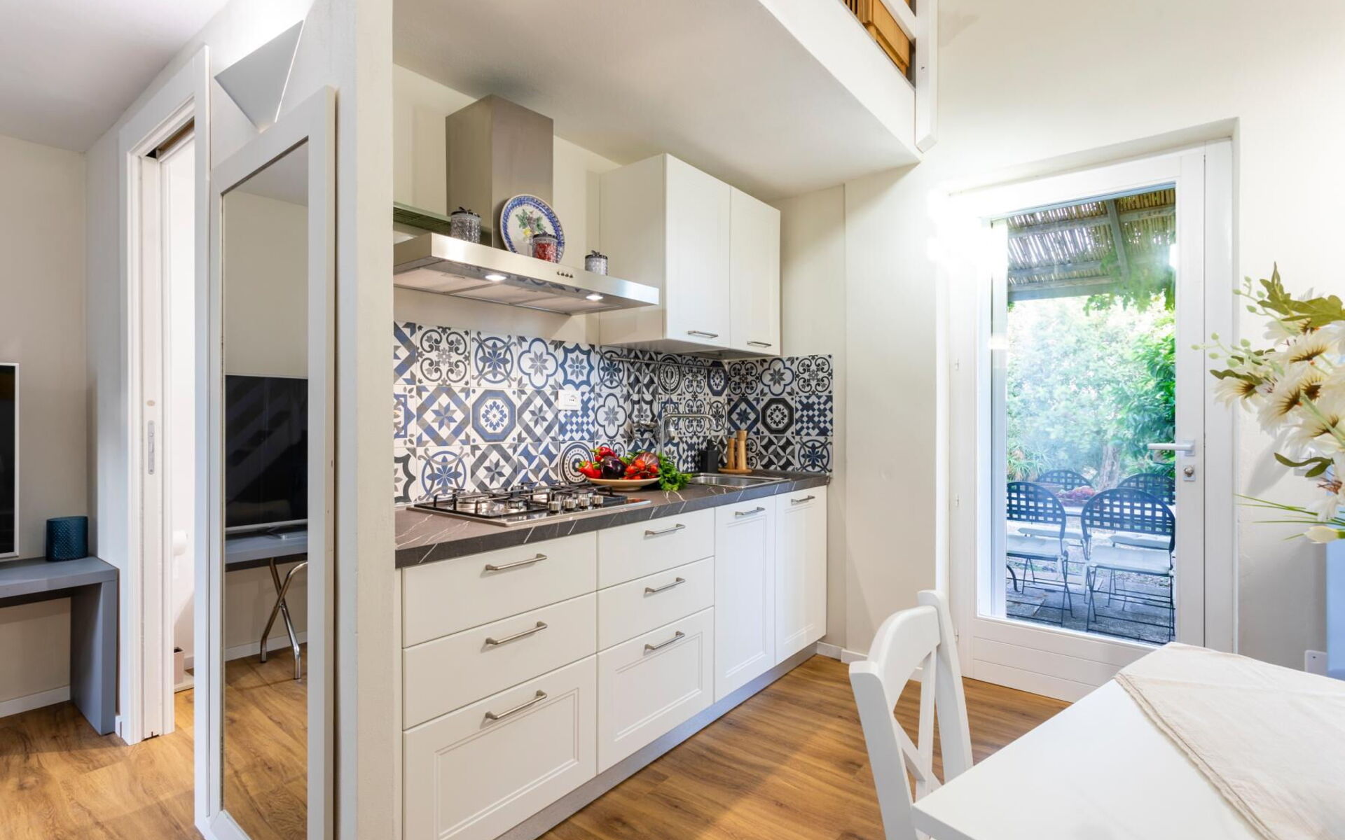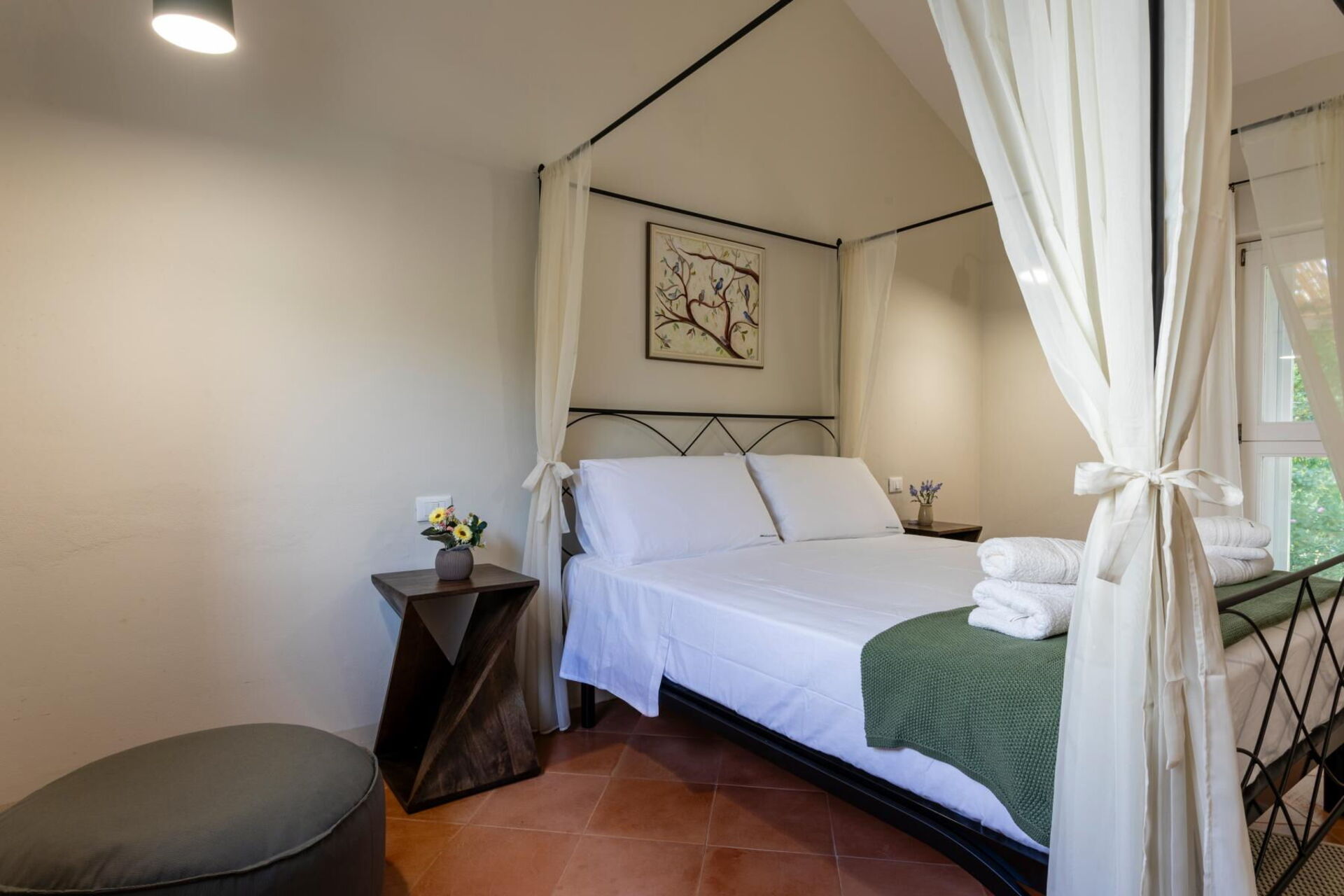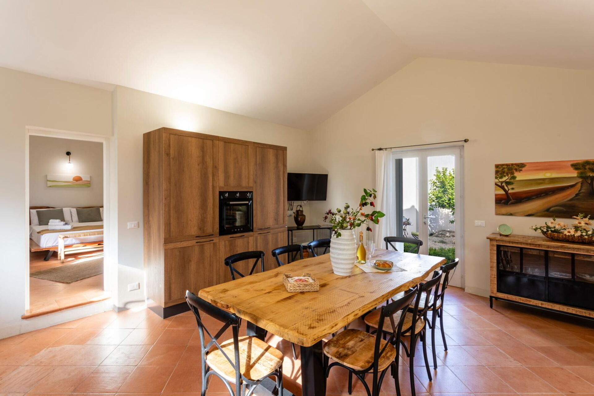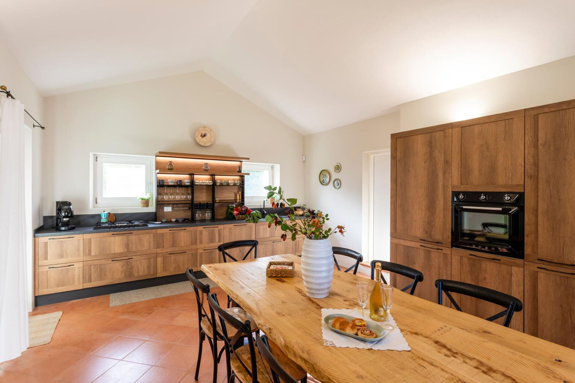 In the main building, in addition to the bright kitchen and living room, there are 3 double bedrooms, all with private bathroom, 2 of which with an additional sofa bed.