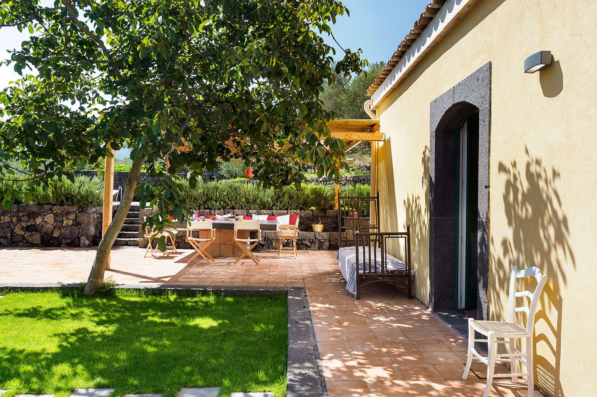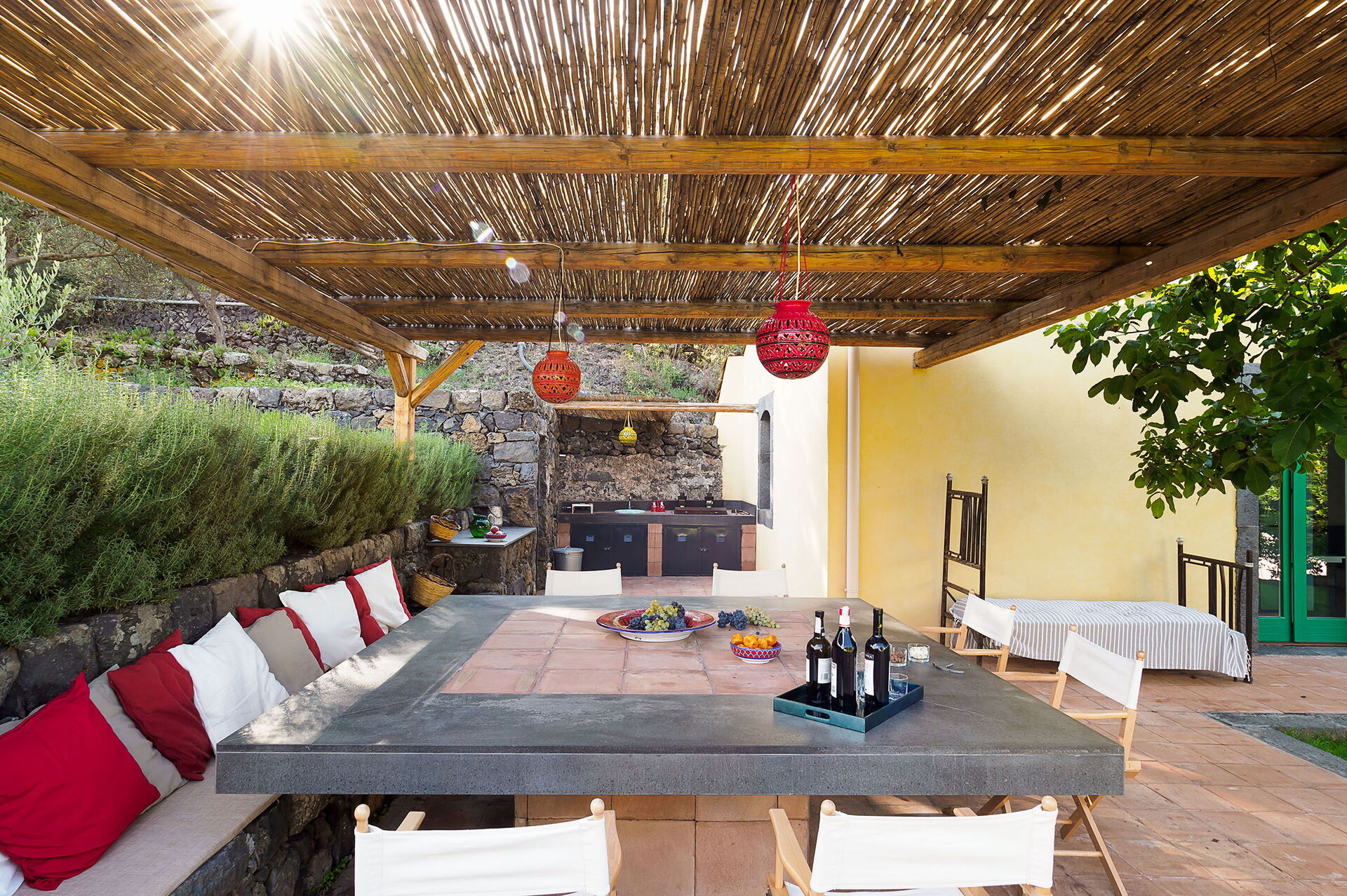 à l'arrivée à Villa Tranquilla - Randazzo, Sicilia vous trouverez une jolie propriété, propre et bien entretenue, avec vue sur les collines et montagnes idéale pour des vacances tranquilles en Sicile. Après une épuisante journée de visites, passez du temps avec la famille et les amis en bord de piscine en dégustant un verre de vin, un moyen idéal pour vous détendre à la fin de la journée. Manger avec les amis et la famille est une importante partie de la culture italienne. Profitez de la cuisine bien équipée pour préparer les repas avec des produits locaux pendant vos vacances. La cuisine comprend machine à café, grille-pain, cuisinière et réfrigérateur, ainsi que, abondance de vaisselle et couverts pour un maximum de dix personnes.
