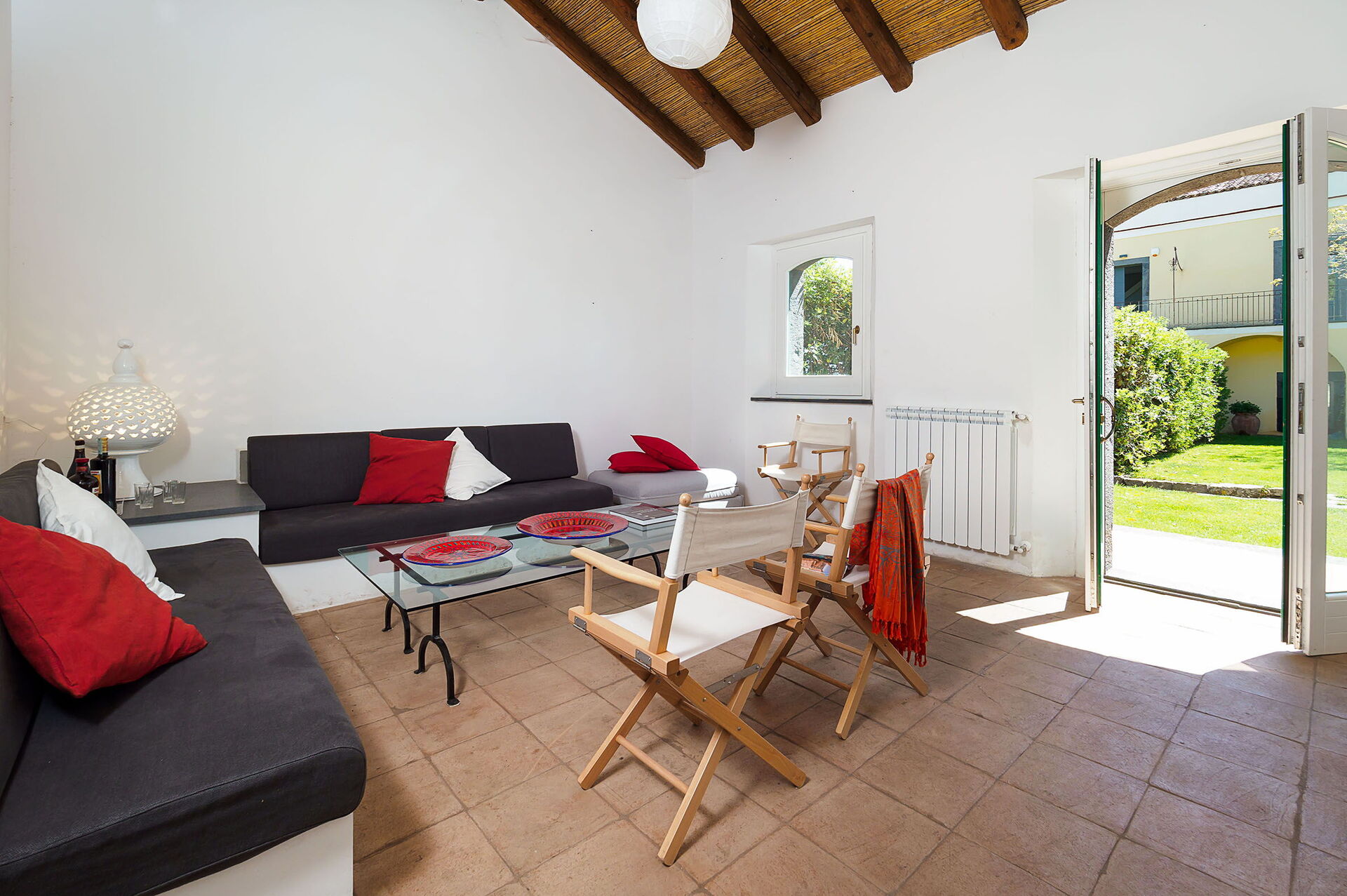 Salon: deux canapés (personnes: 6), cheminée, table à manger (personnes: 6), internet WIFI, internet, climatisation, télévision, sortie sur le jardin.