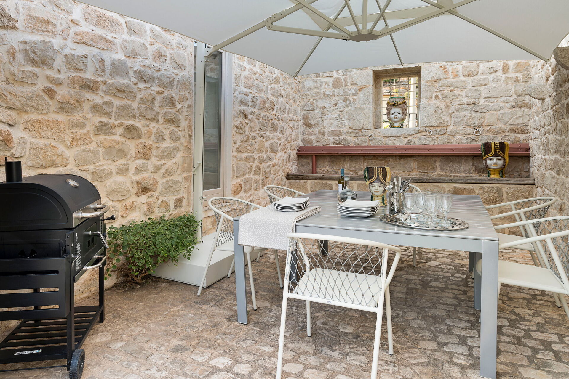 terrasse: espace extérieur pour les repas en plein air, table à manger (personnes: 6), internet WIFI, barbecue, meuble de terrace.