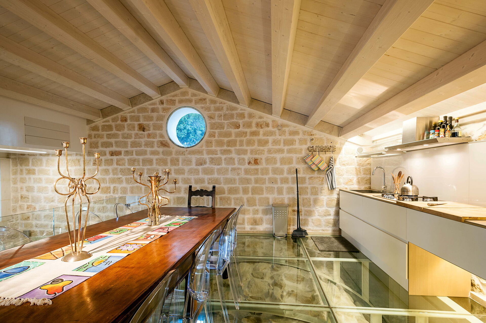 cuisine: cuisine bien équipée, table à manger (personnes: 10), lave-vaisselle, réfrigérateur, congélateur, four micro-onde, cuisinière, four, grille-pain, machine à café italienne, internet WIFI, internet, climatisation, chaise-haute, détecteur de fumée.