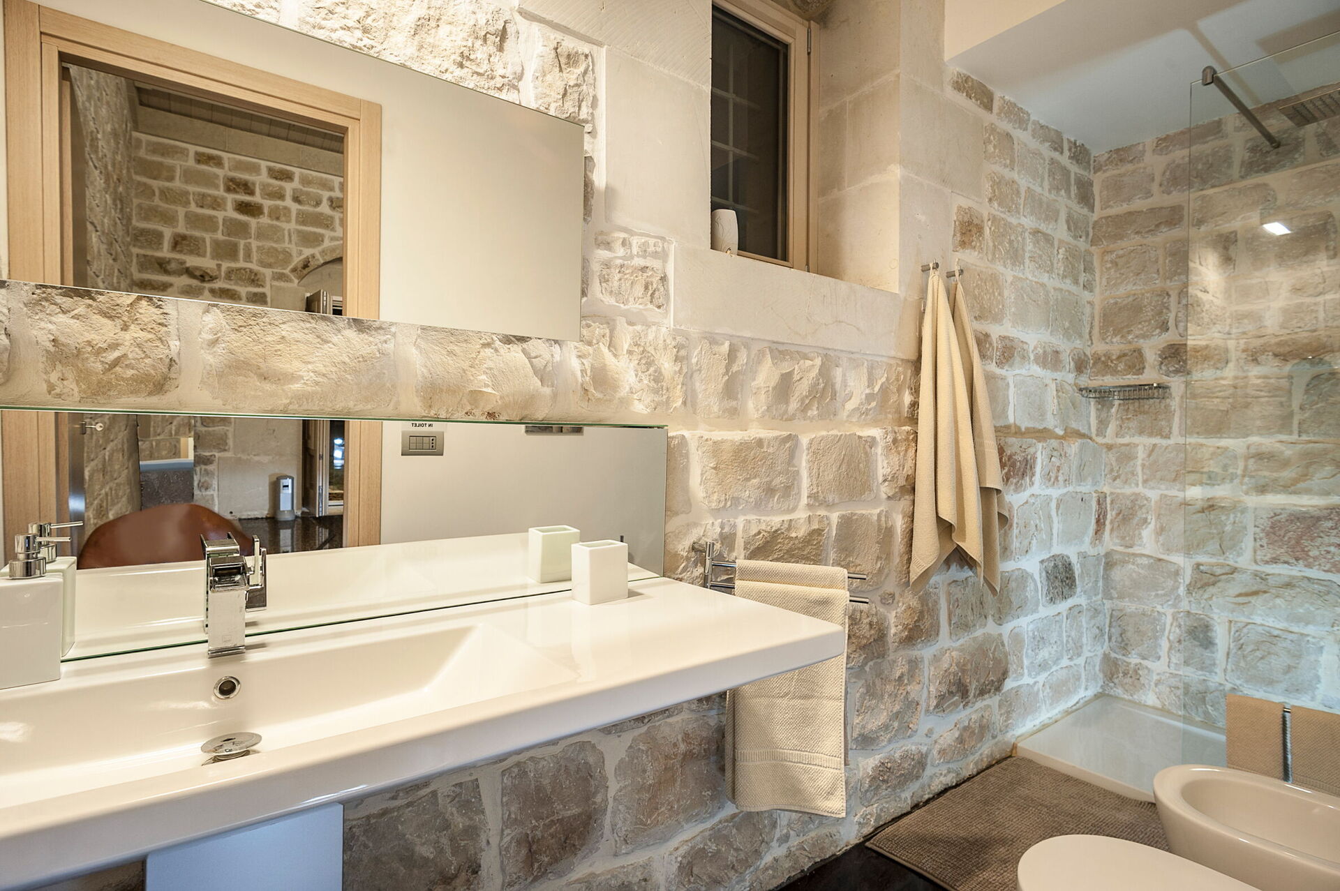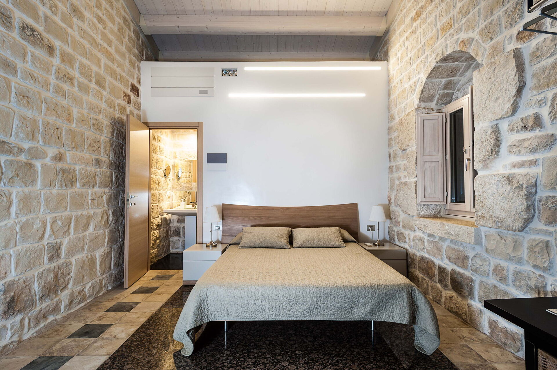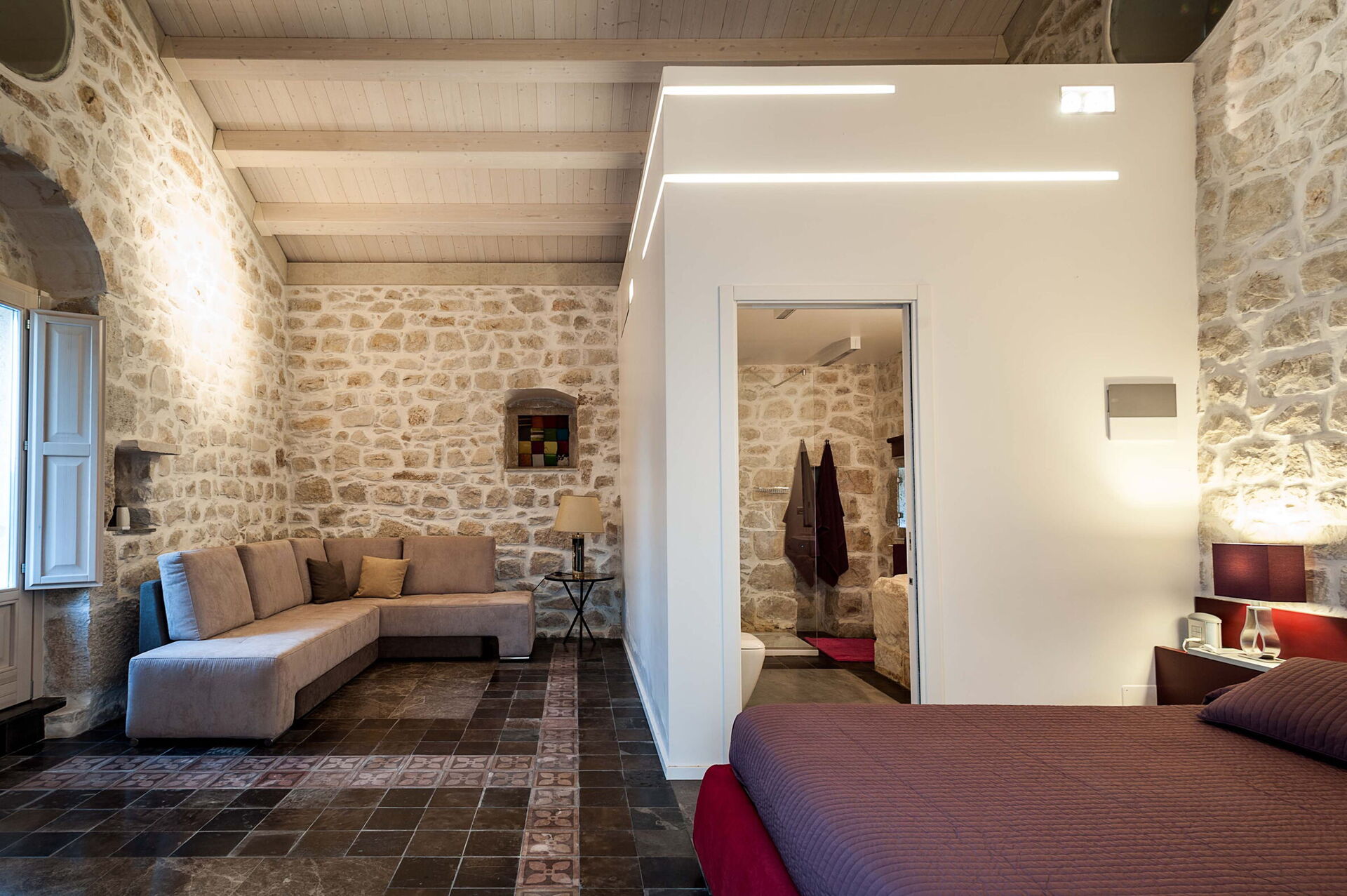 chambre avec salle de bain 2: lit double, internet WIFI, internet, climatisation, moustiquaires, canapé (personnes: 5), bassin, wc, bidet, douche, sortie sur la terrasse.