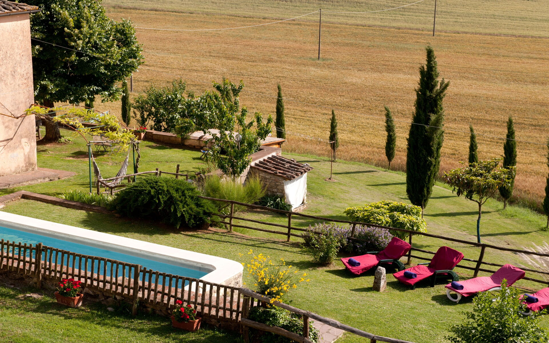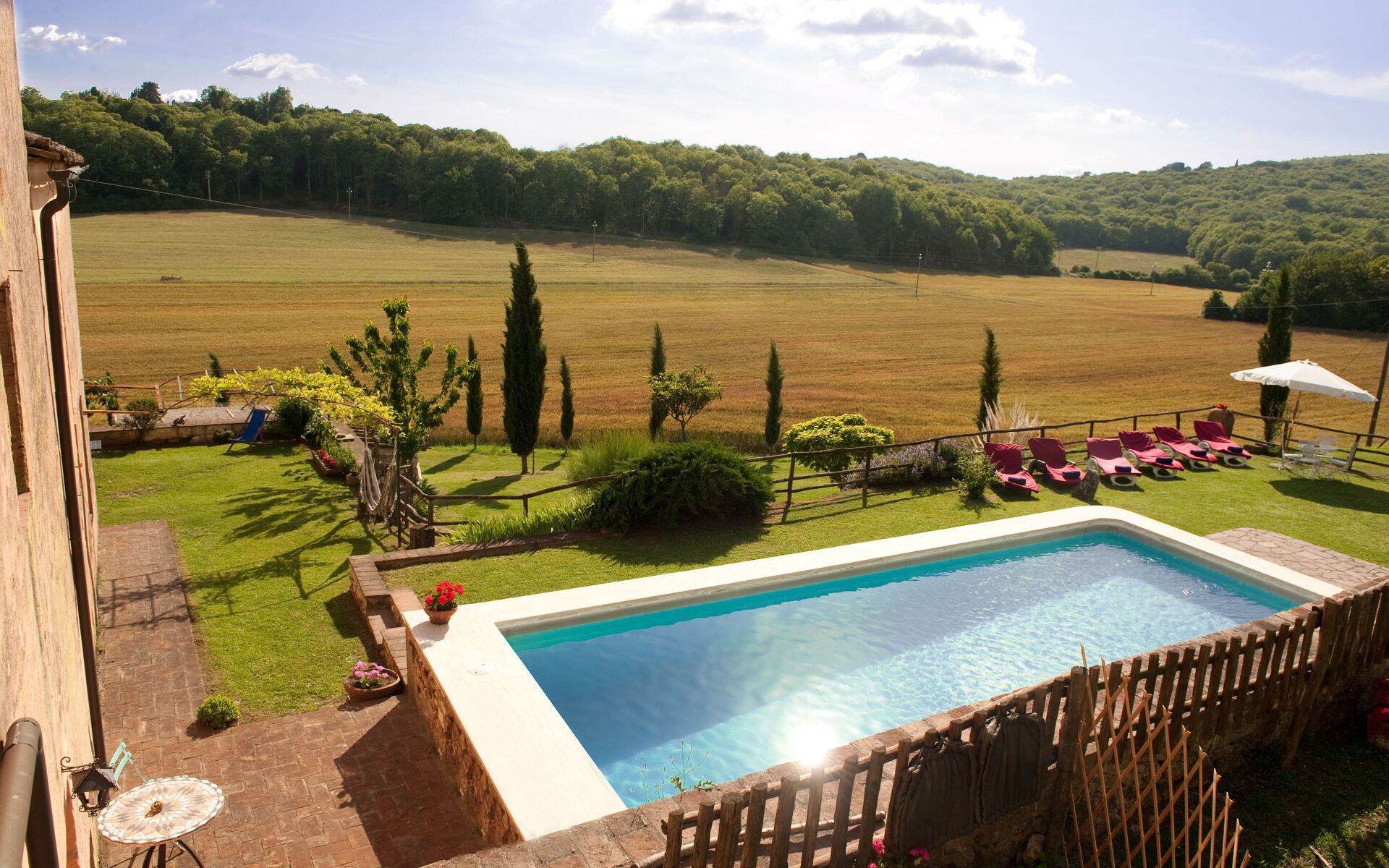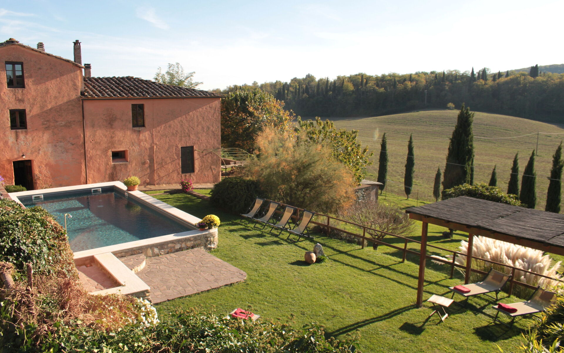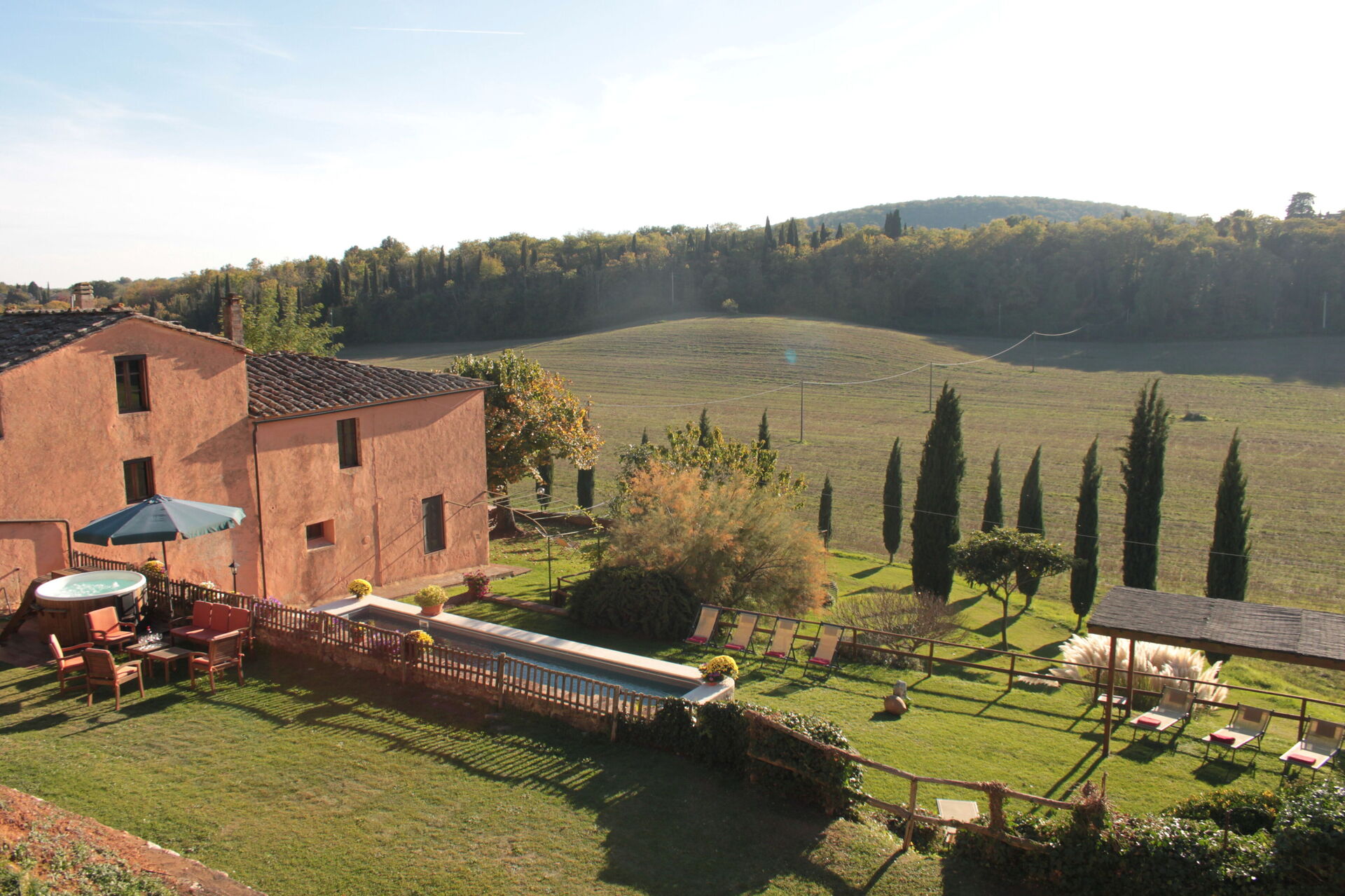 La plupart des gens aiment visiter les villes et les villages à proximité pendant les vacances, donc pour votre référence vous trouvez ici est une liste des lieux populaires avec les distances (à vol d’oiseau) en voiture depuis la propriété:Sienne 19 km, San Gimignano 33 km, Greve In Chianti 53 km, Montalcino 55 km et Florence 68 km.