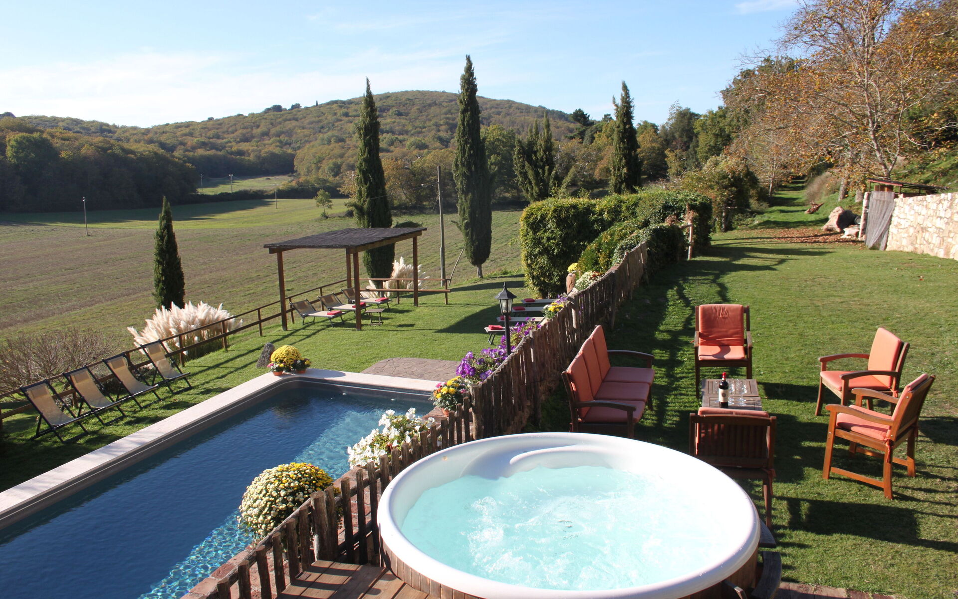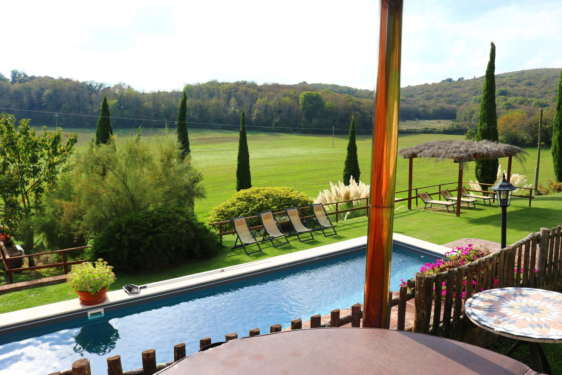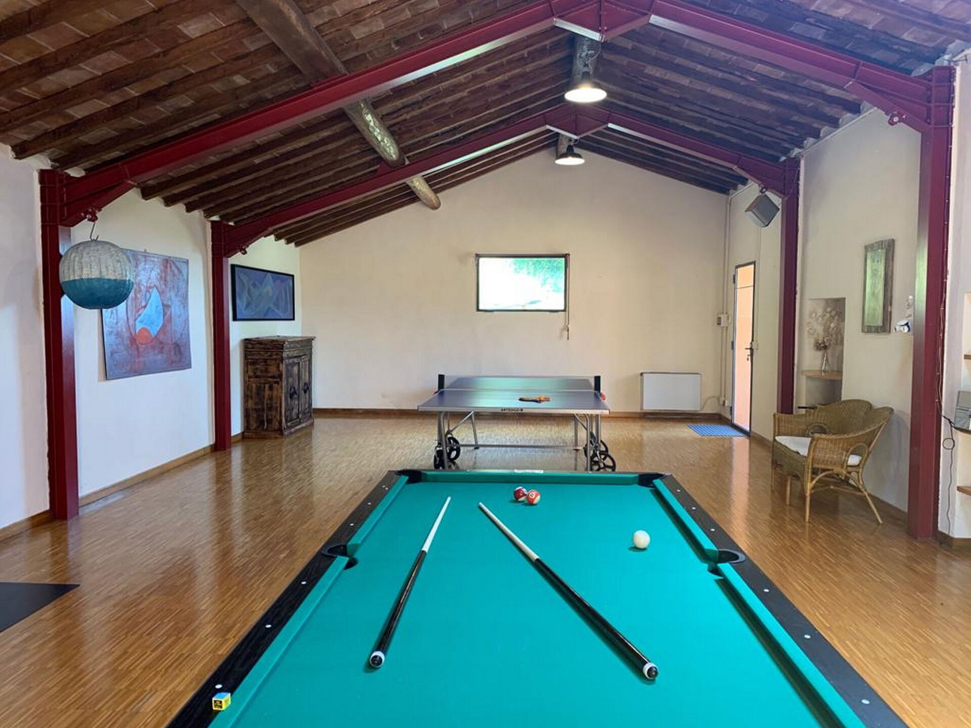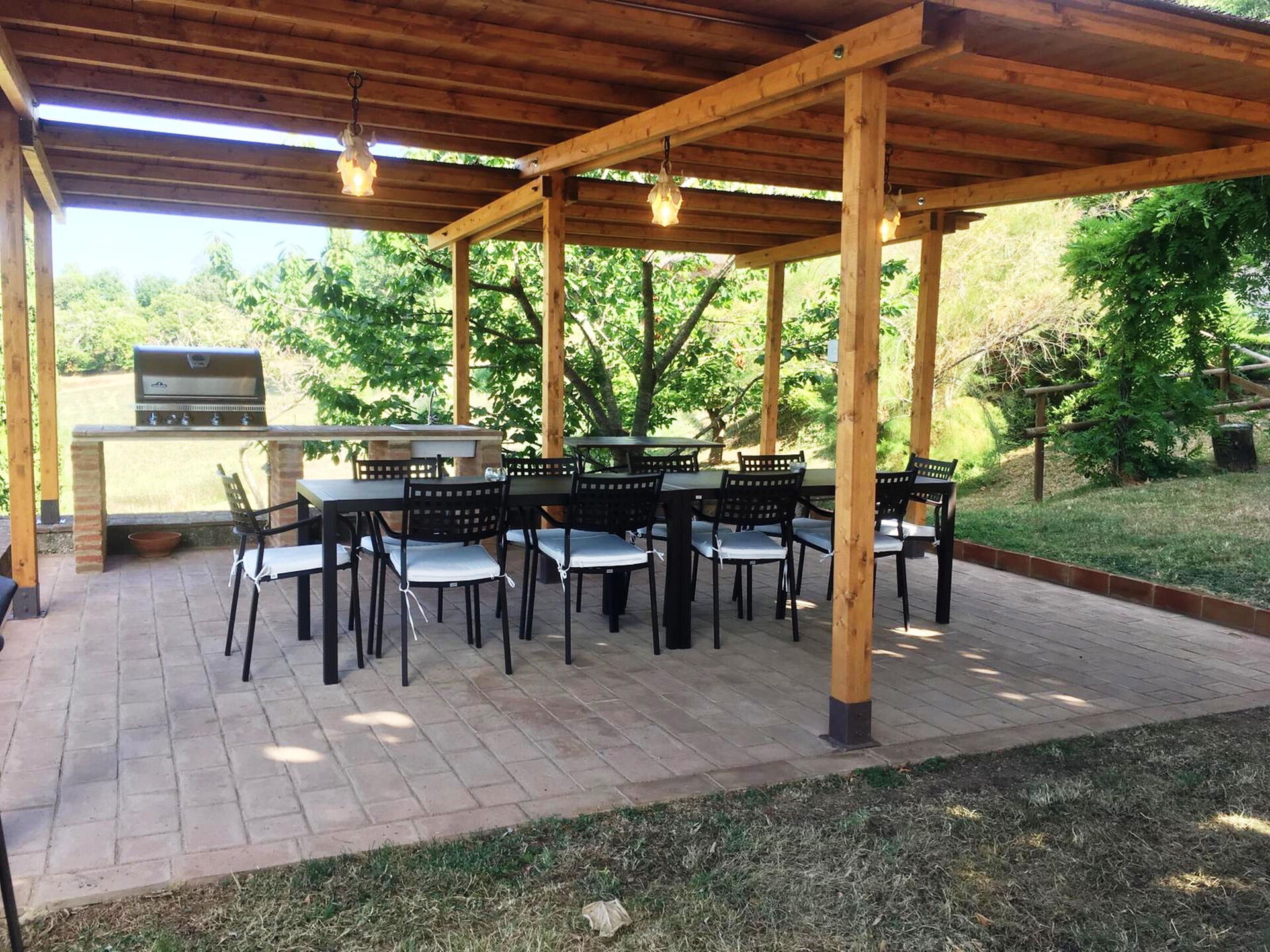 jardin (1000 m2): piscine, bain à remous extérieur, douche, internet WIFI, barbecue, espace extérieur pour les repas en plein air, table à manger (personnes: 14), pavillon, meuble de jardin, 14 chaises longues, aire de jeux pour les enfants.