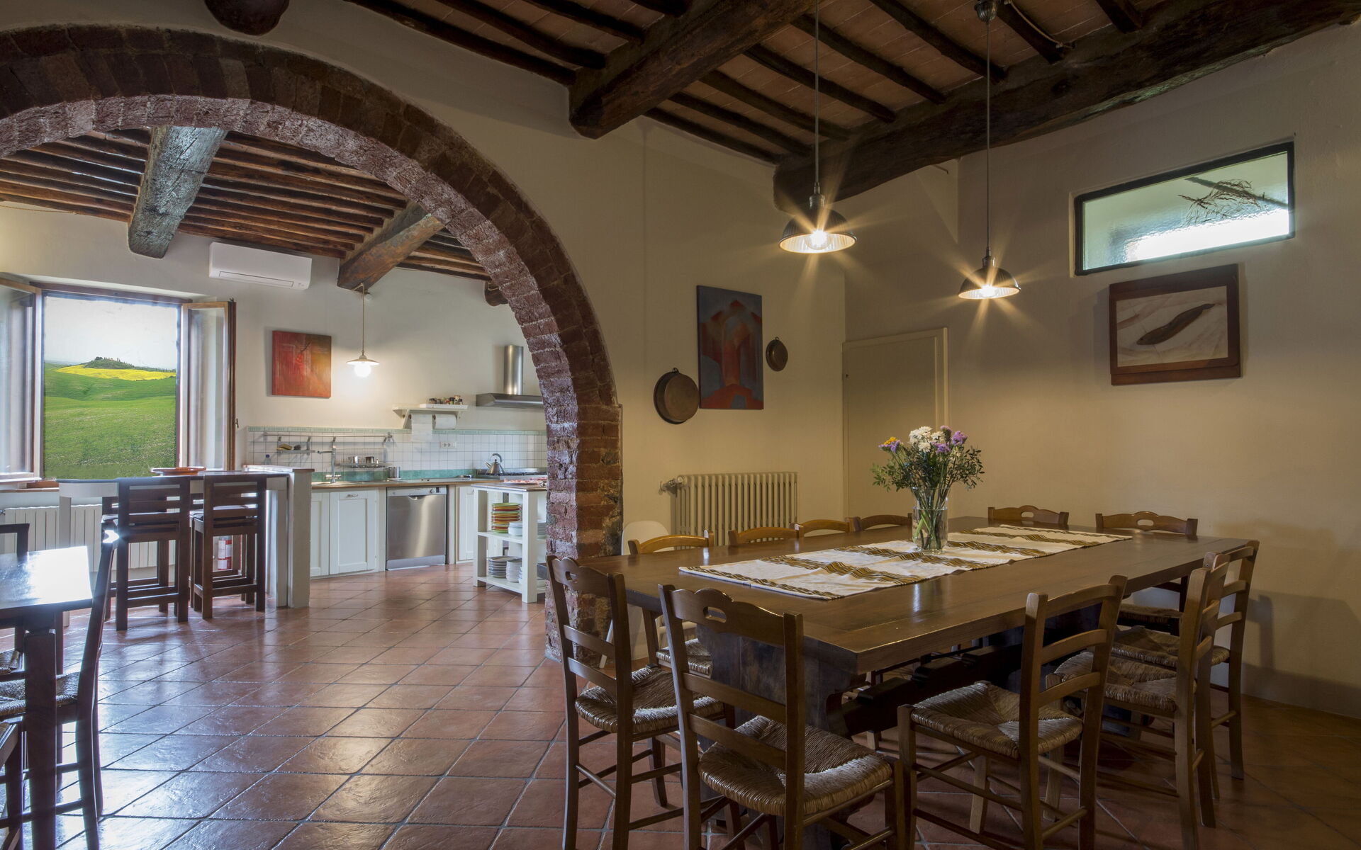 à l'arrivée à Villa Da Vinci vous trouverez une jolie propriété, propre et bien entretenue, avec vue sur les collines idéale pour des calmes vacances en Toscane. Après une mouvementée journée de visites de musées, passez du temps avec la famille et les amis en bord de piscine en dégustant un verre de vin, un moyen idéal pour vous détendre à la fin de la journée. Aussi disponibles en plein air sont une terrasse, bain à remous, un barbecue et terrain de jeu. Manger avec les amis et la famille est une grande partie de la culture toscane. Profitez de la cuisine pour préparer les repas avec des produits locaux pendant vos vacances. La cuisine comprend machine à café, four micro-onde, grille-pain, cuisinière et réfrigérateur, ainsi que, abondance de vaisselle et couverts pour un maximum de 16 personnes. Dînez «al fresco» comme un vrai toscan, la véranda complètement équipée est le cadre parfait pour apprécier la cuisine, s'amuser en famille, et profiter du jolie beau temps toscan.