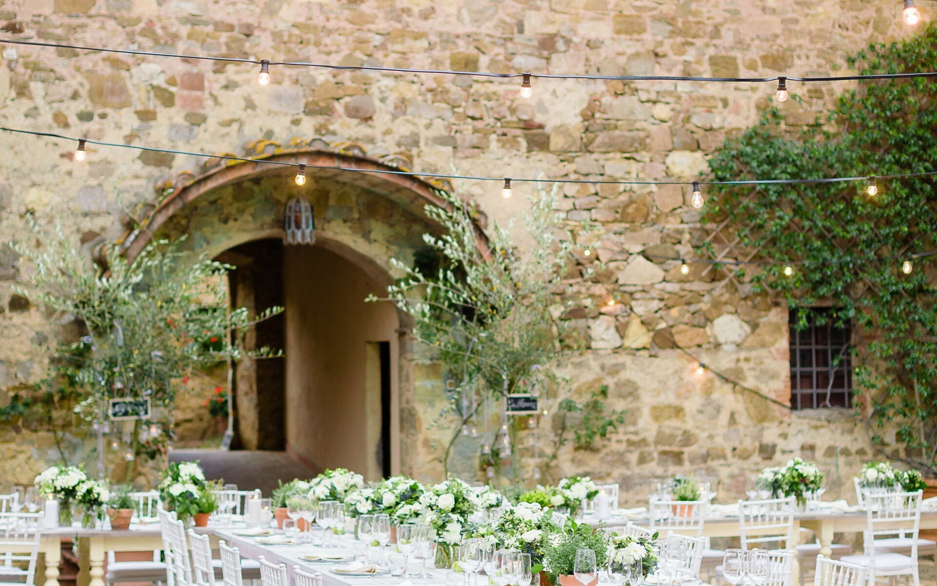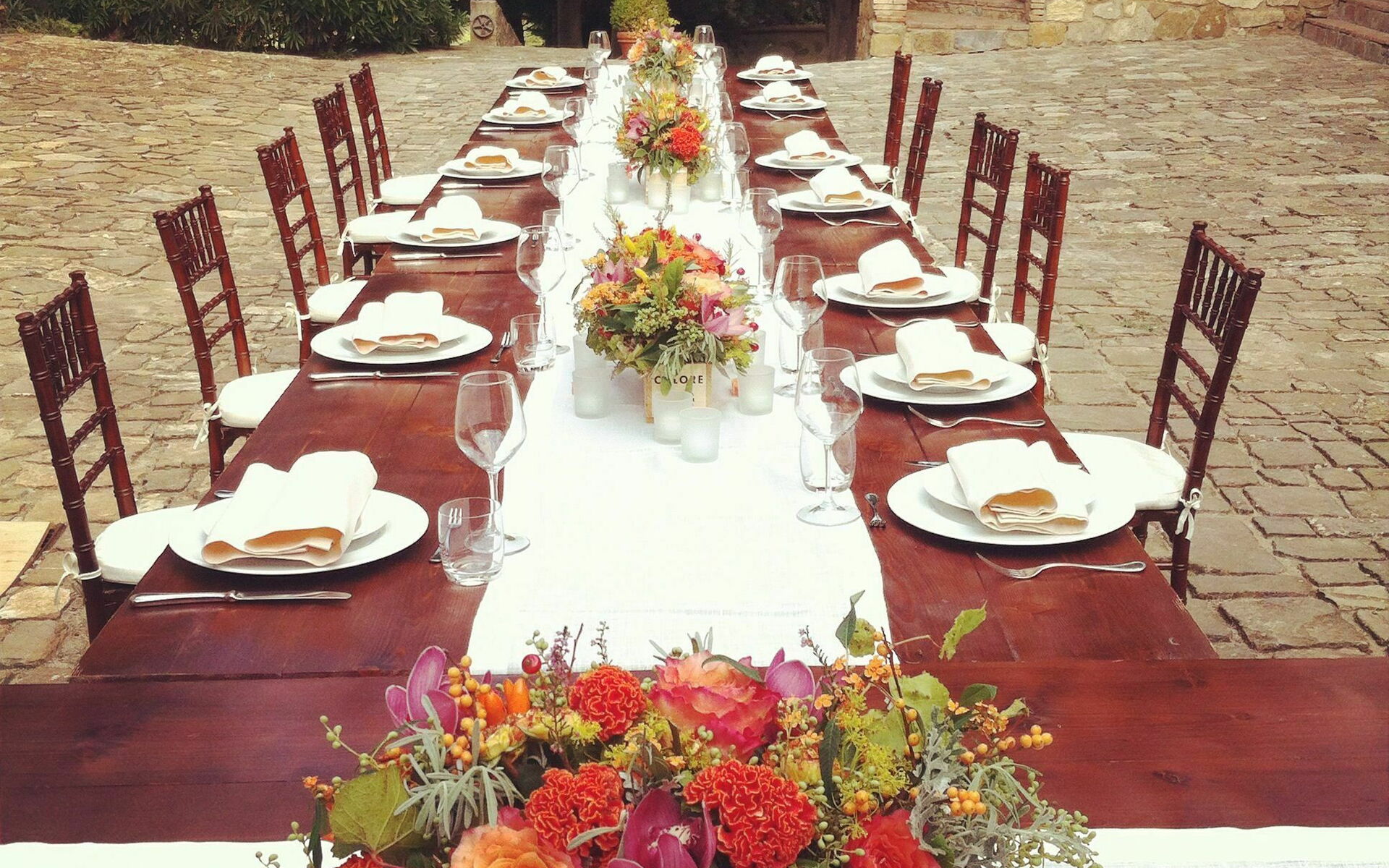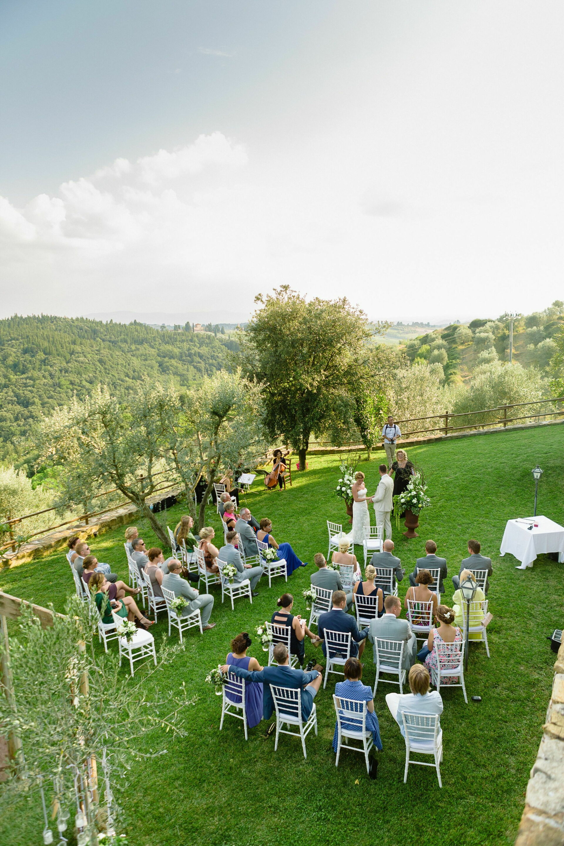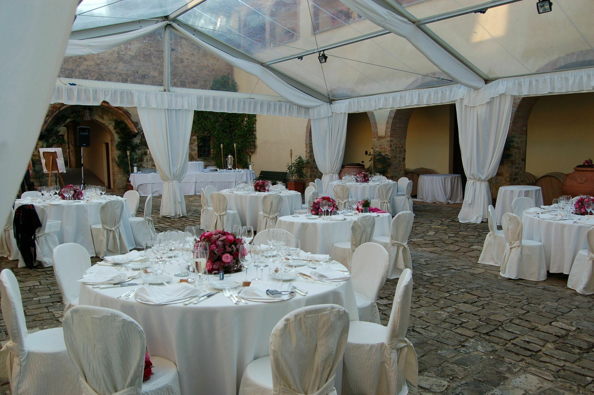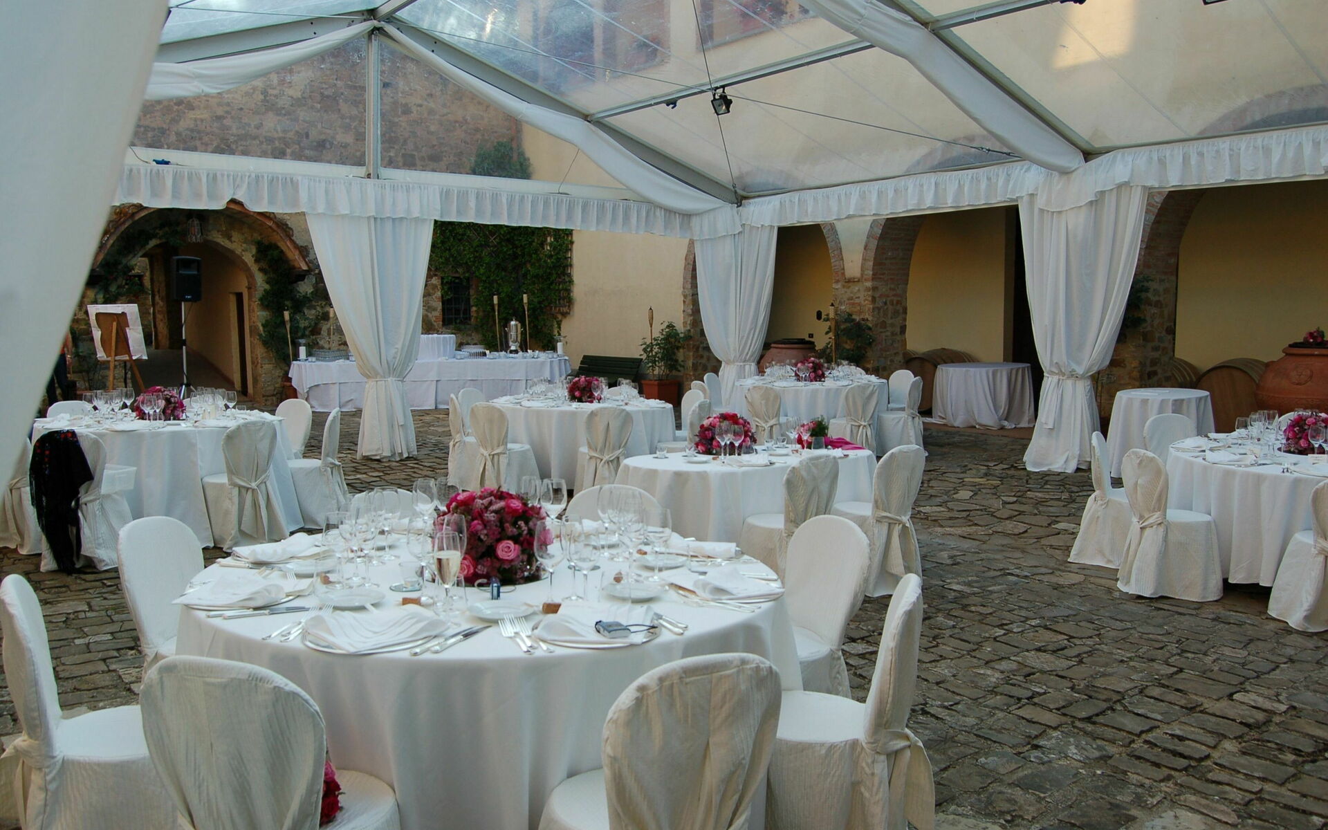 It is mandatory the use of the wines of Quercia al Poggio of your choice, between Rosso di Toscana IGT Ciliegiolo, Chianti Classico Docg, Chianti Classico Riserva Docg, Chianti Classico Gran Selezione Docg, Rosé Wine, White Wine and Classic Method Sparkling wine throughout the dinners of all the events during the stay. For the wedding dinner the staff will count the bottles chosen by the couple which will be actually used. For all the other events (pizza party, bbq ecc.), provided by an external supplier which is not the one the venue usually works with, the staff requires that the cost of their wines is included in the catering final quotation. These conditions are mandatory for the confirmation of the booking.
