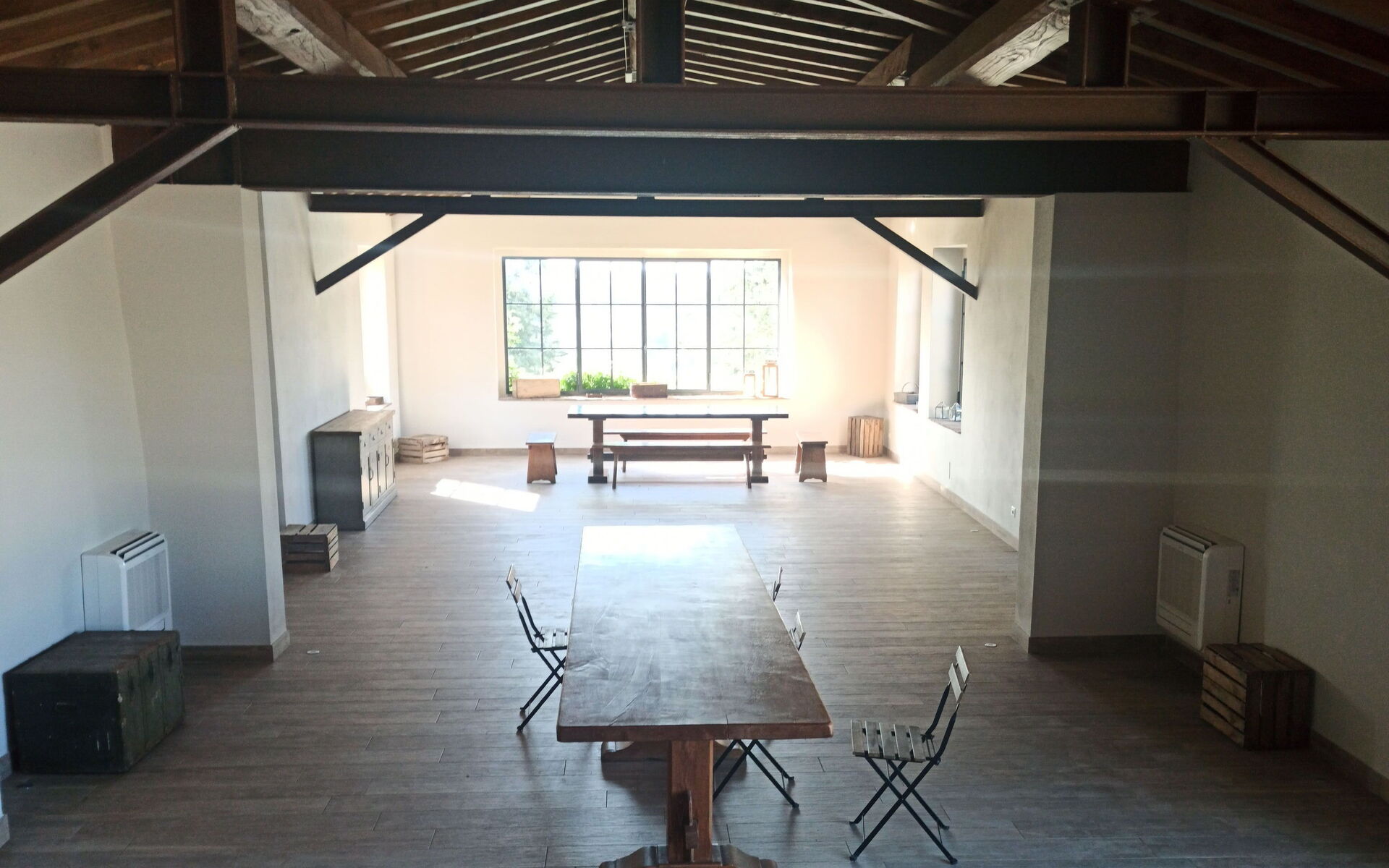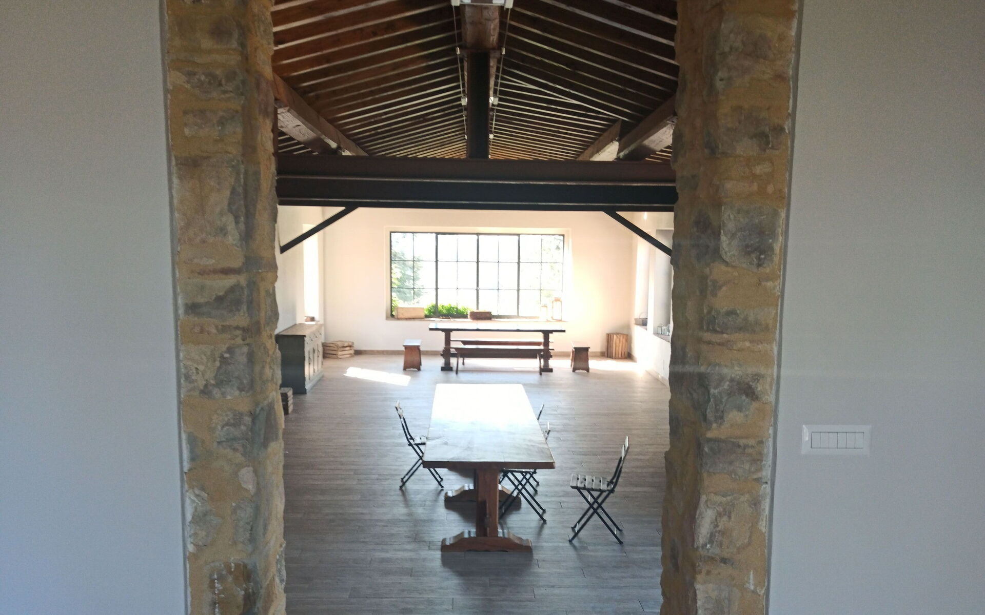the rent of the common areas where the wedding will take place, use of a non industrial kitchen for the catering, extra use of electricity and water, final cleanings, the owners presence for the day of the ceremony and an indoor space in case of bad weather for a maximum of 70 people.