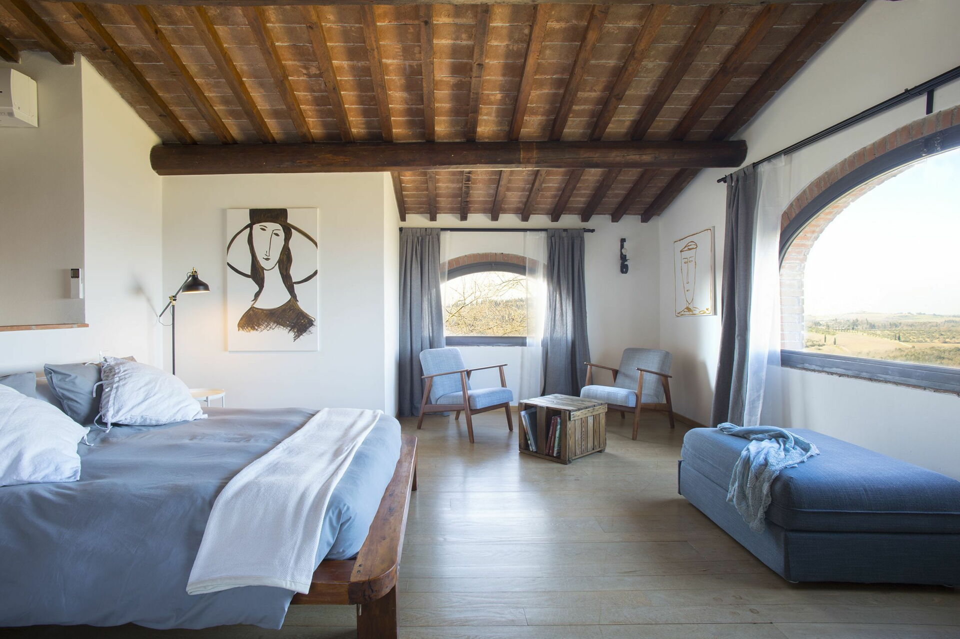 En plus d'être un lieu de choix pour un mariage en intérieur ou extérieur en Toscane, Fattoria di Quercia di Poggio offre également un bel espace d'hébergement pour vos invités, amis et familles avec des intérieurs lumineux, spacieux, aérés et élégants. Comme indiqué, la propriété est composée de dix appartements différents dont: