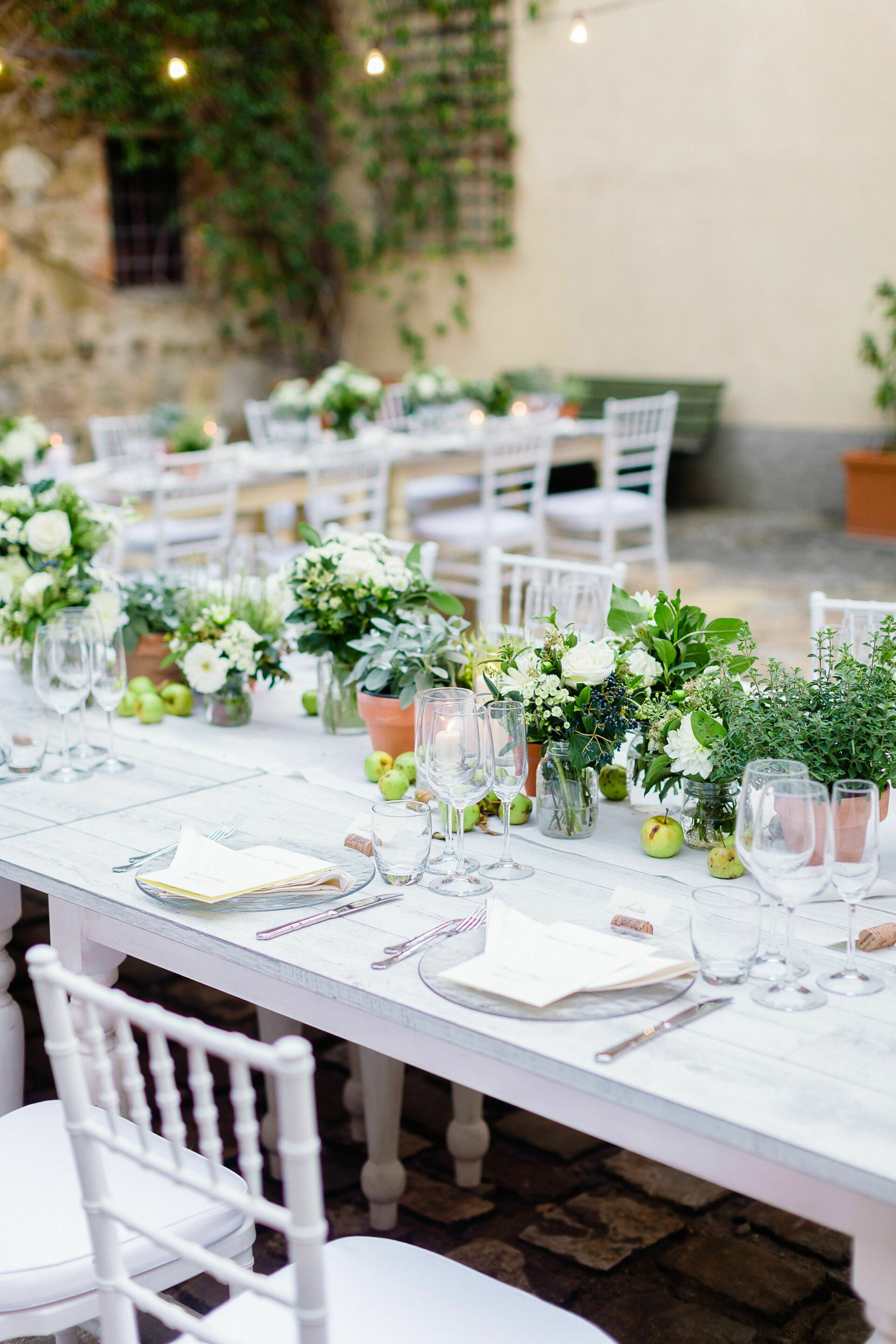 Si vous envisagez de vous évader et rêvez d'un mariage parfaitement paisible dans le magnifique paysage toscan et parmi les collines, alors c'est la villa de mariage de luxe dans laquelle il faut le faire! Un lieu de mariage exceptionnellement romantique, il y a toutes sortes de jolis endroits à la fois sur la propriété et dans les environs immédiats qui fourniraient des toiles de fond magnifiques pour votre photographie de mariage; afin de commémorer un mariage inoubliable en Toscane. Le lieu peut accueillir confortablement jusqu'à 70 personnes à l'intérieur (en cas de mauvais temps) et jusqu'à 80 personnes à l'extérieur pour un mariage merveilleusement intime sur le terrain et dans le jardin à l'italienne, avec une vue magnifique sur la campagne toscane environnante. Il y a suffisamment d'espace pour aménager un espace pour la cérémonie de mariage ainsi que des tables pour le repas, une piste de danse, un DJ ou un groupe et plus encore pour les réceptions de mariage.