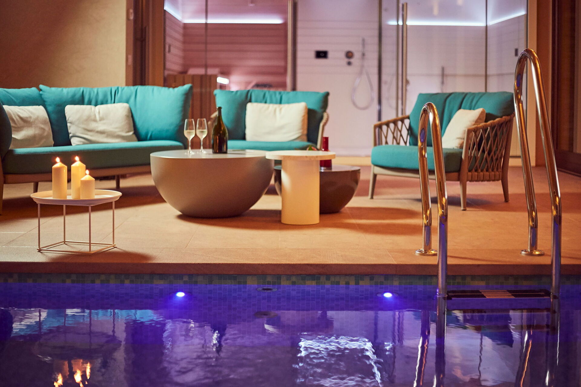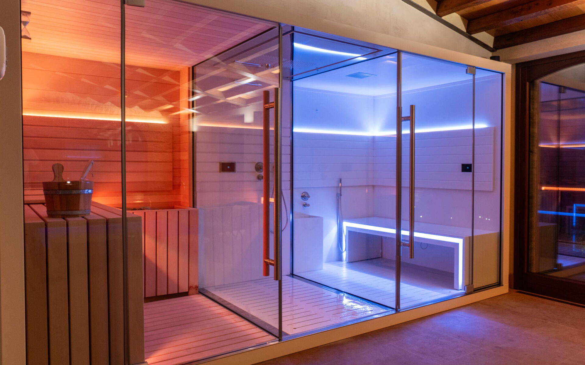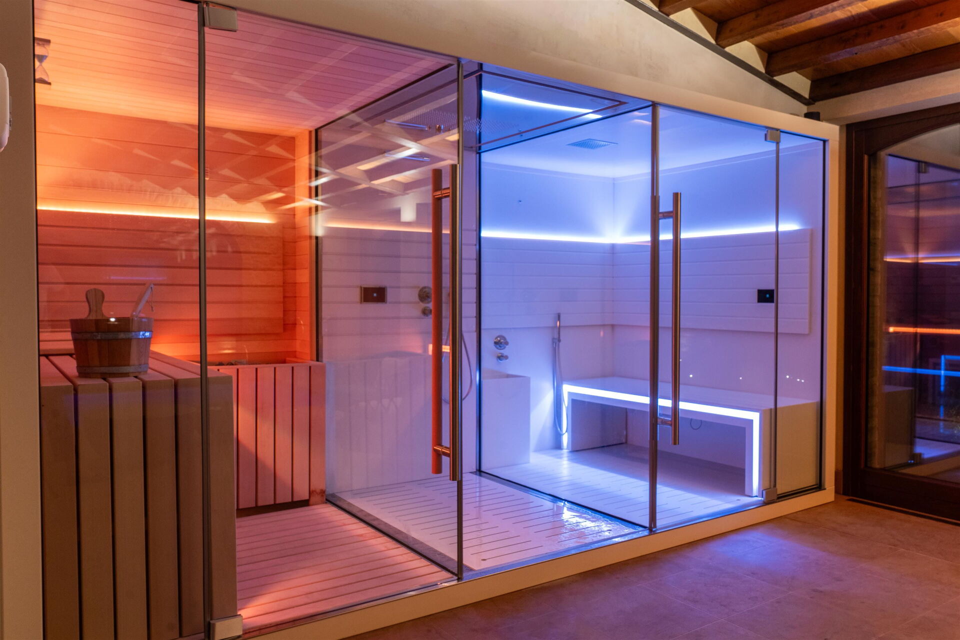 espace bien-être: bain à remous couvert, sauna, chaise longue, internet WIFI, hammam.