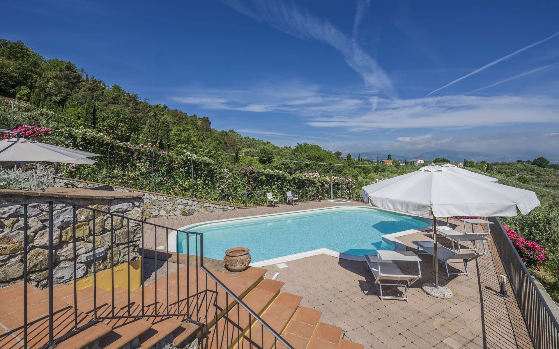 La plupart des gens aiment visiter les villes et les villages à proximité pendant les vacances, donc pour votre référence vous trouvez ici est une liste des lieux populaires avec les distances (à vol d’oiseau) en voiture depuis la propriété:Florence 43 km, Lucques 53 km, Greve In Chianti 70 km, Viareggio 74 km et Pise 75 km.