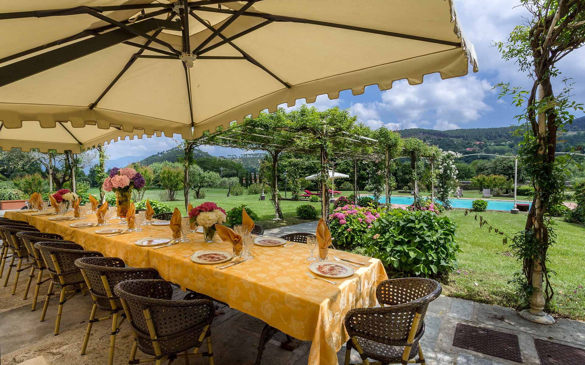 La maison de vacances Villa Lucci est une jolie propriété (800 mètres carrés) qui offre air conditionné, internet wi-fi et piscine privée. La propriété peut accueillir comfortablement jusqu'à 16 personnes dans huit chambres à coucher avec huit salles de bain. La maison de vacances Villa Lucci est située 12 km de Capannori, Italie, et à seulement 9 km de Lucques. Si vous aimez jouer au golf pendant vos vacances, alors vous serez heureux de savoir qu'il y a un terrain de golf à proximité.