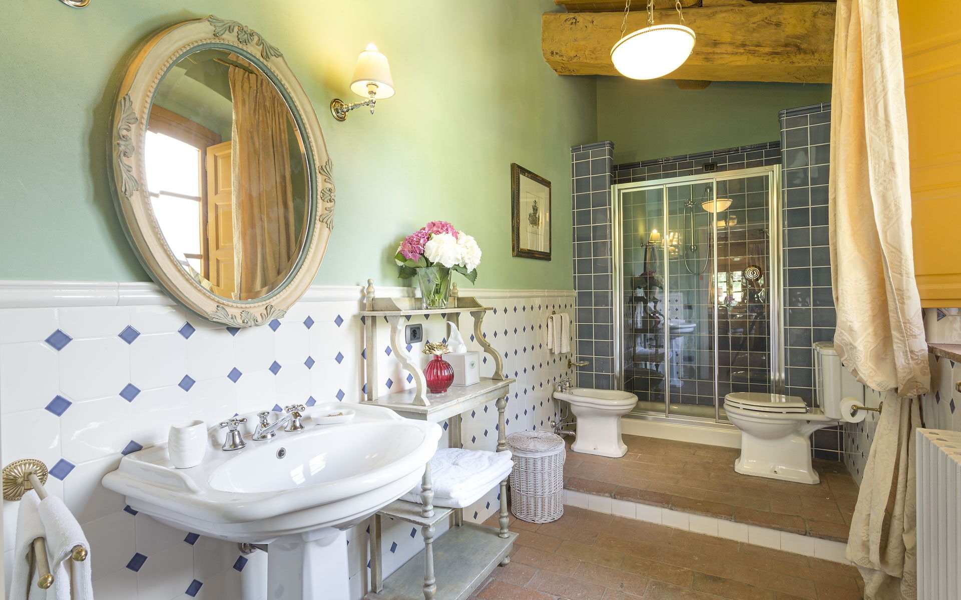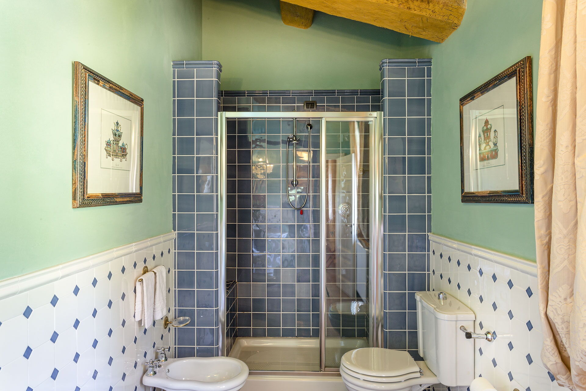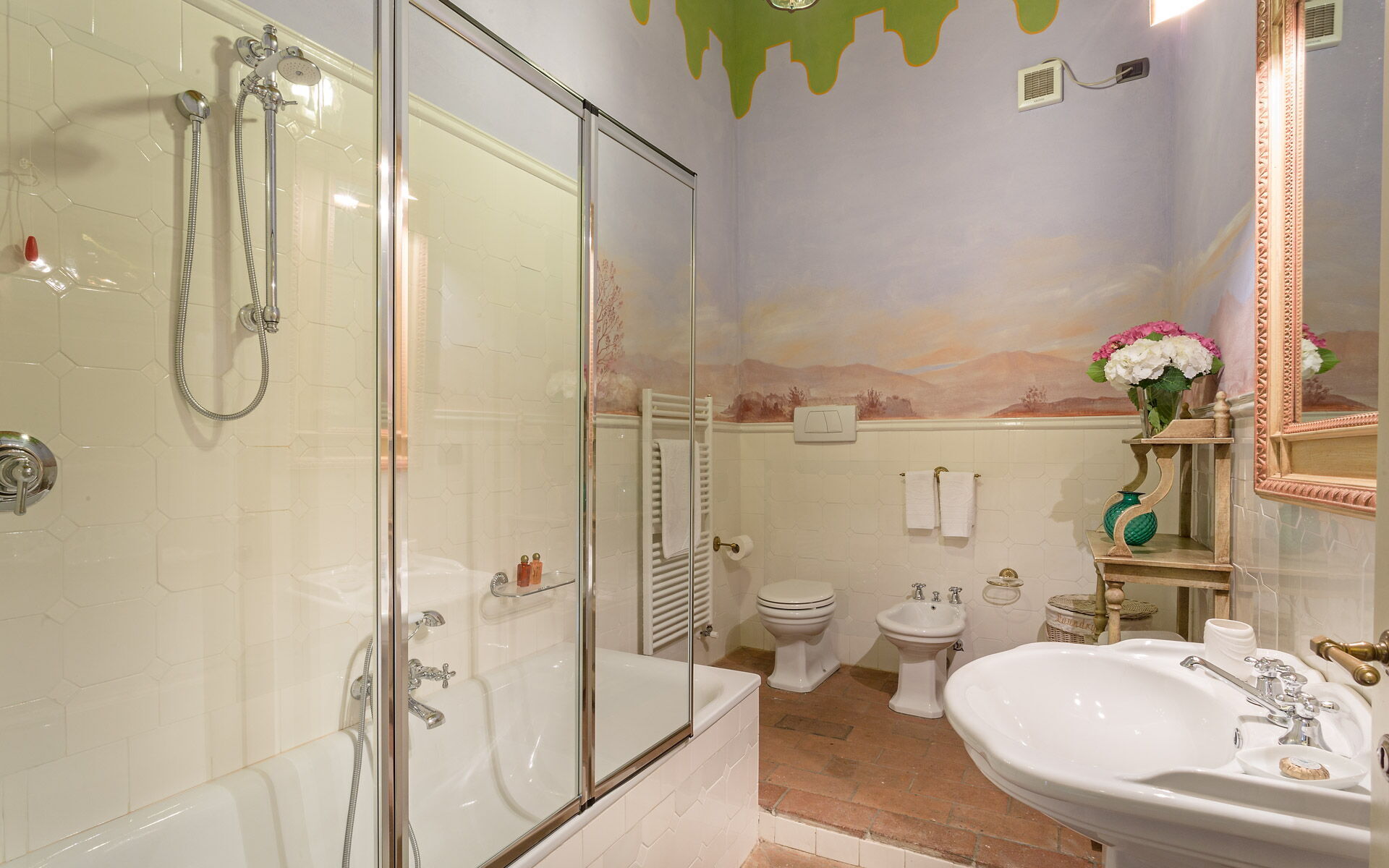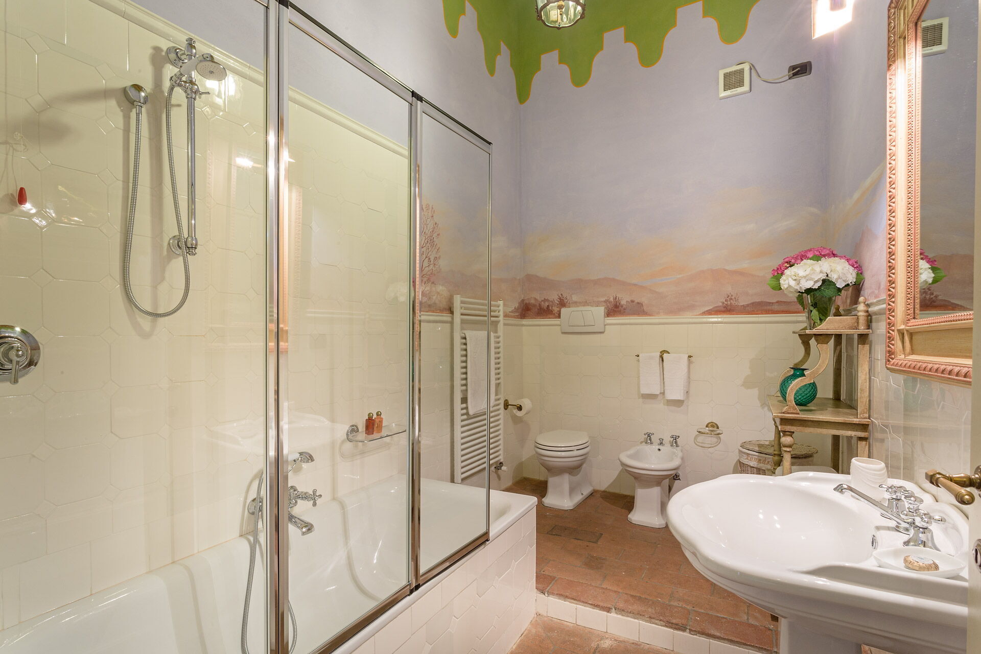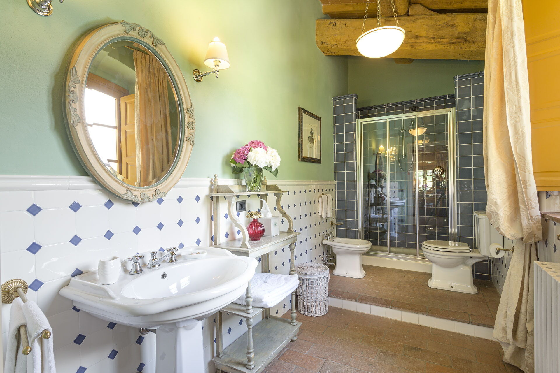salle de bain 2: bassin, wc, bidet, douche.