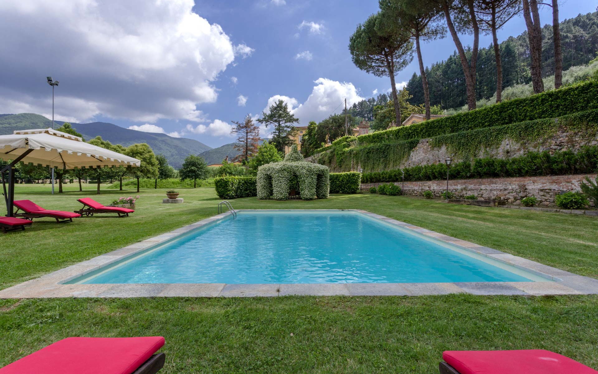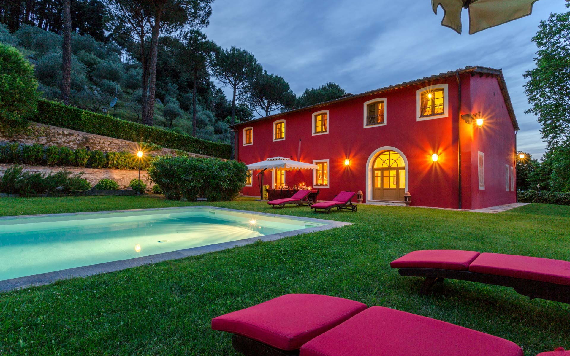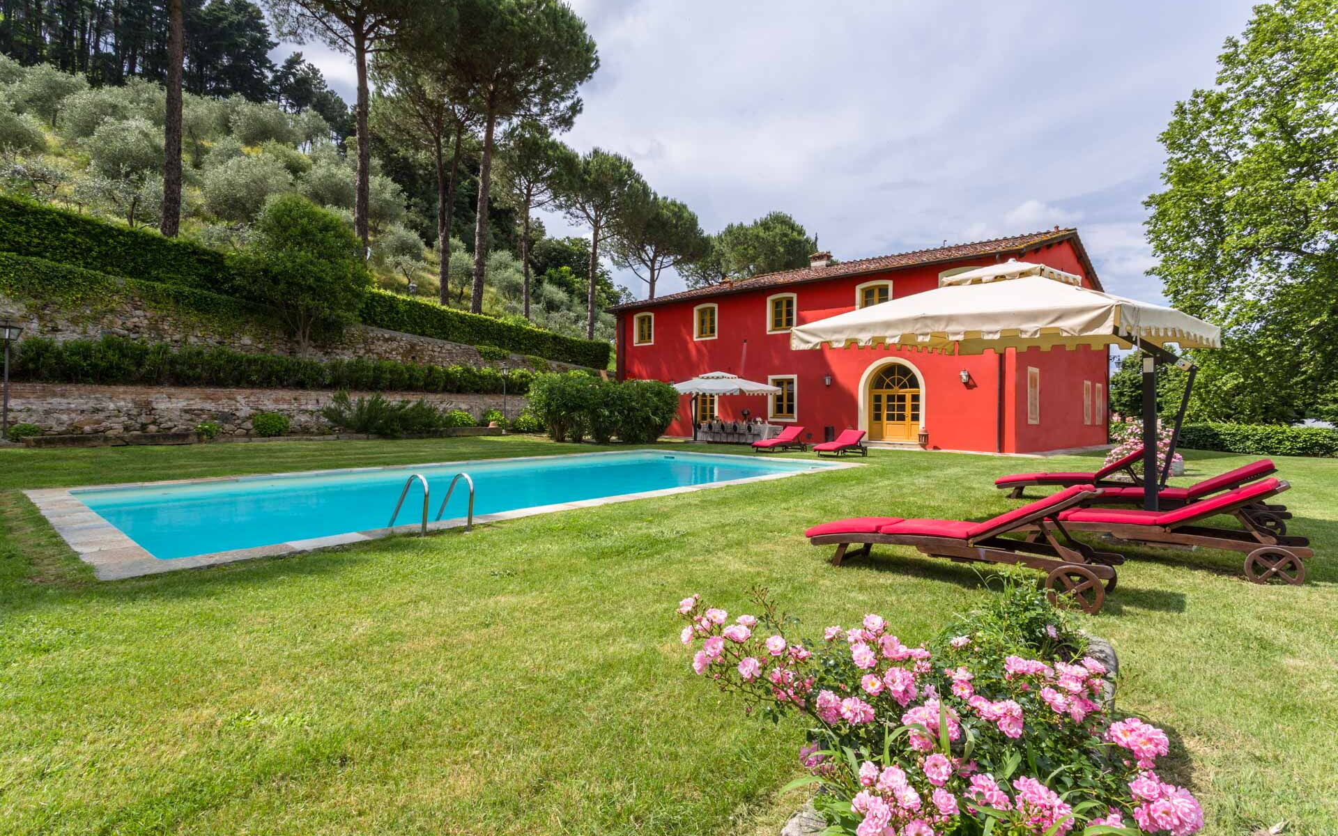 Villa Rubrum est une jolie résidence avec climatisation, piscine privée et internet wi-fi. La propriété peut loger comfortablement jusqu'à 12 personnes dans six chambres à coucher avec huit salles de bain. La maison de vacances Villa Rubrum est située 12 km de Capannori, Italie, et à seulement 9 km de Lucques. Si vous aimez jouer au golf pendant vos vacances, alors vous serez heureux de savoir qu'il y a un terrain de golf à proximité.