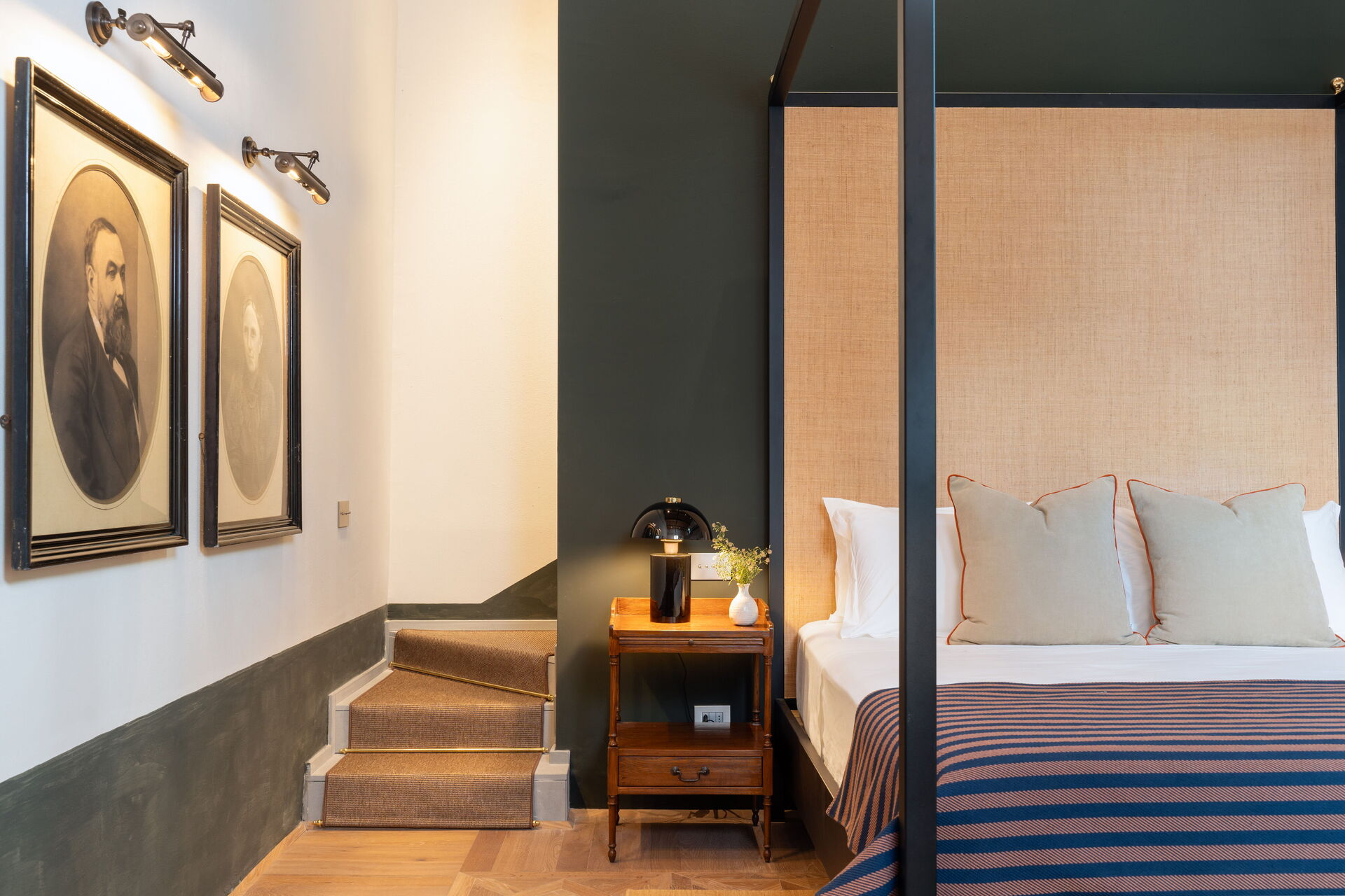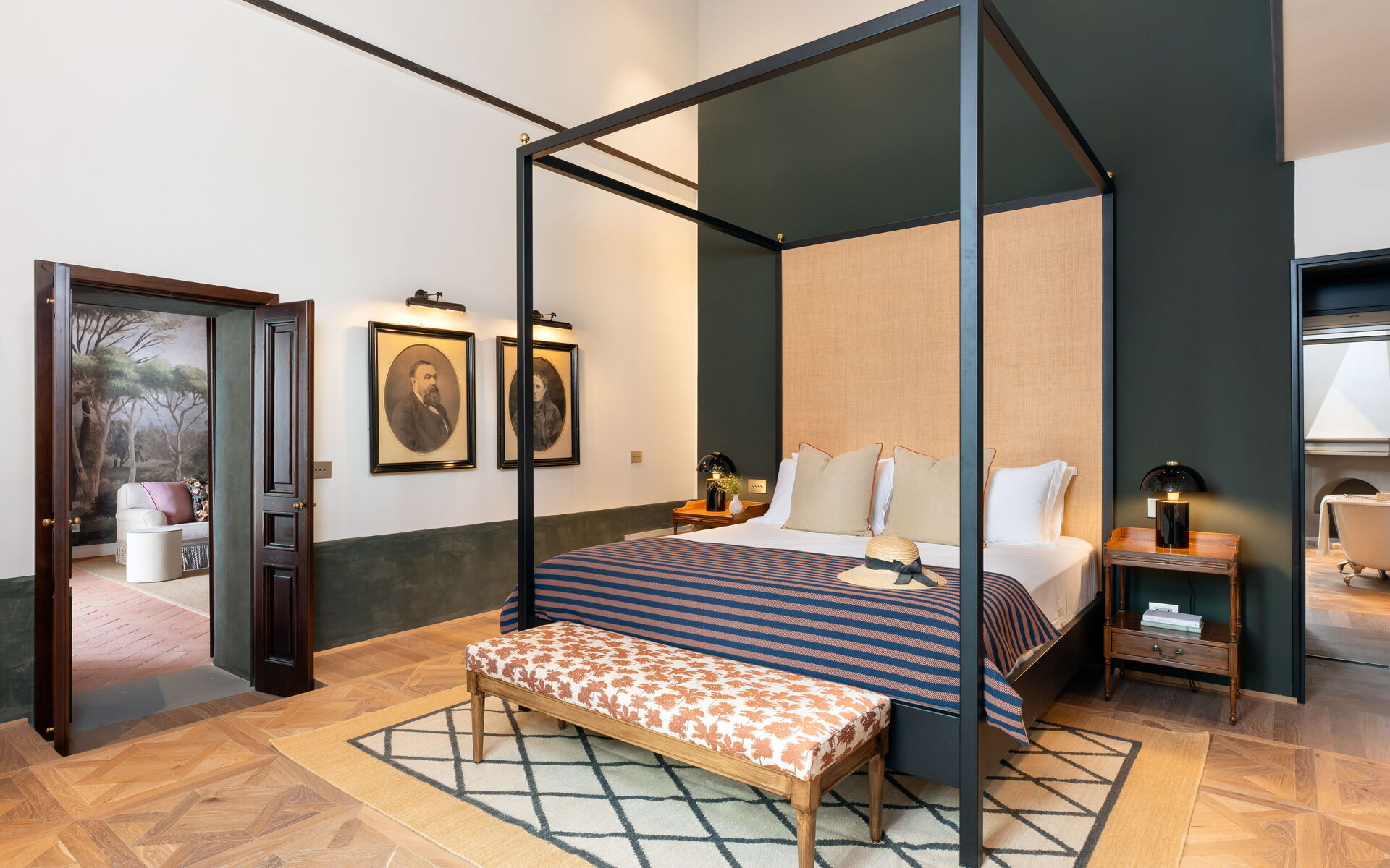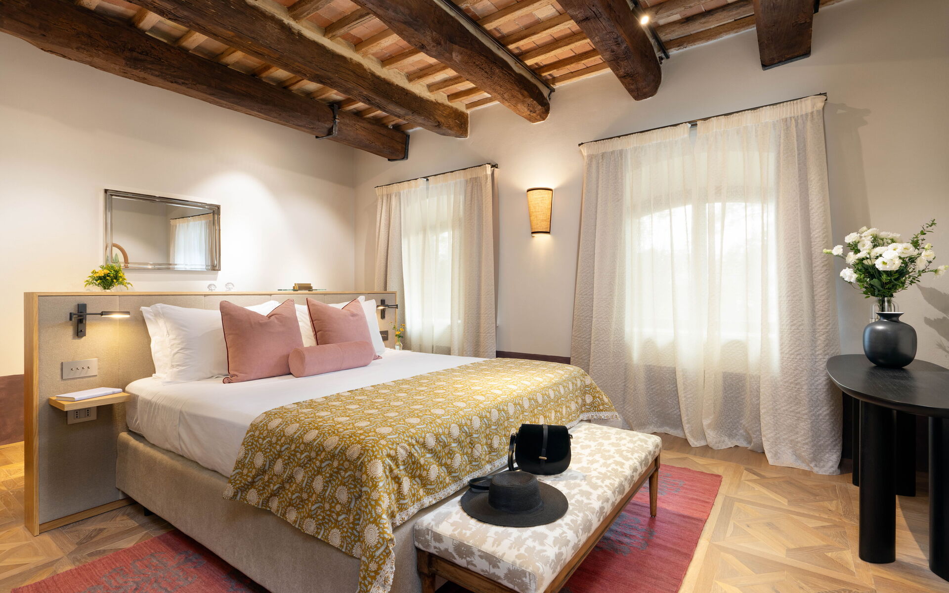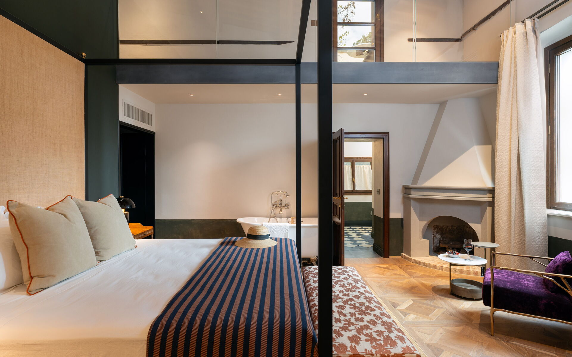 chambre avec salle de bain 1: grand lit à deux places (largeur: 180m, longueur: 200m), internet WIFI, climatisation, bassin, wc, bidet, bagnoire, douche, sèche-cheveux, sortie sur la terrasse, galerie.