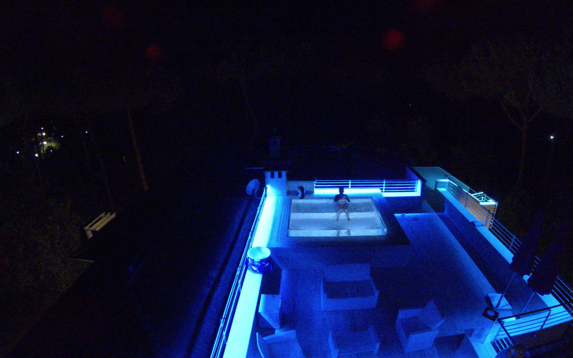 The whole pool area has a wonderful colorful LED lighting and outdoor furniture.