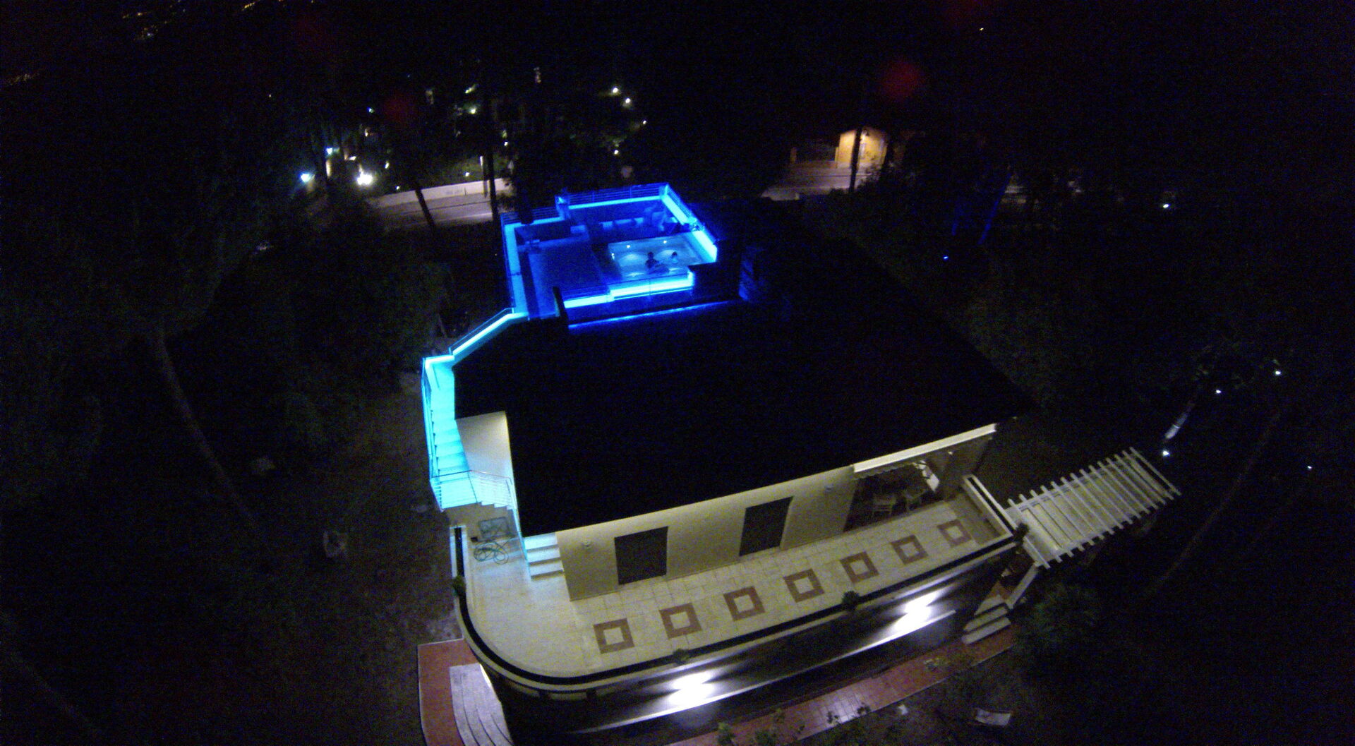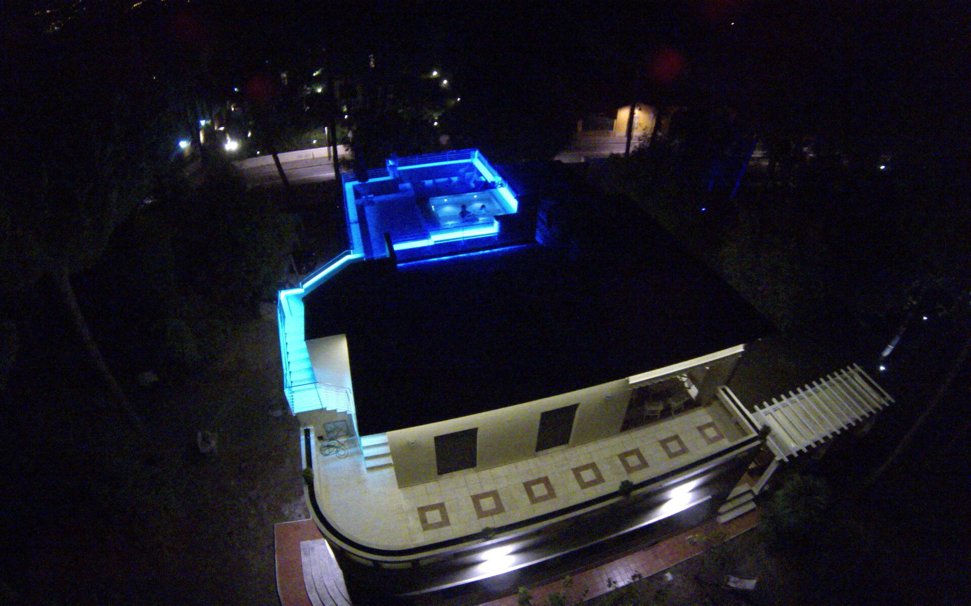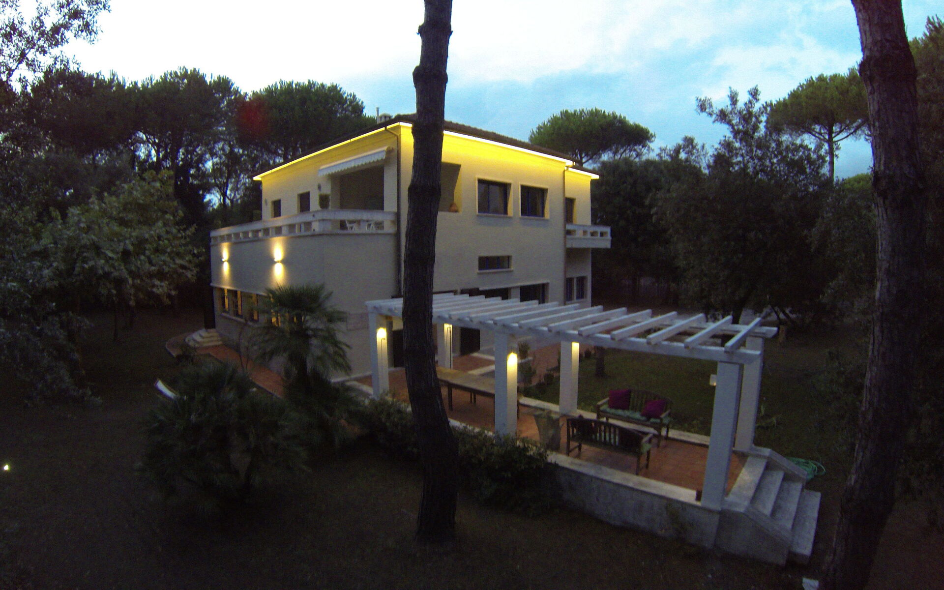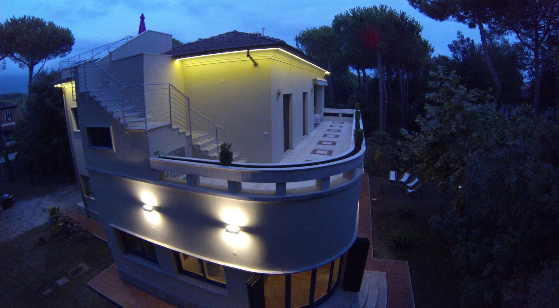 The exterior of the Villa is especially attractive during the evening because it is characterized by indirect lighting of the roof and terrace with swimming pool.