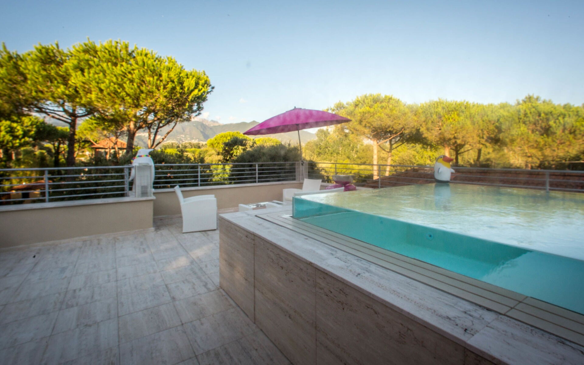 The small private pool is located on the roof of the Villa and offers a 100% privacy with mountain views.