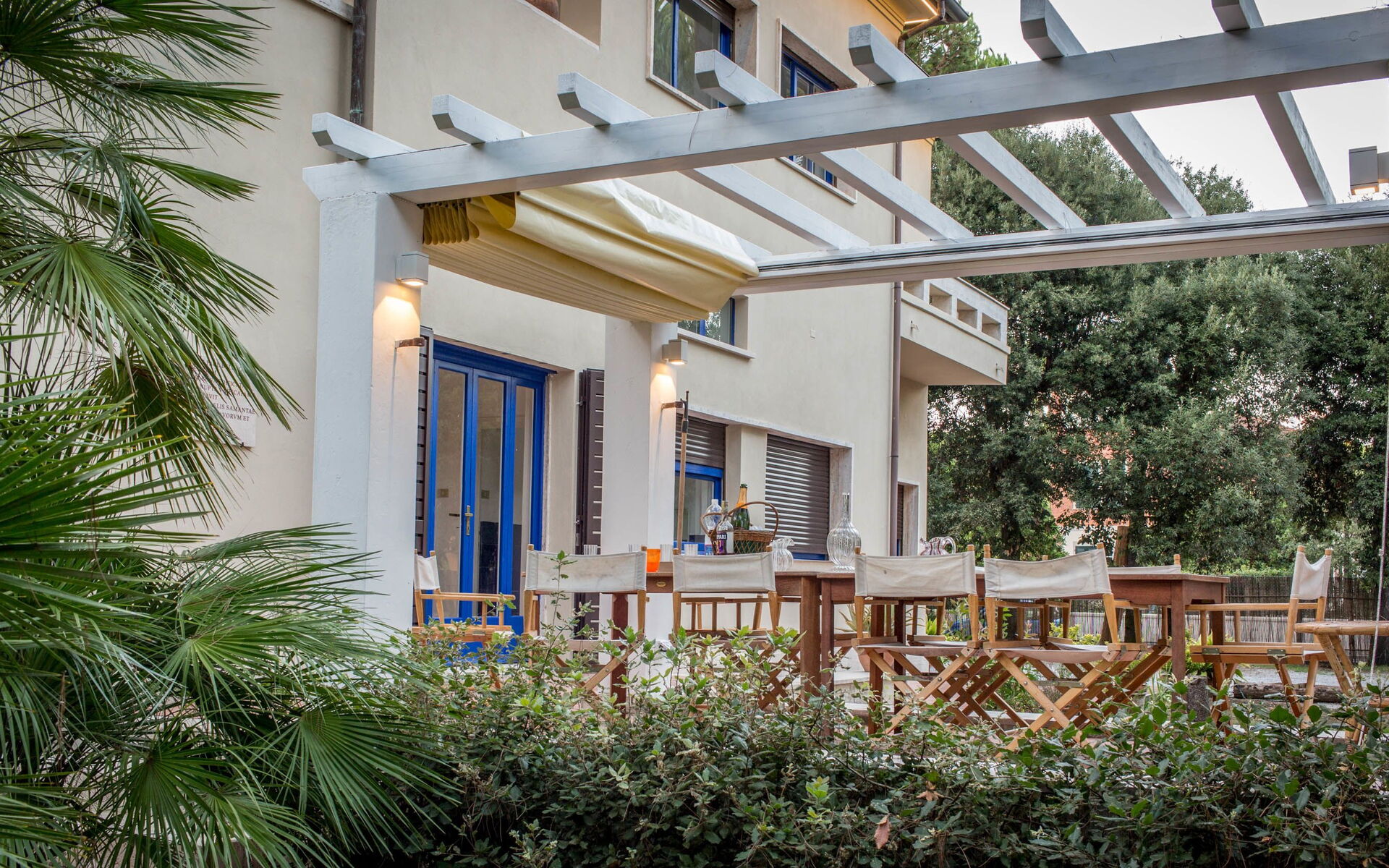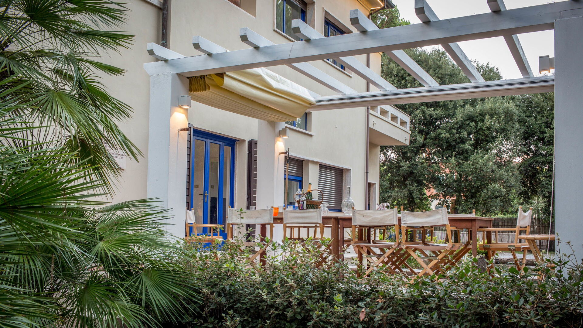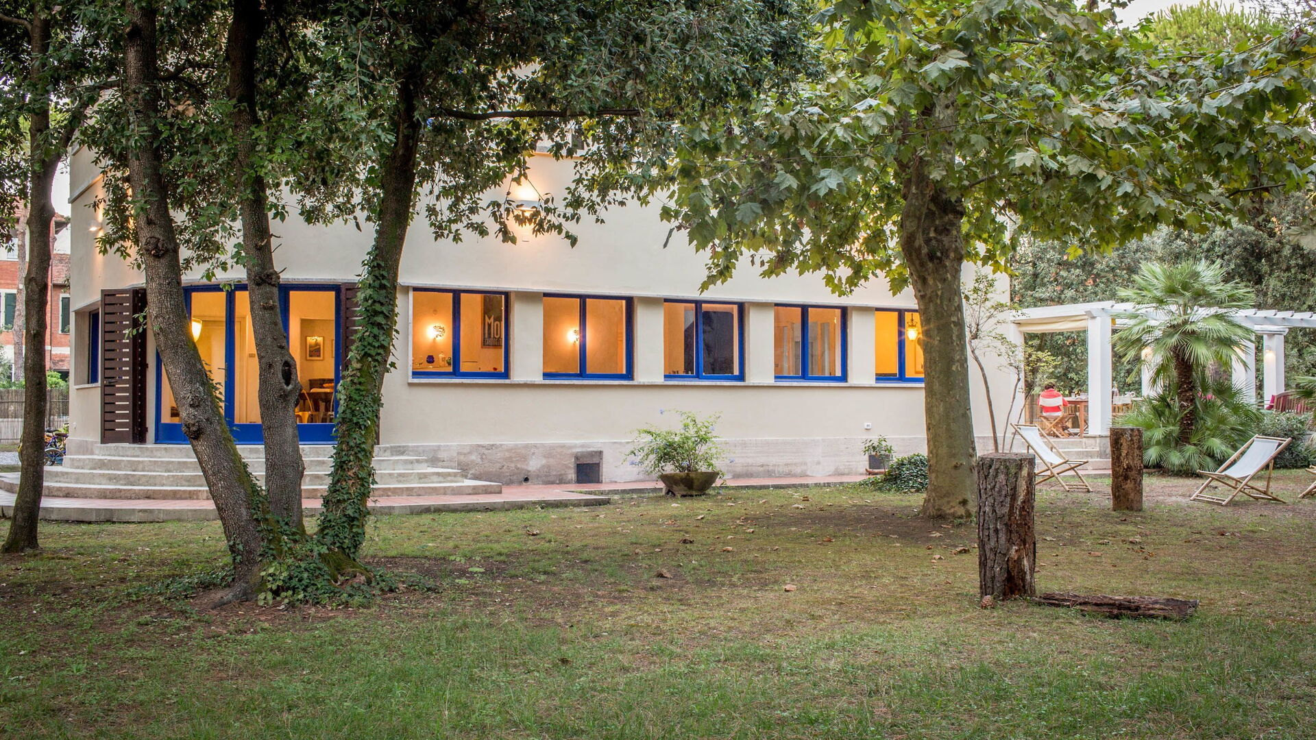 Located in the green area of Marina di Massa, Ronchi, with 8000 square meters of private garden where you will find the 4 covered parking spaces, a wonderful covered porch, complete with garden furnitureg, lights that illuminate the whole park at night, barbecue and a gate on the private walkway to the seafront (about 100 meters).