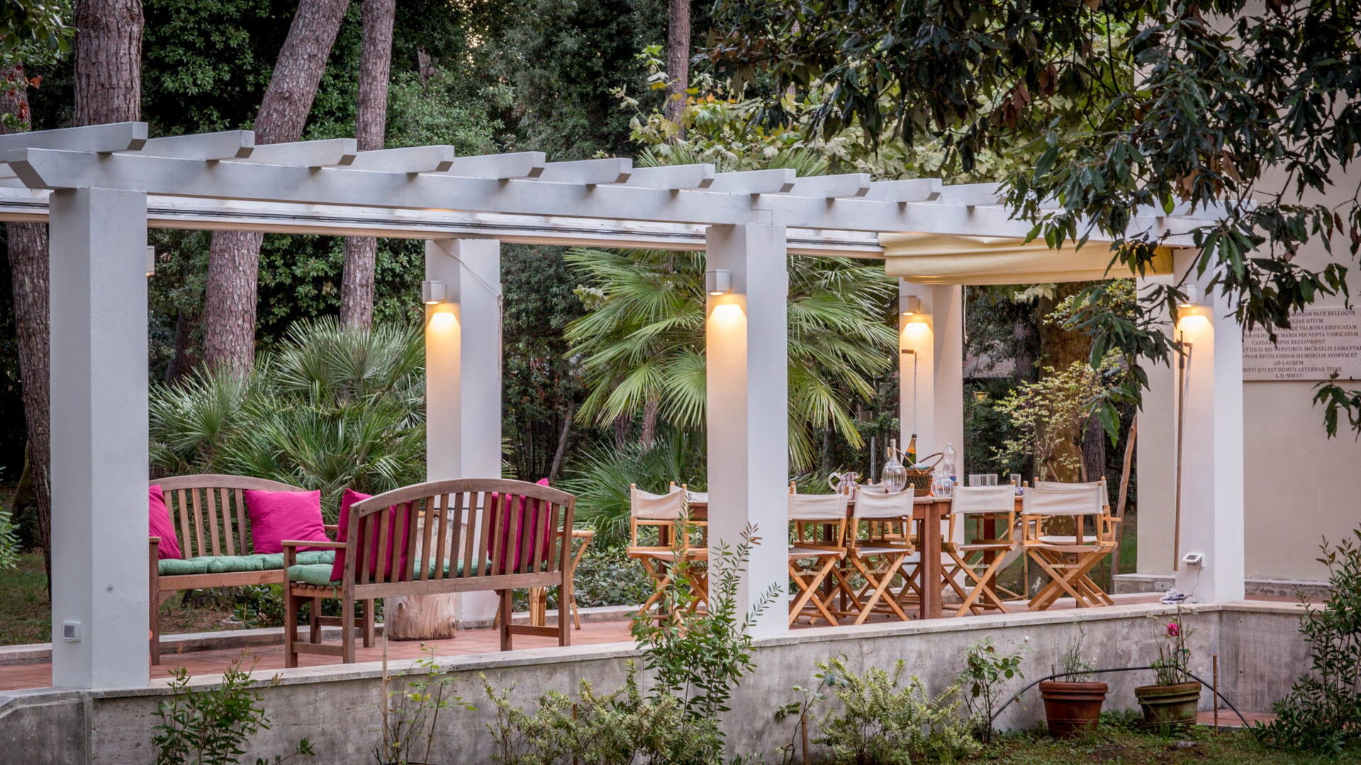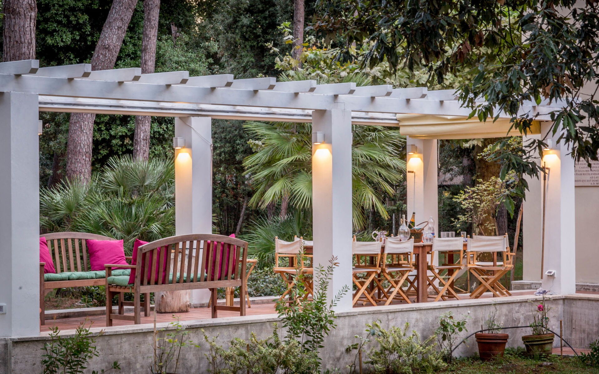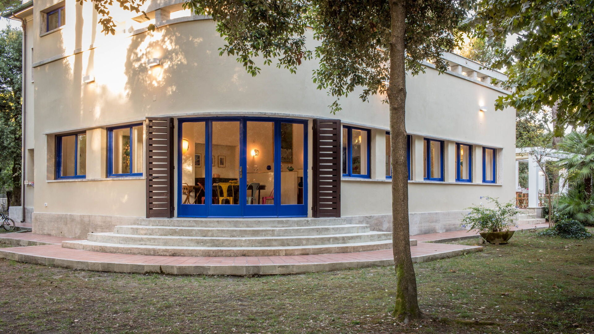 Located in the green area of Marina di Massa, Ronchi, with 8000 square meters of private garden where you will find the 4 covered parking spaces, a wonderful covered porch, complete with garden furnitureg, lights that illuminate the whole park at night, barbecue and a gate on the private walkway to the seafront (about 100 meters).