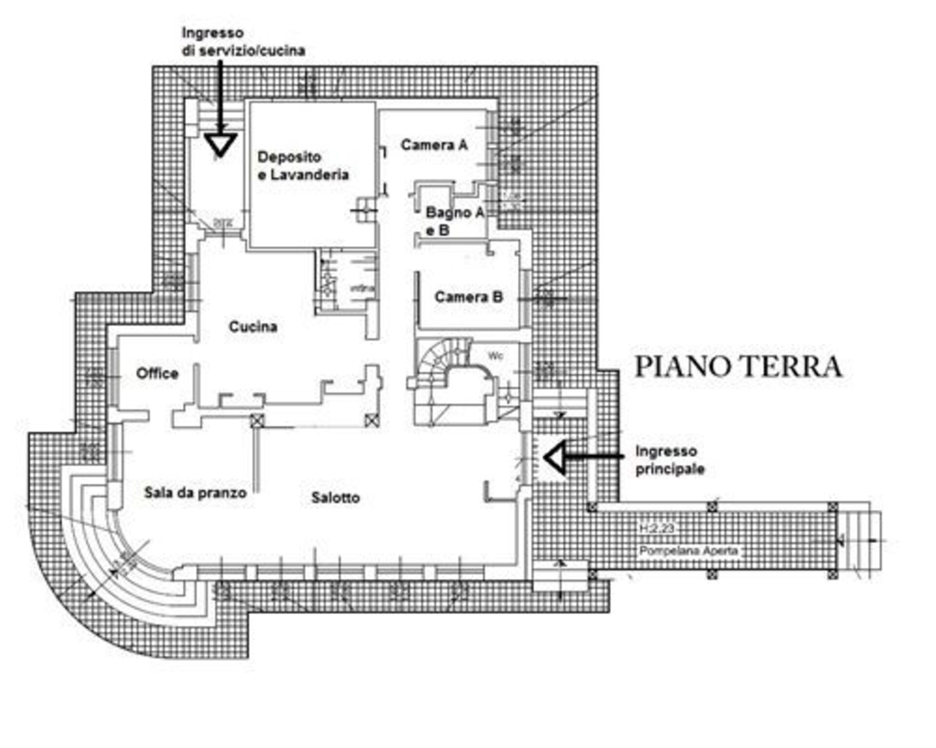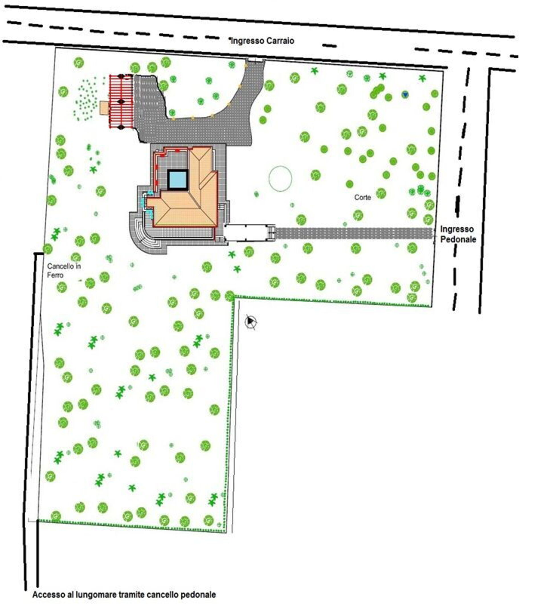 The main access to the property (electric gate) is located on the road parallel to the waterfront, the secondary instead is on a street nearer to the sea.