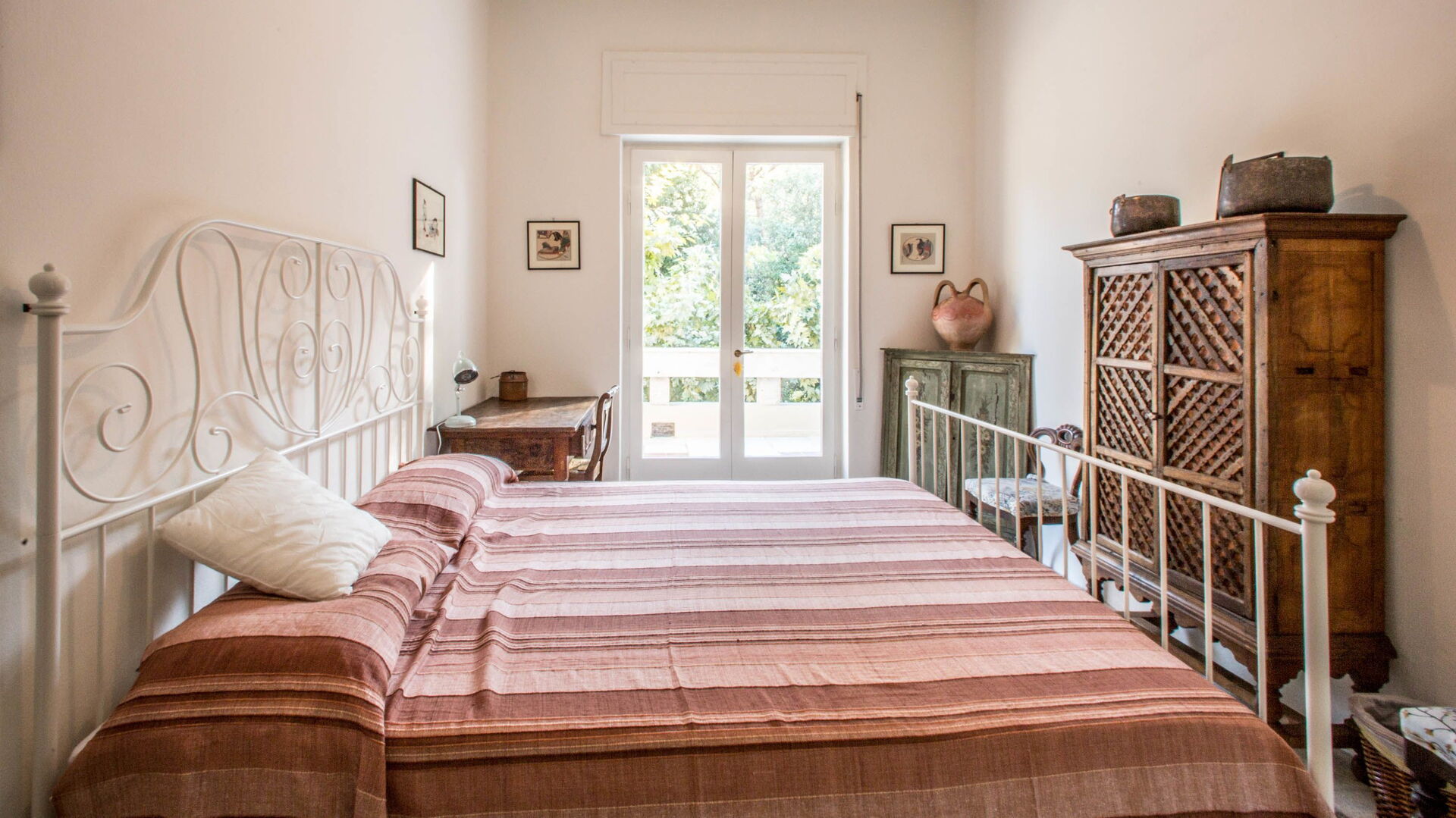 chambre avec salle de bain 2: lit double (largeur: 1.6m, longueur: 1.9m), bassin, wc, bidet, douche.