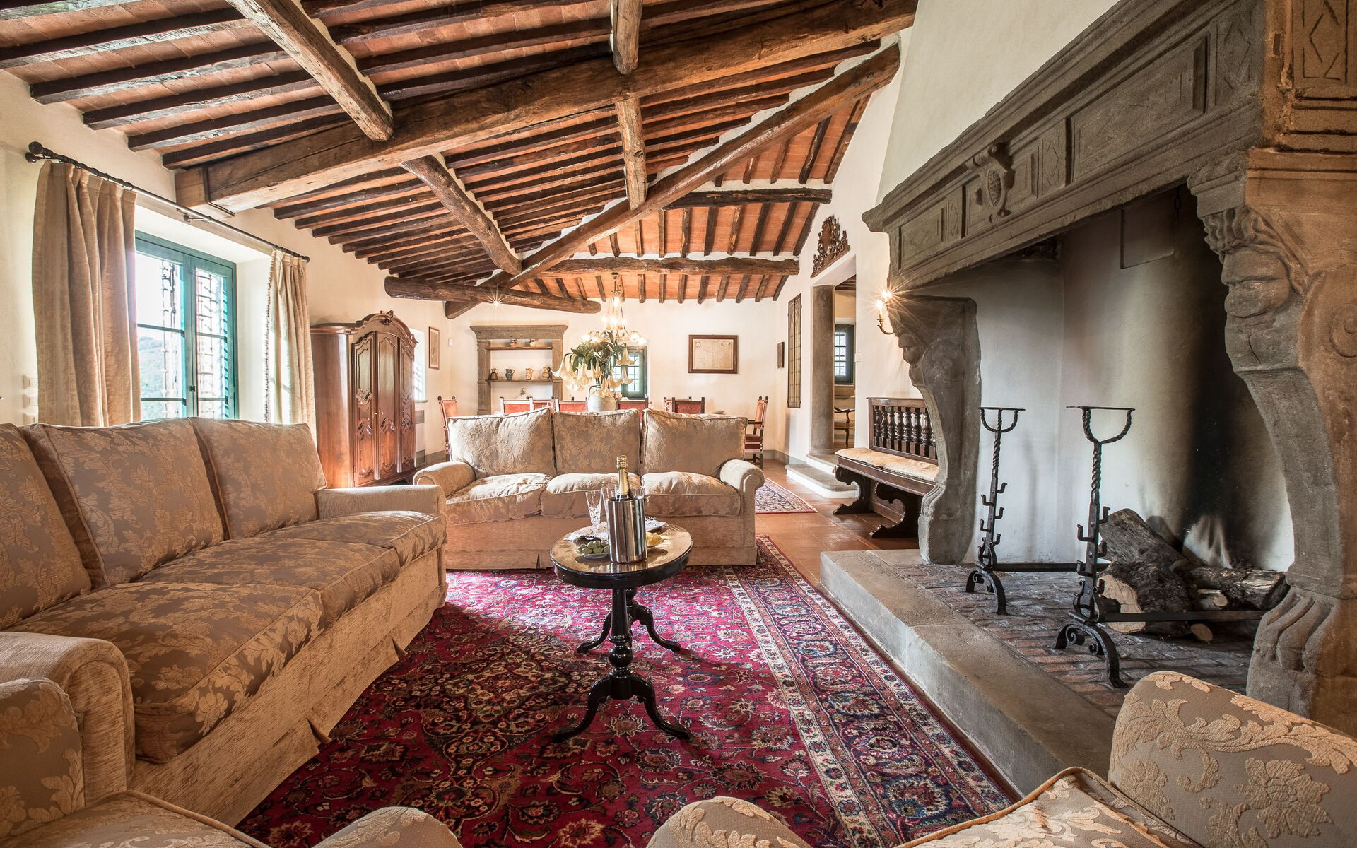 Salon 1 (80 m2): cheminée, table à manger (personnes: 10), internet WIFI, climatisation, tv satellitaire, vidéo / dvd, sortie sur le jardin.
