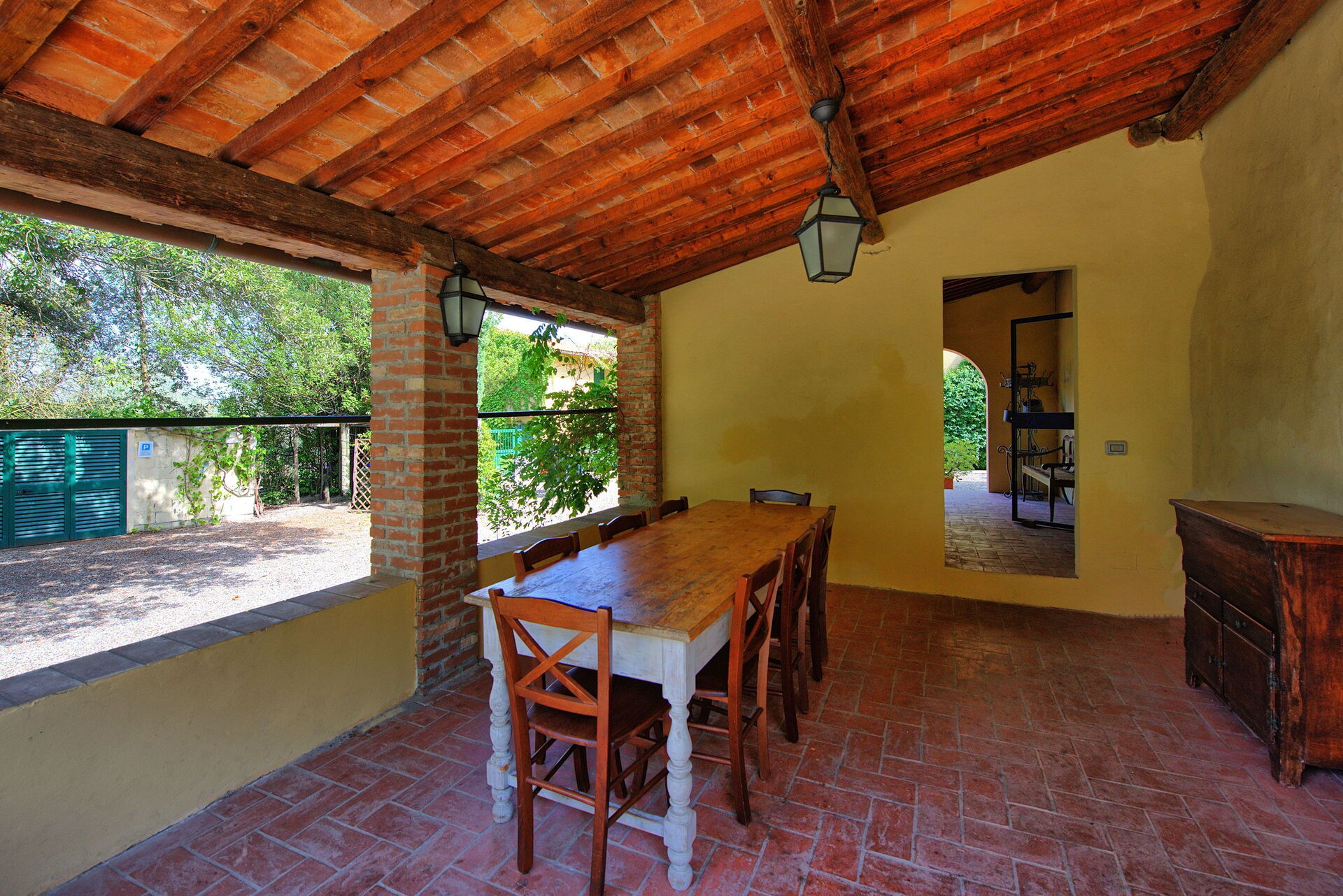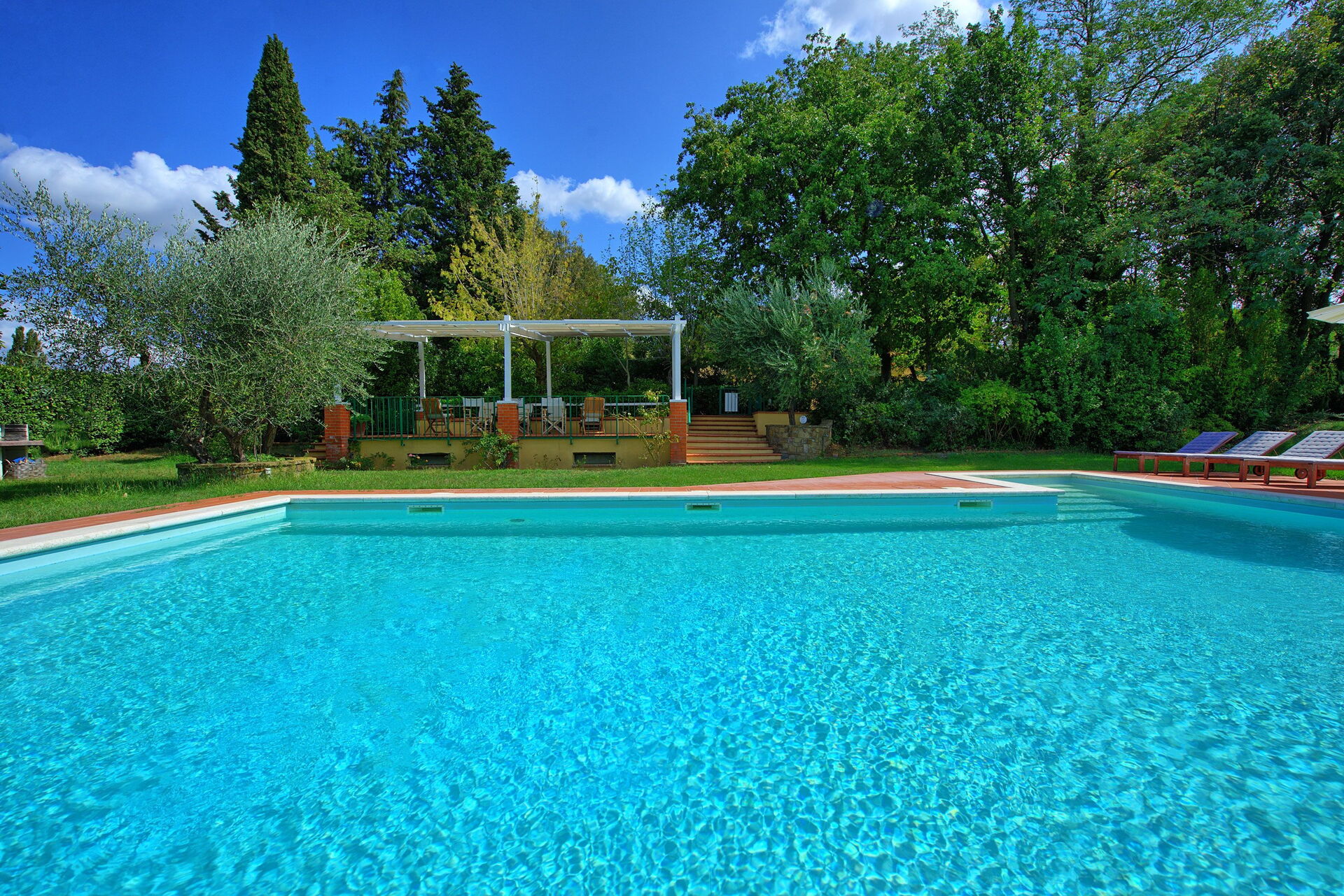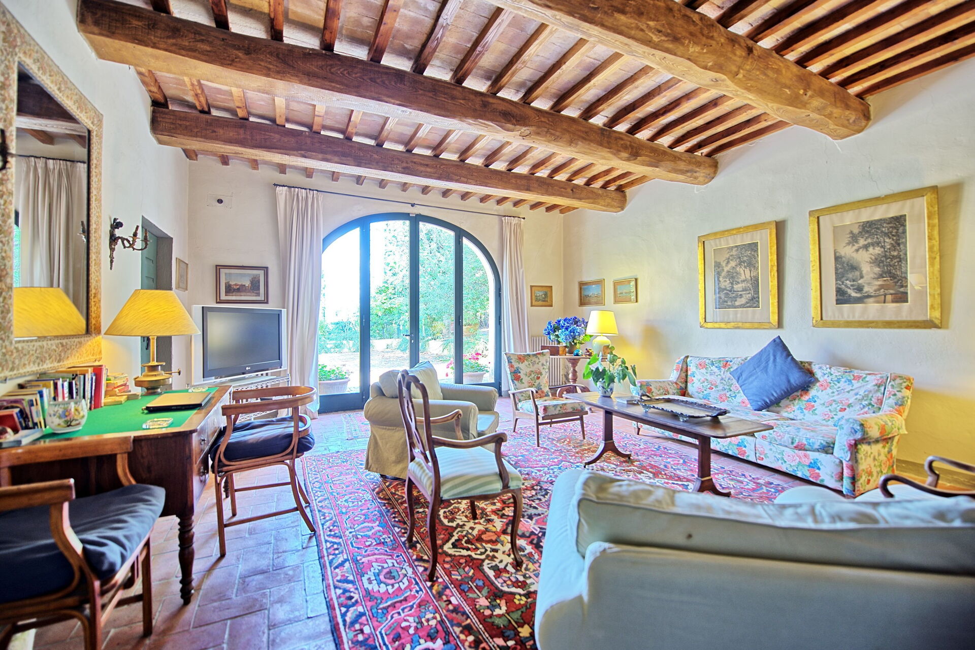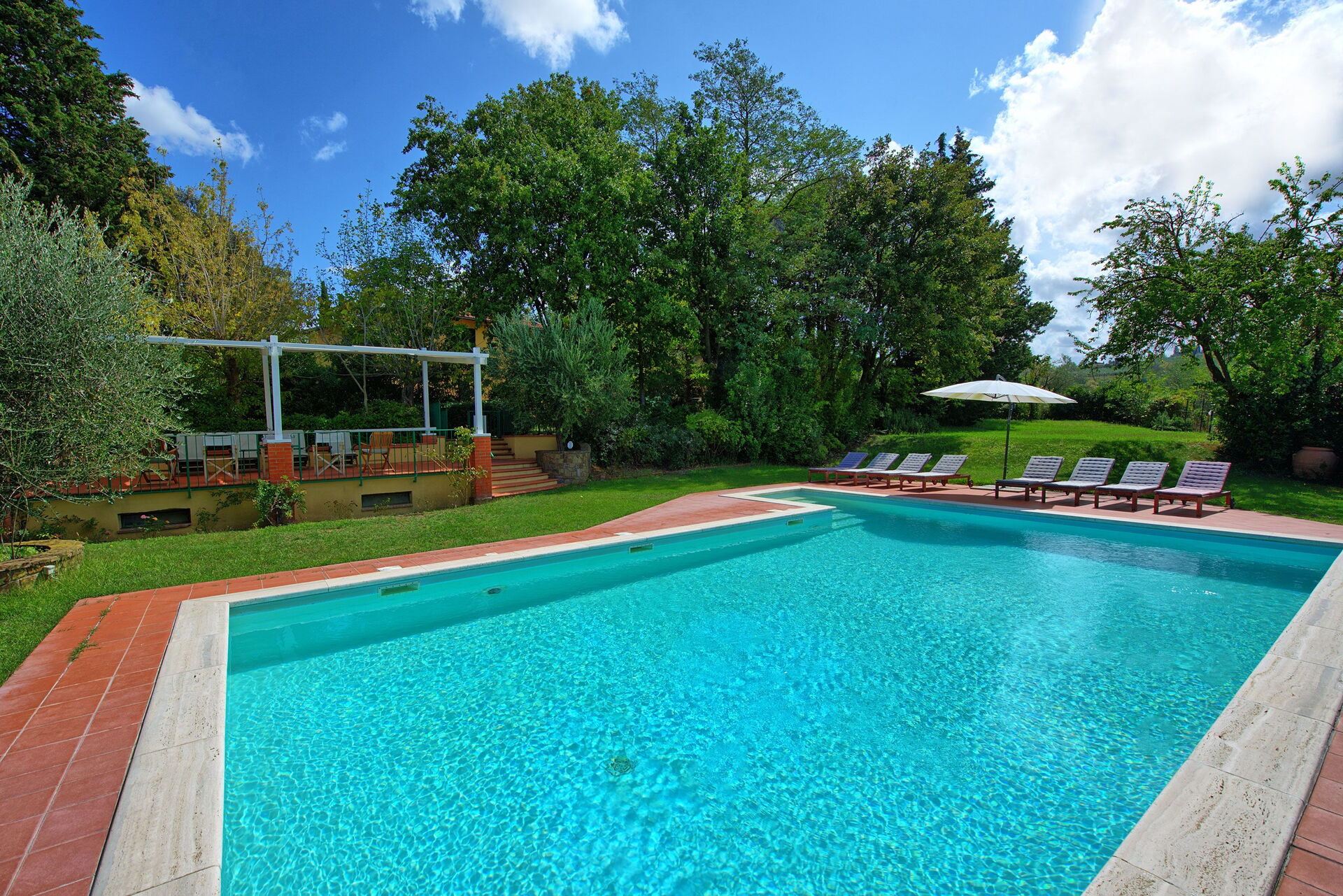 La maison est entourée d'un jardin bien entretenu avec piscine privée, solarium (chaises longues et parasols) et un espace barbecue avec un pavillon équipé pour les repas en plein air avec vue magnifique sur les collines qui entourent la propriété. A l'intérieur, la villa est meublée meublée selon le typique style des maisons de campagne et quelques pièces d’antiquité plus élégantes. Un cadre très suggestif qui vous fera déguster la véritable atmosphère des vacances en Toscane. Grâce à ses 5 chambres et ses nombreux espaces communs, la villa peut accueillir jusqu'à 10 personnes. Salle avec ping-pong, billard et piano.