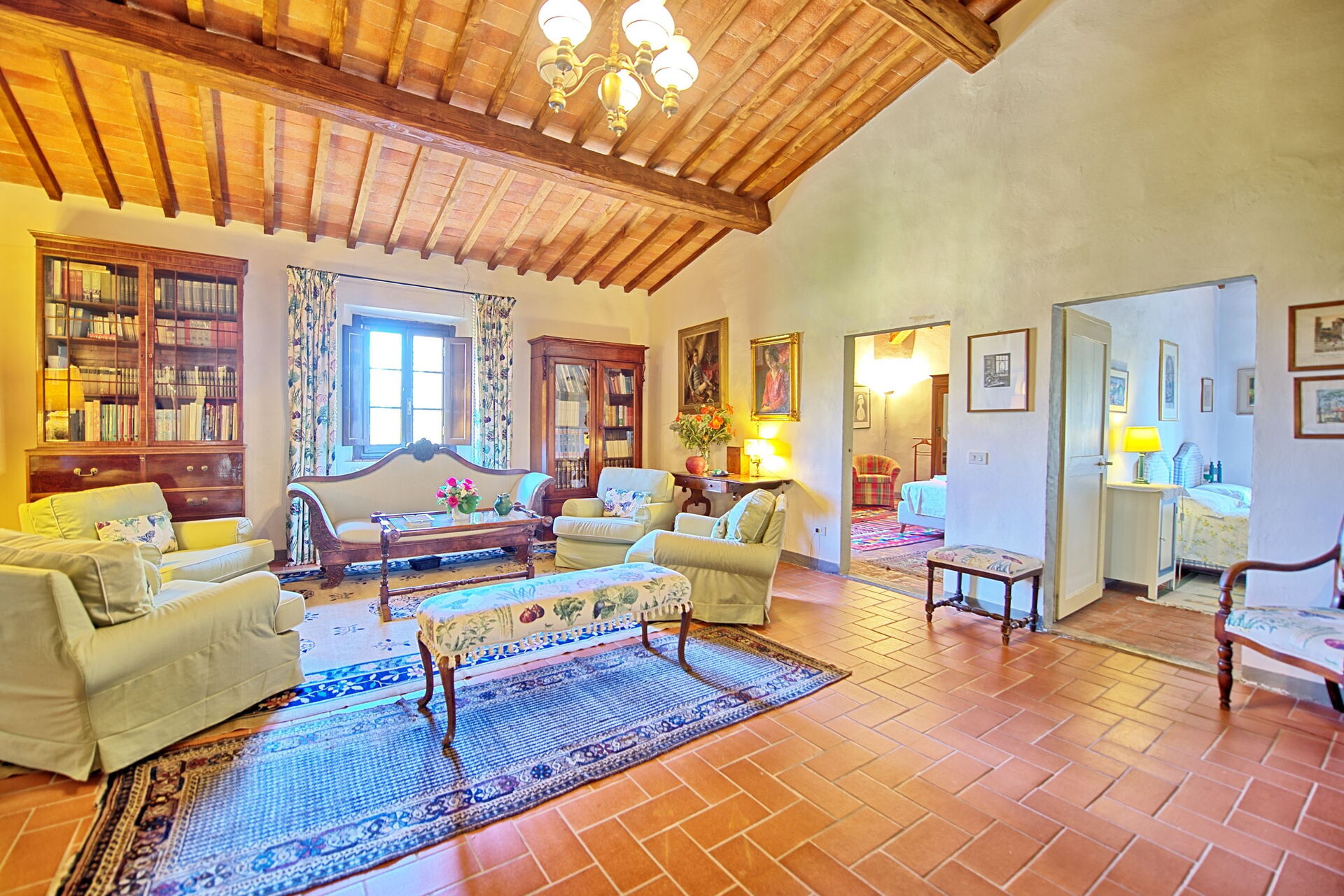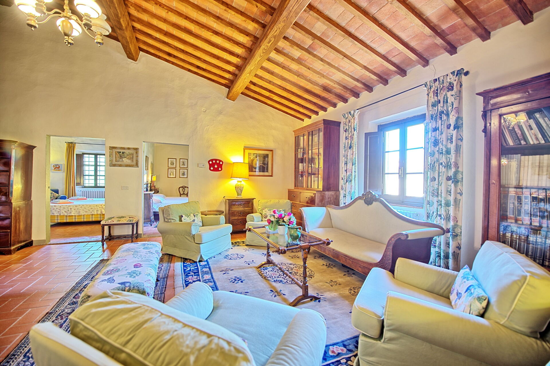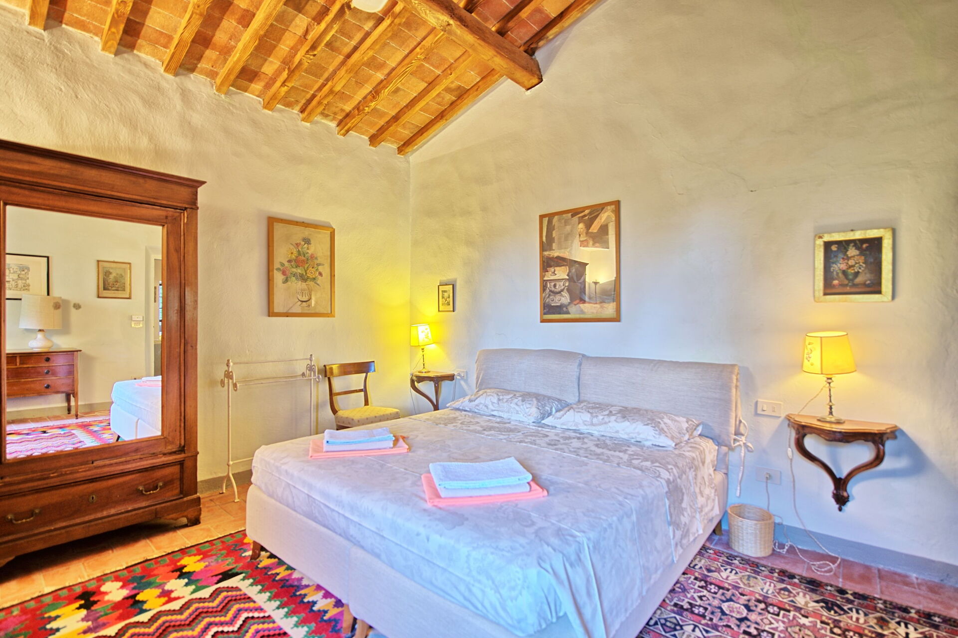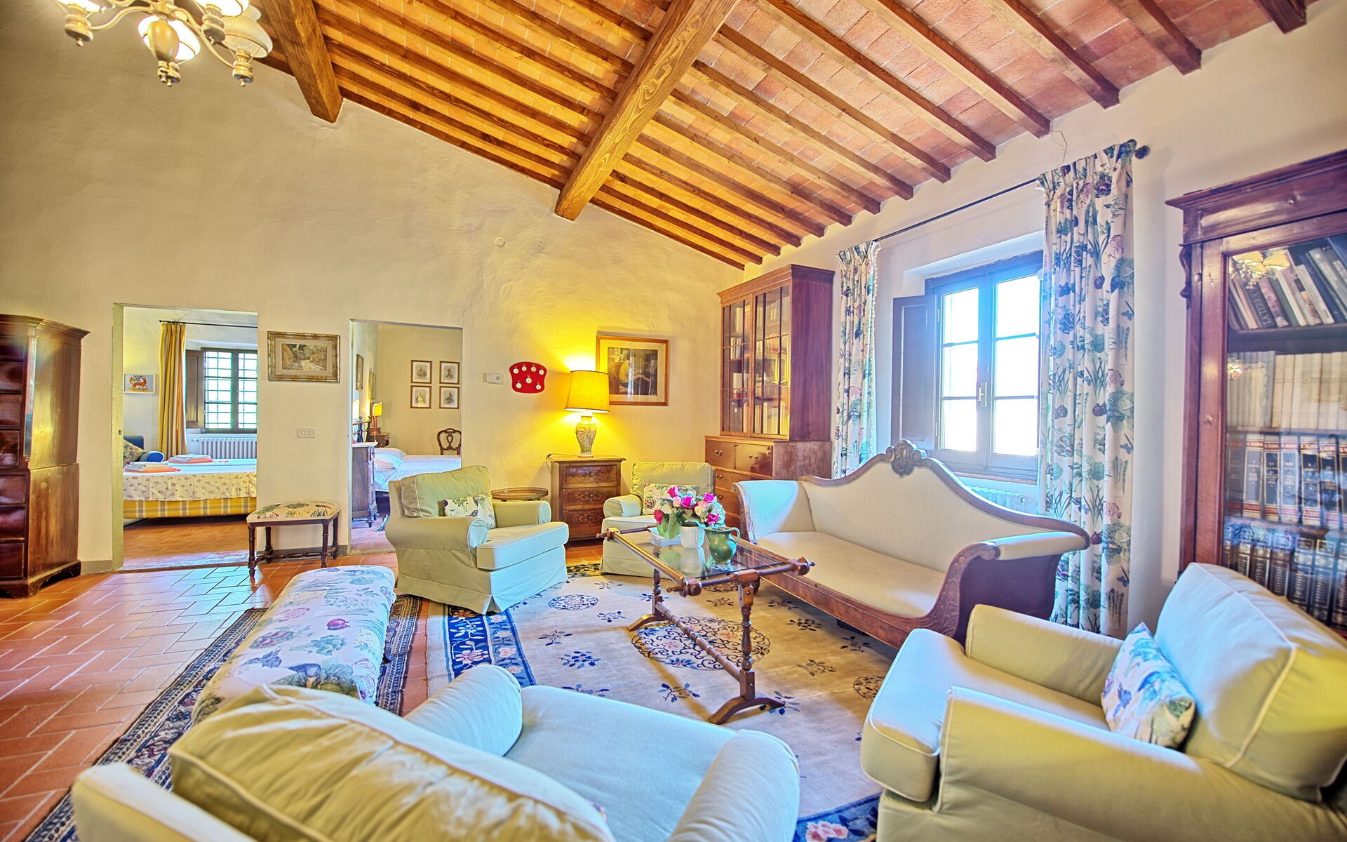 La maison est entourée d'un jardin bien entretenu avec piscine privée, solarium (chaises longues et parasols) et un espace barbecue avec un pavillon équipé pour les repas en plein air avec vue magnifique sur les collines qui entourent la propriété. A l'intérieur, la villa est meublée meublée selon le typique style des maisons de campagne et quelques pièces d’antiquité plus élégantes. Un cadre très suggestif qui vous fera déguster la véritable atmosphère des vacances en Toscane. Grâce à ses 5 chambres et ses nombreux espaces communs, la villa peut accueillir jusqu'à 10 personnes. Salle avec ping-pong, billard et piano.