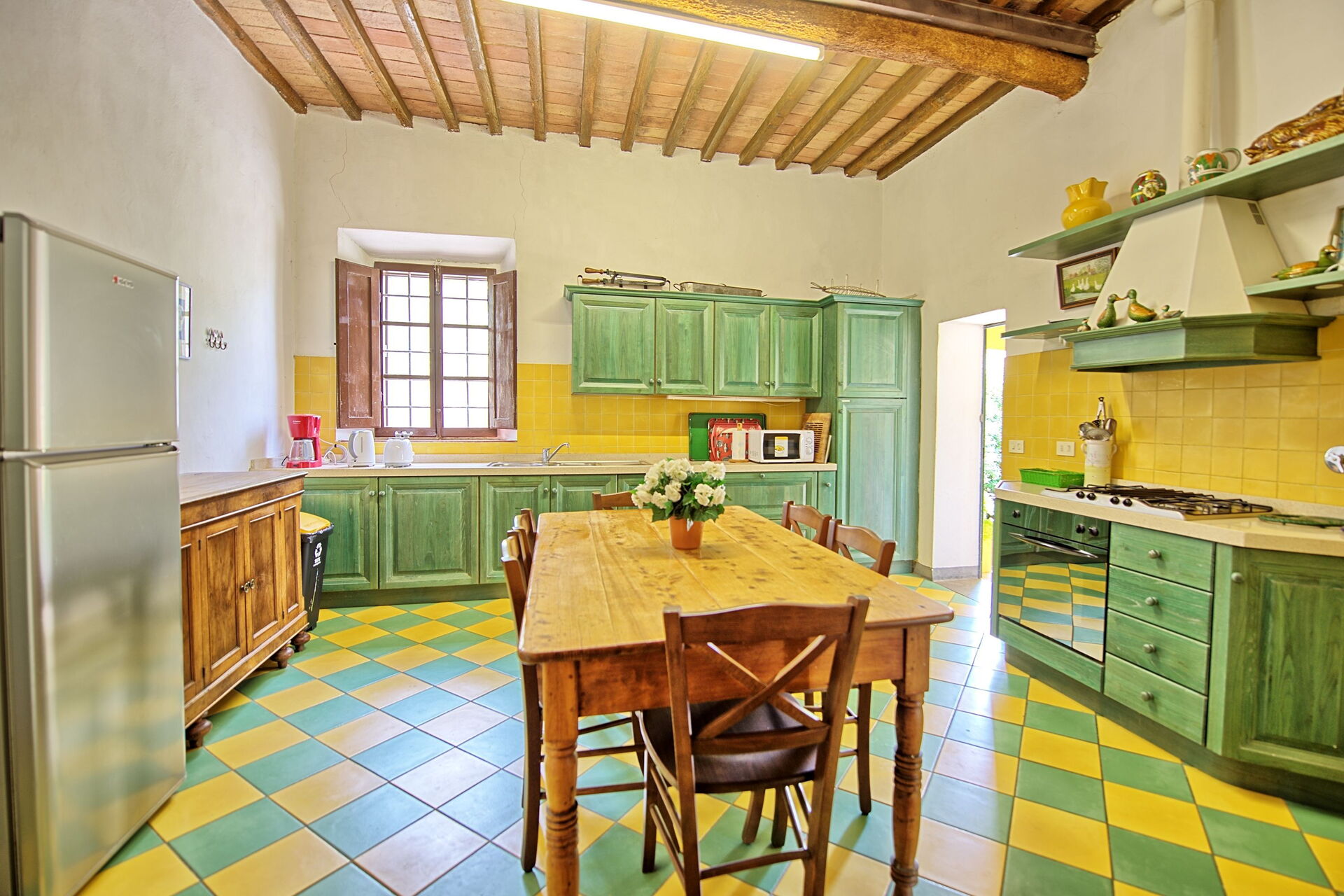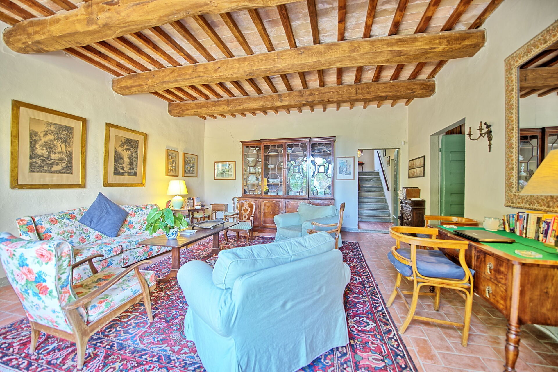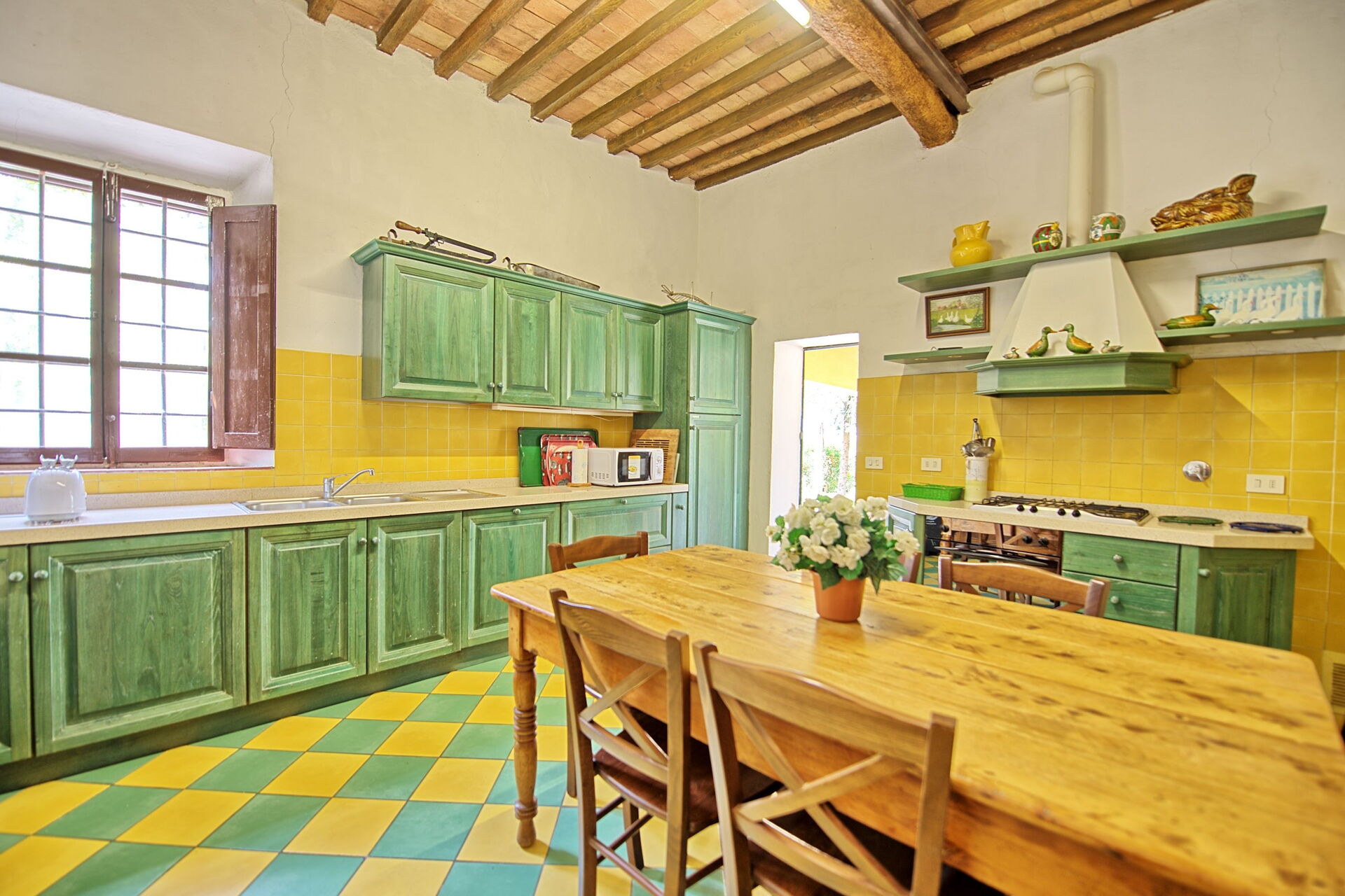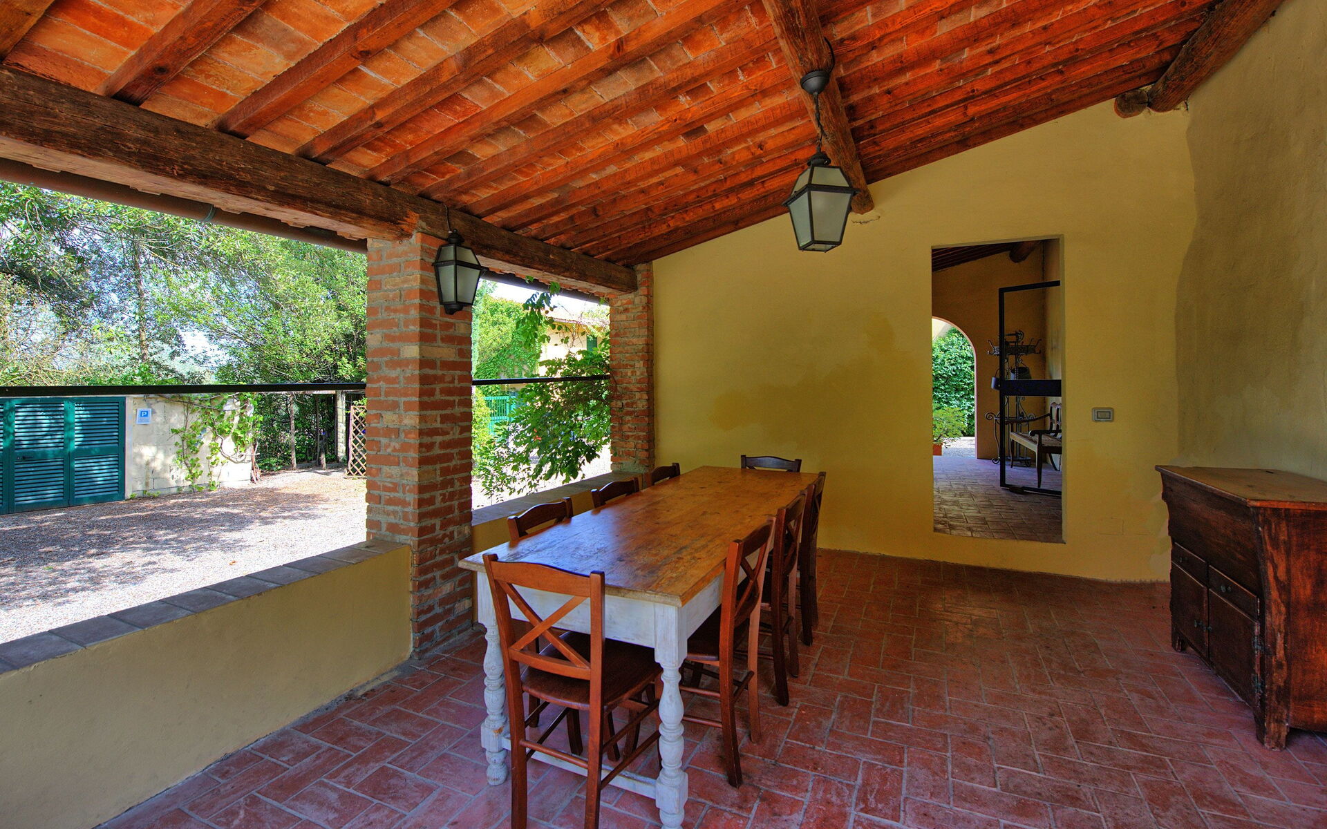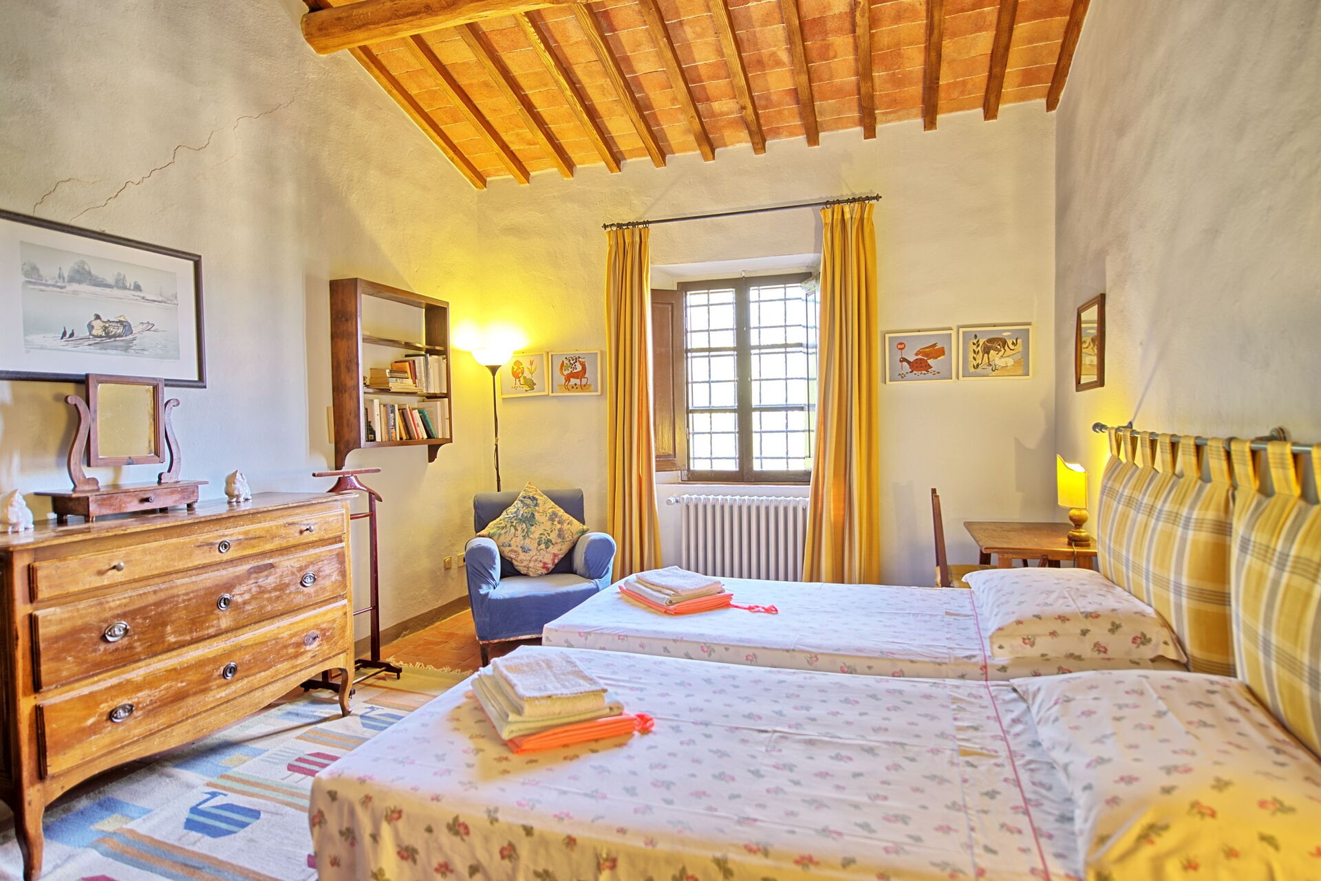 La maison est entourée d'un jardin bien entretenu avec piscine privée, solarium (chaises longues et parasols) et un espace barbecue avec un pavillon équipé pour les repas en plein air avec vue magnifique sur les collines qui entourent la propriété. A l'intérieur, la villa est meublée meublée selon le typique style des maisons de campagne et quelques pièces d’antiquité plus élégantes. Un cadre très suggestif qui vous fera déguster la véritable atmosphère des vacances en Toscane. Grâce à ses 5 chambres et ses nombreux espaces communs, la villa peut accueillir jusqu'à 10 personnes. Salle avec ping-pong, billard et piano.