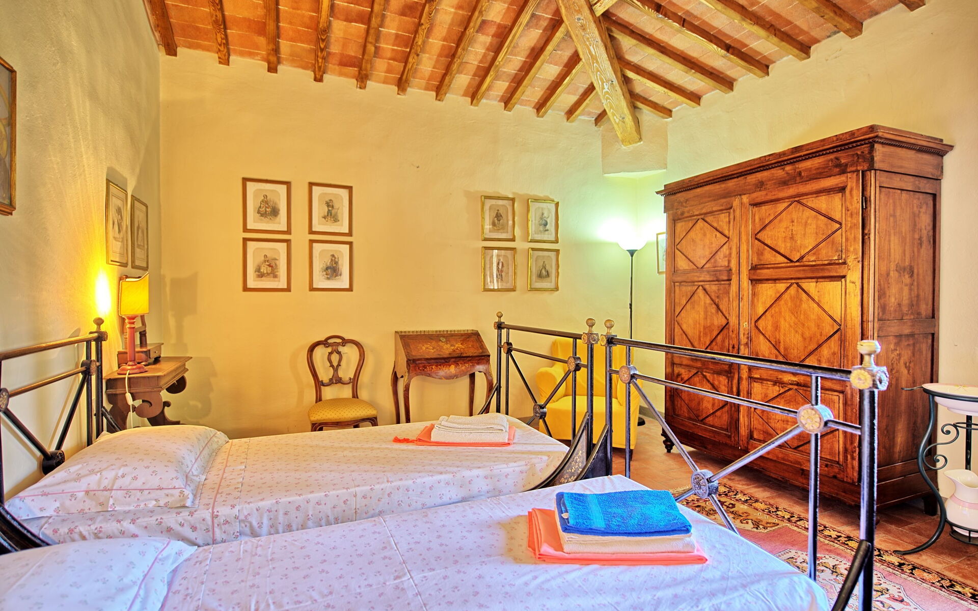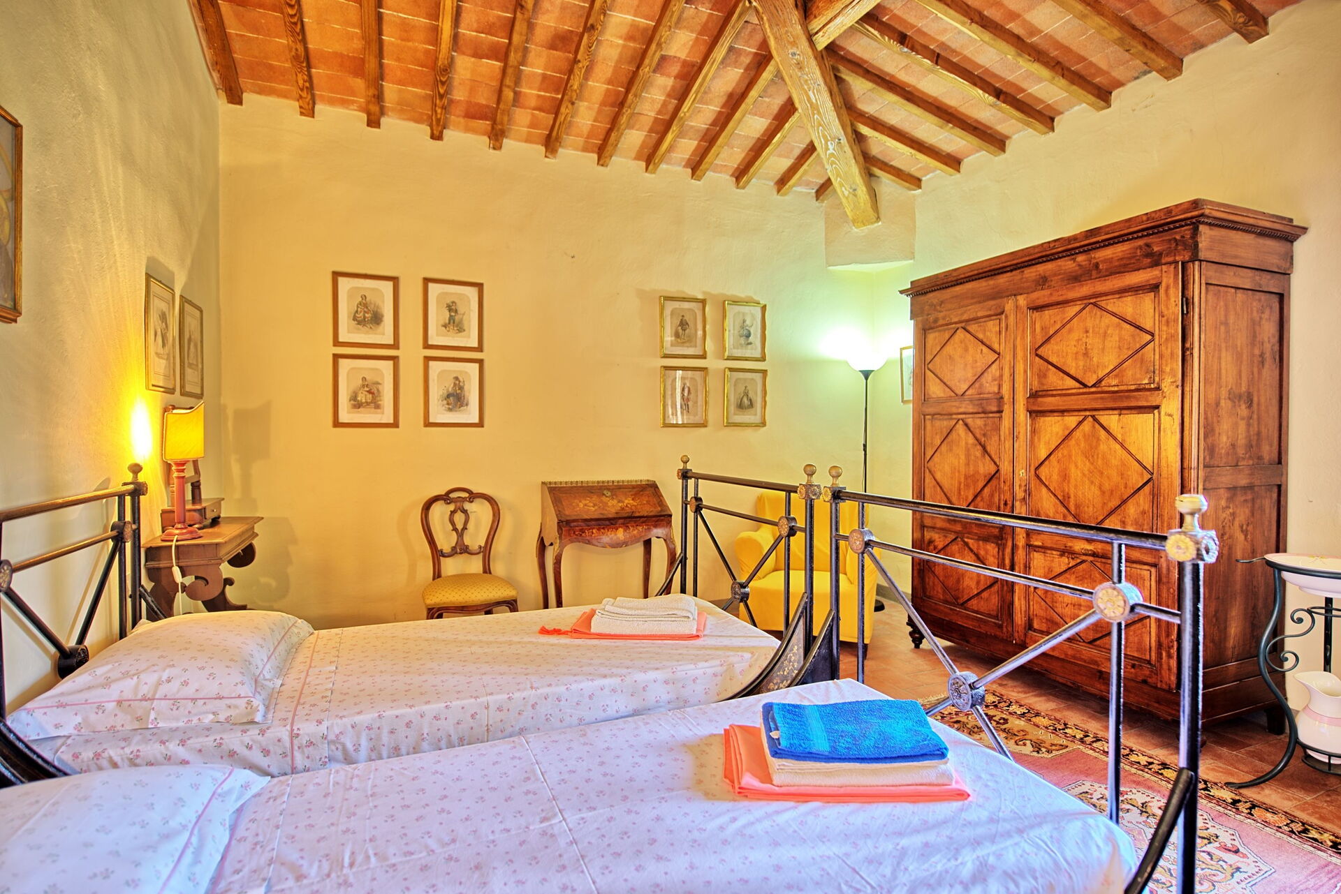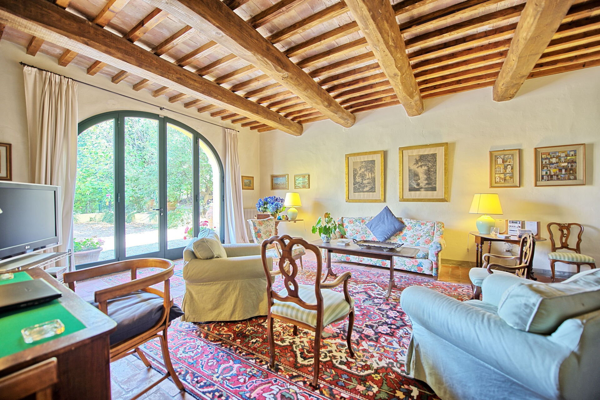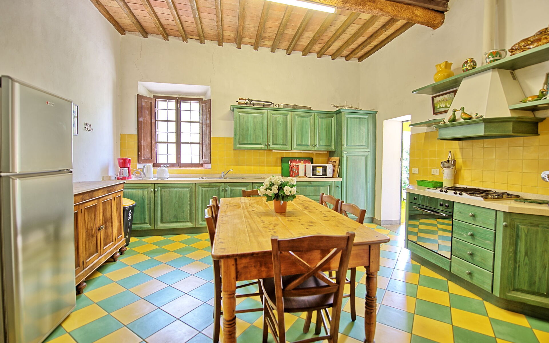 La maison est entourée d'un jardin bien entretenu avec piscine privée, solarium (chaises longues et parasols) et un espace barbecue avec un pavillon équipé pour les repas en plein air avec vue magnifique sur les collines qui entourent la propriété. A l'intérieur, la villa est meublée meublée selon le typique style des maisons de campagne et quelques pièces d’antiquité plus élégantes. Un cadre très suggestif qui vous fera déguster la véritable atmosphère des vacances en Toscane. Grâce à ses 5 chambres et ses nombreux espaces communs, la villa peut accueillir jusqu'à 10 personnes. Salle avec ping-pong, billard et piano.