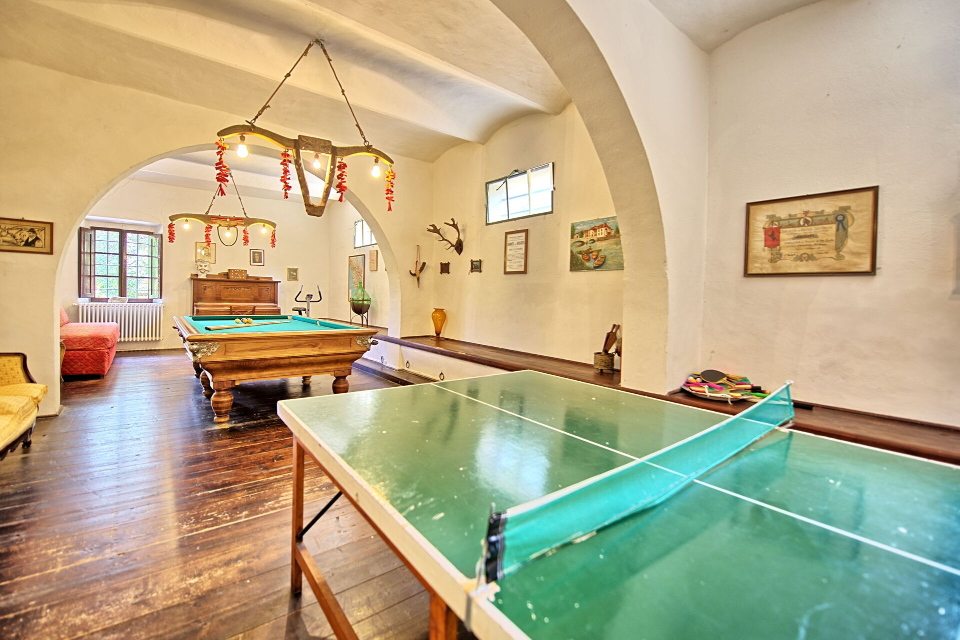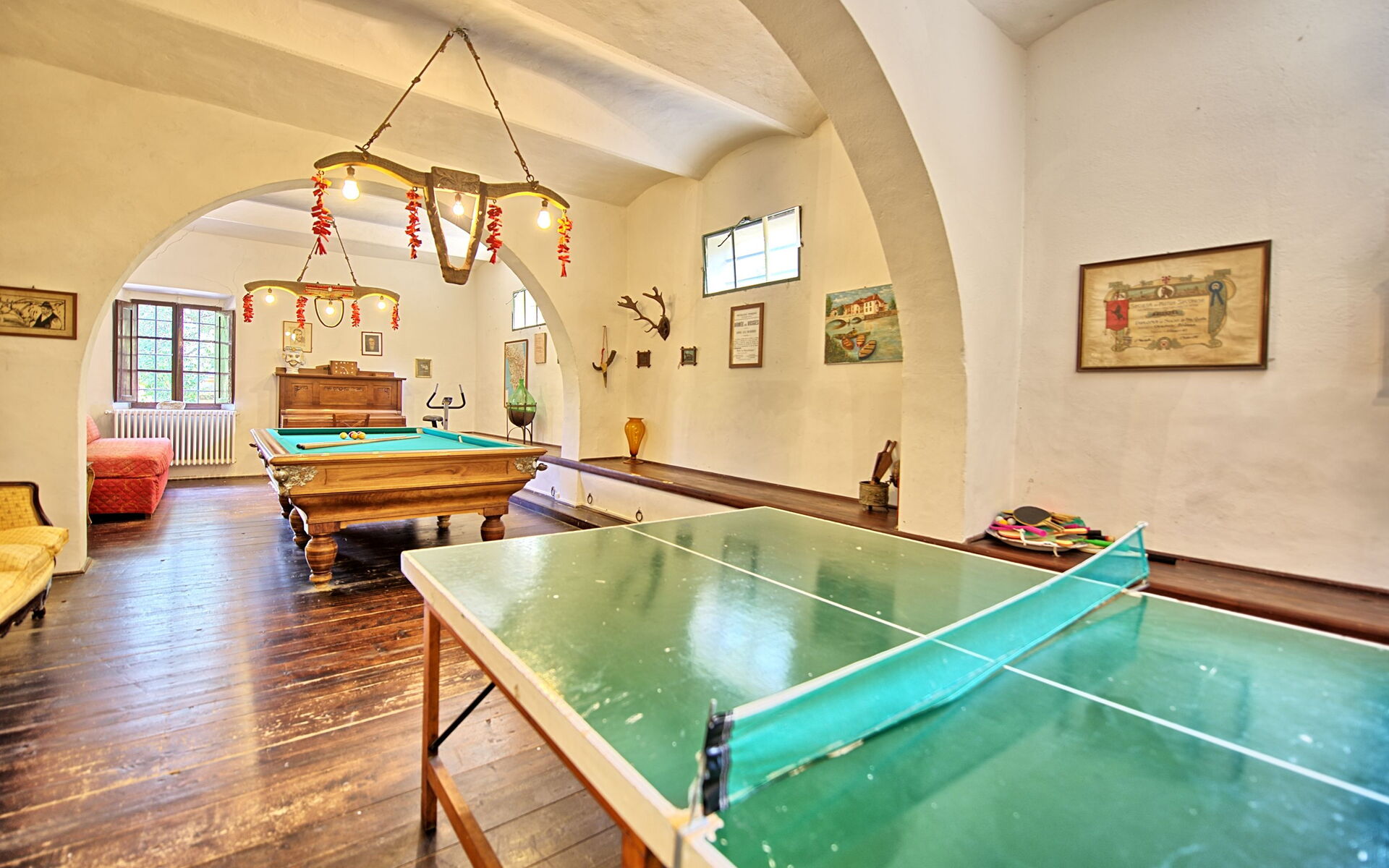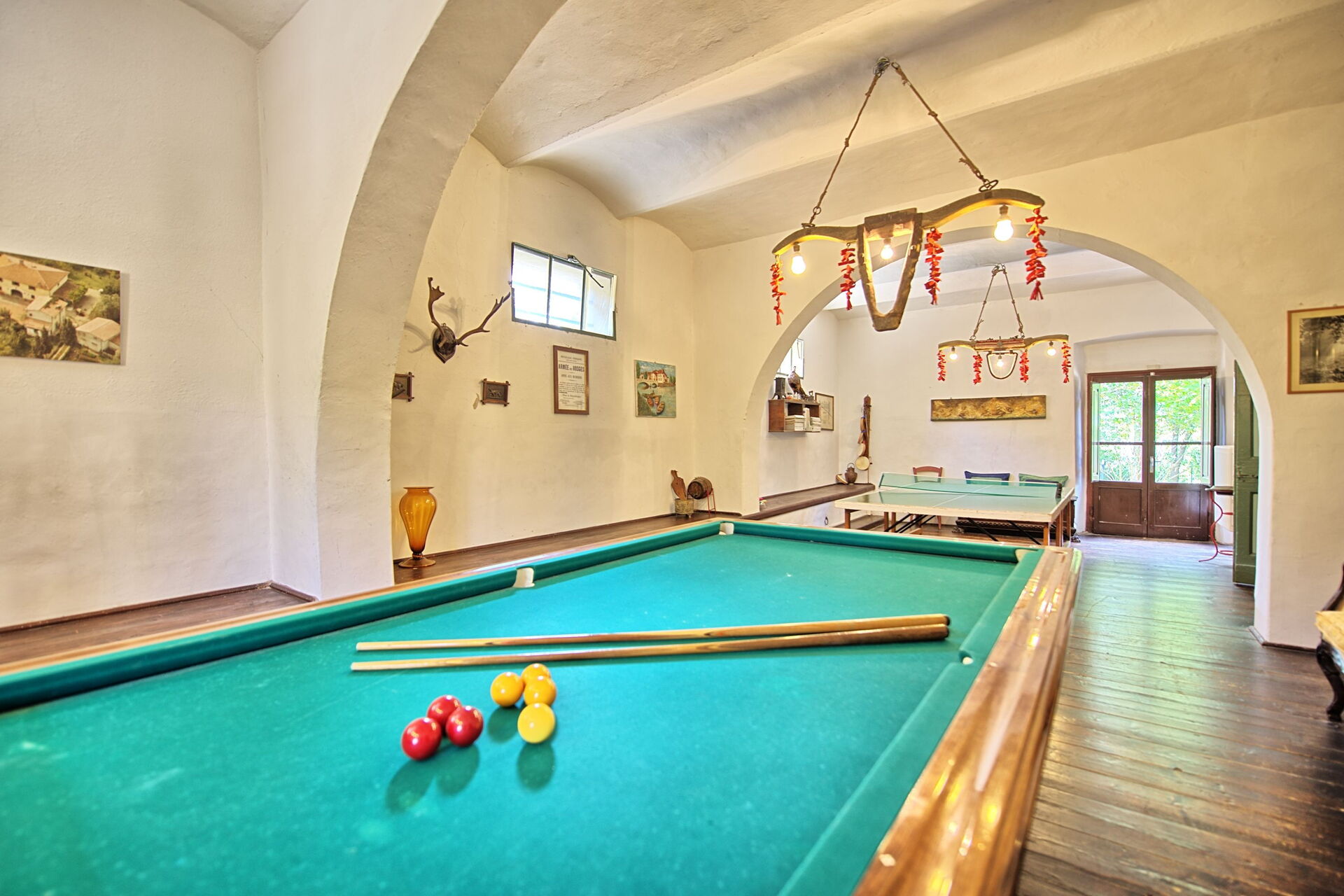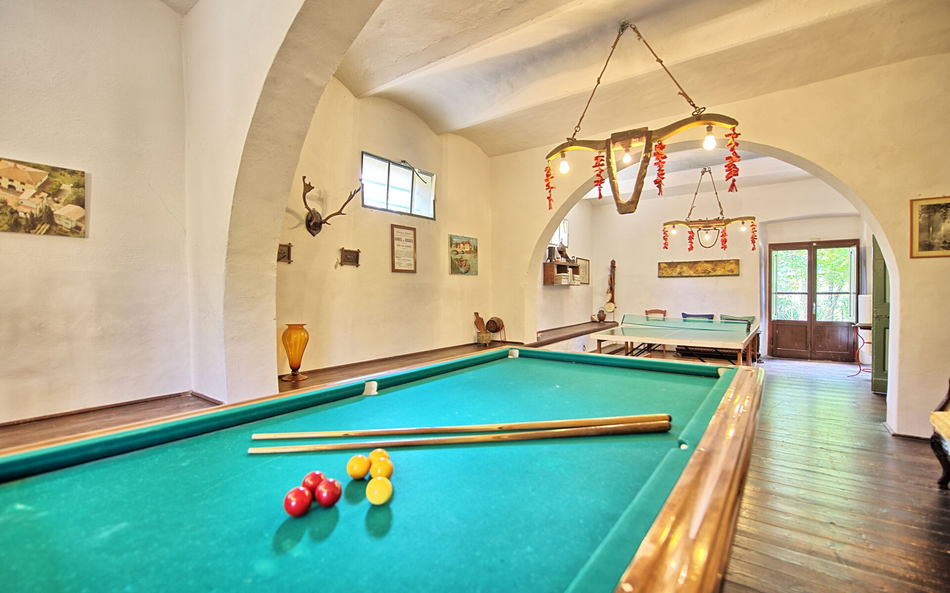 A disposition des hôtes: terrasse couverte (située devant la cuisine) avec table et chaises, jardin, piscine (11 x 6m – prof.: 1,20/1,80m) clôturée, terrasse ombragée avec table et chaises. Salle interne (ancienne écurie) avec billard, ping-pong, piano et appareils de gymnastique : tapis roulant, vélo elliptique. Conexion Internet Wi Fi (usage gratuit).