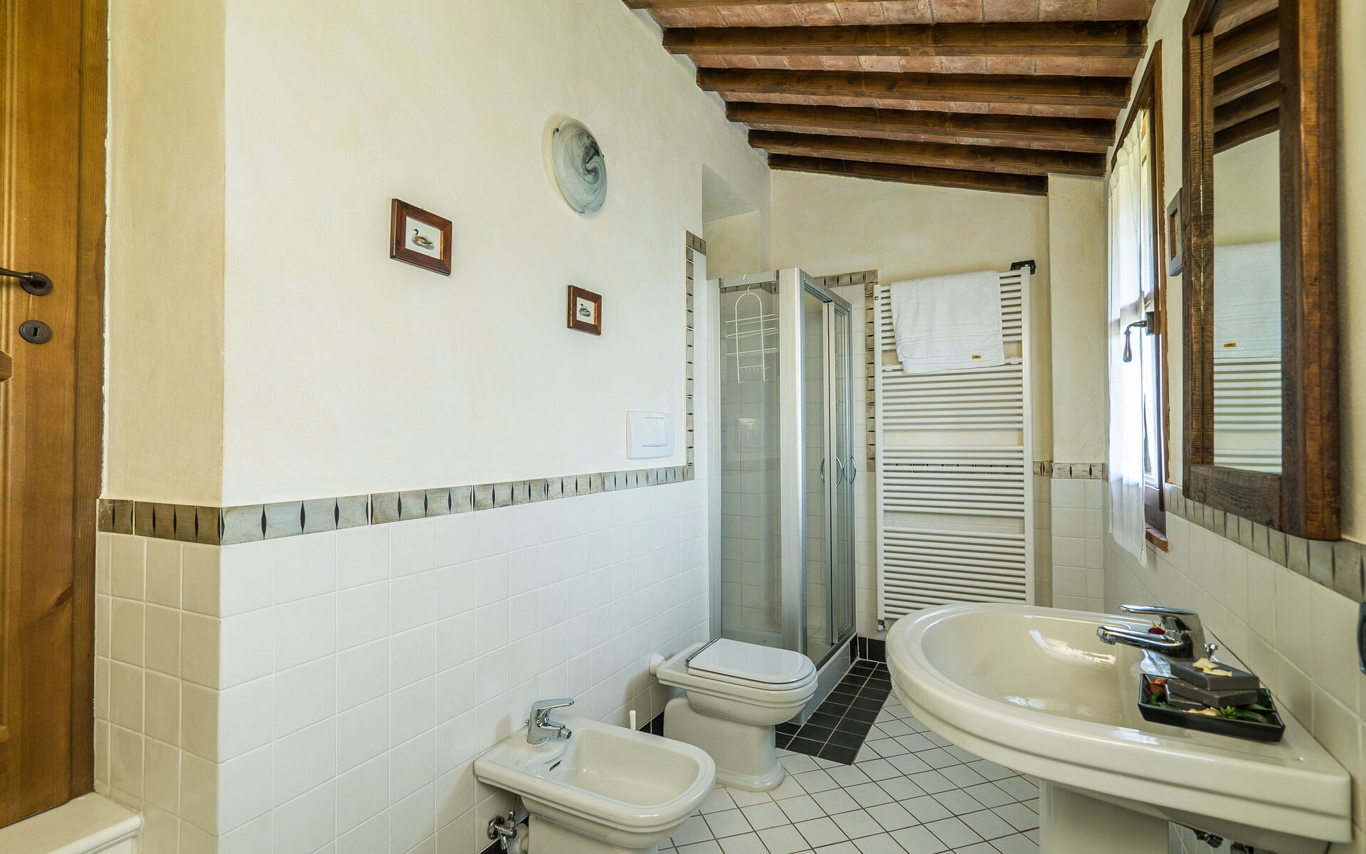 salle de bain 3: bassin, wc, bidet, douche.