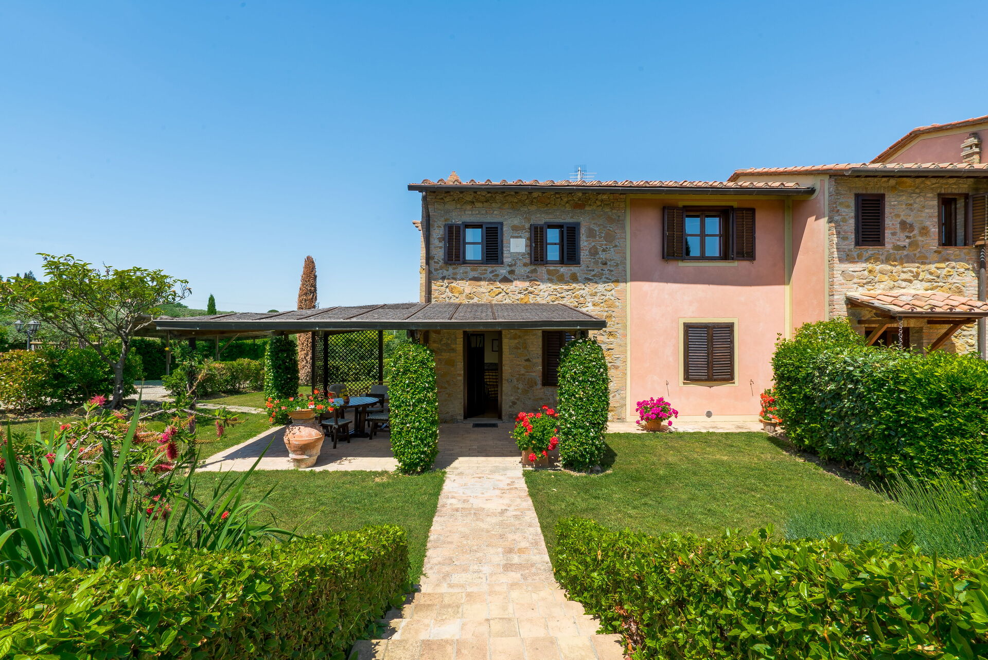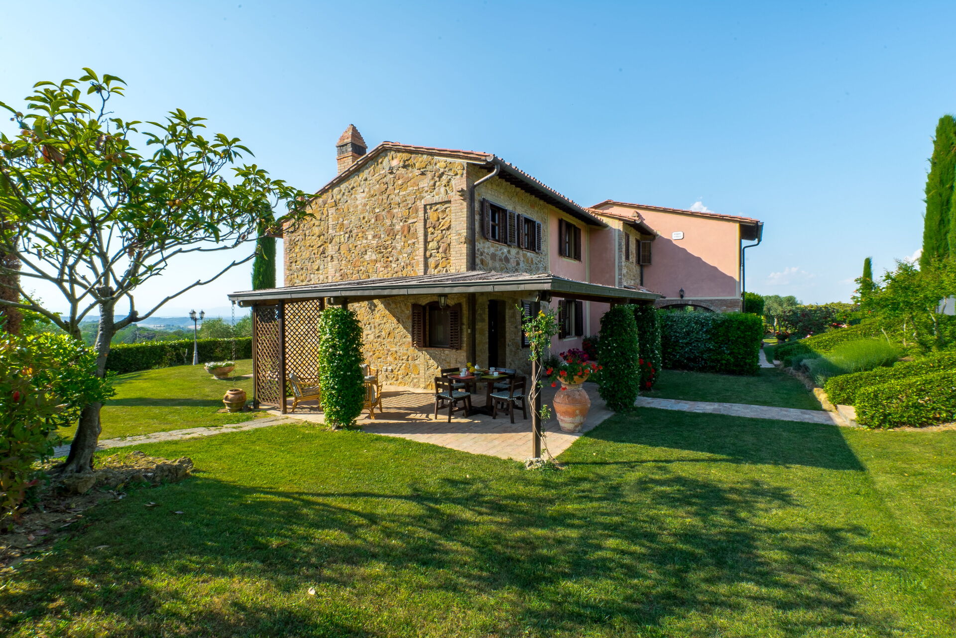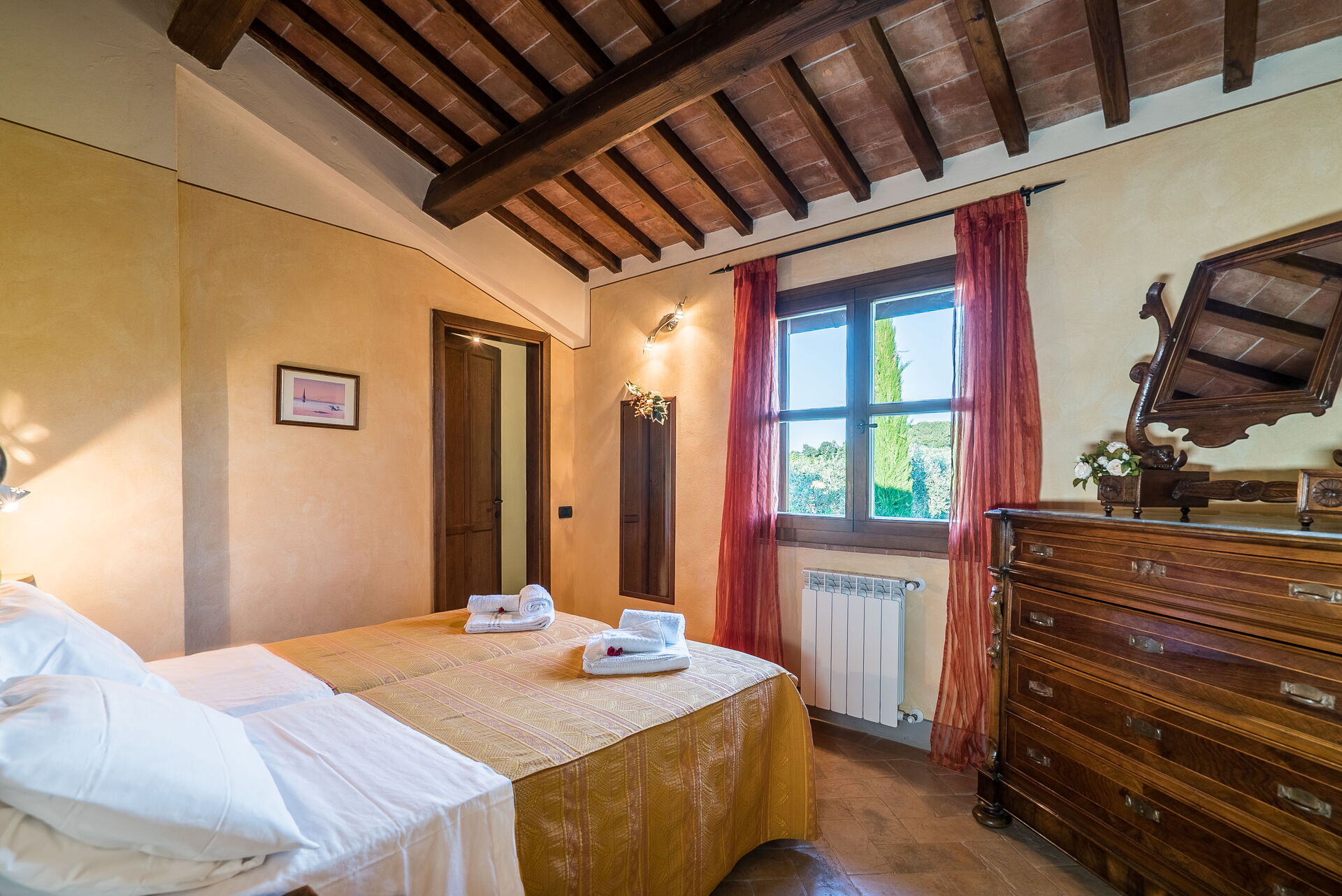 La plupart des gens aiment visiter les villes et les villages dans les alentours pendant les vacances, donc pour votre référence vous trouvez ici est une liste des lieux populaires avec les distances (à vol d’oiseau) en voiture depuis la propriété:San Gimignano 19 km, Florence 58 km, Pise 58 km, Greve In Chianti 63 km et Sienne 64 km.