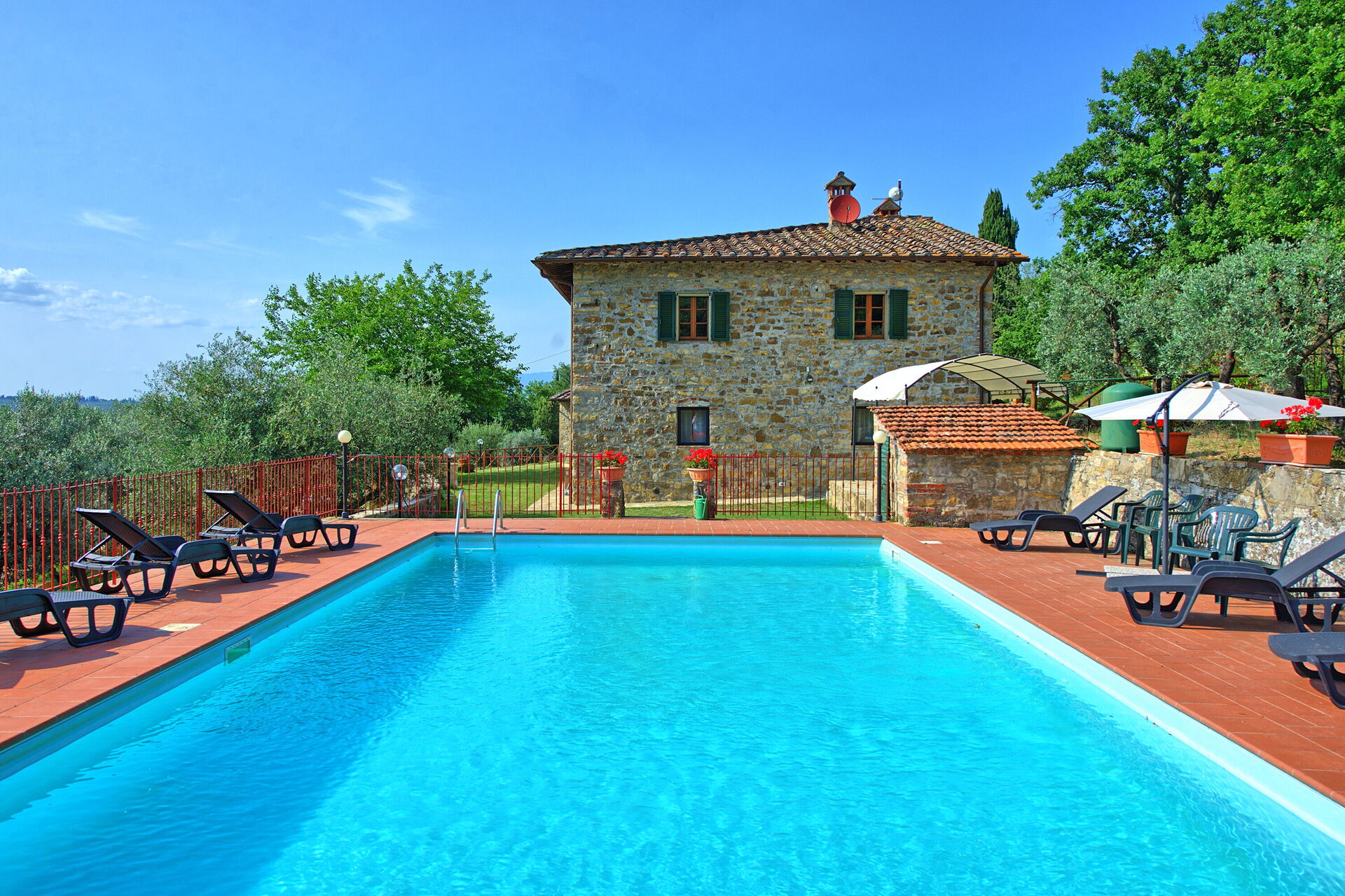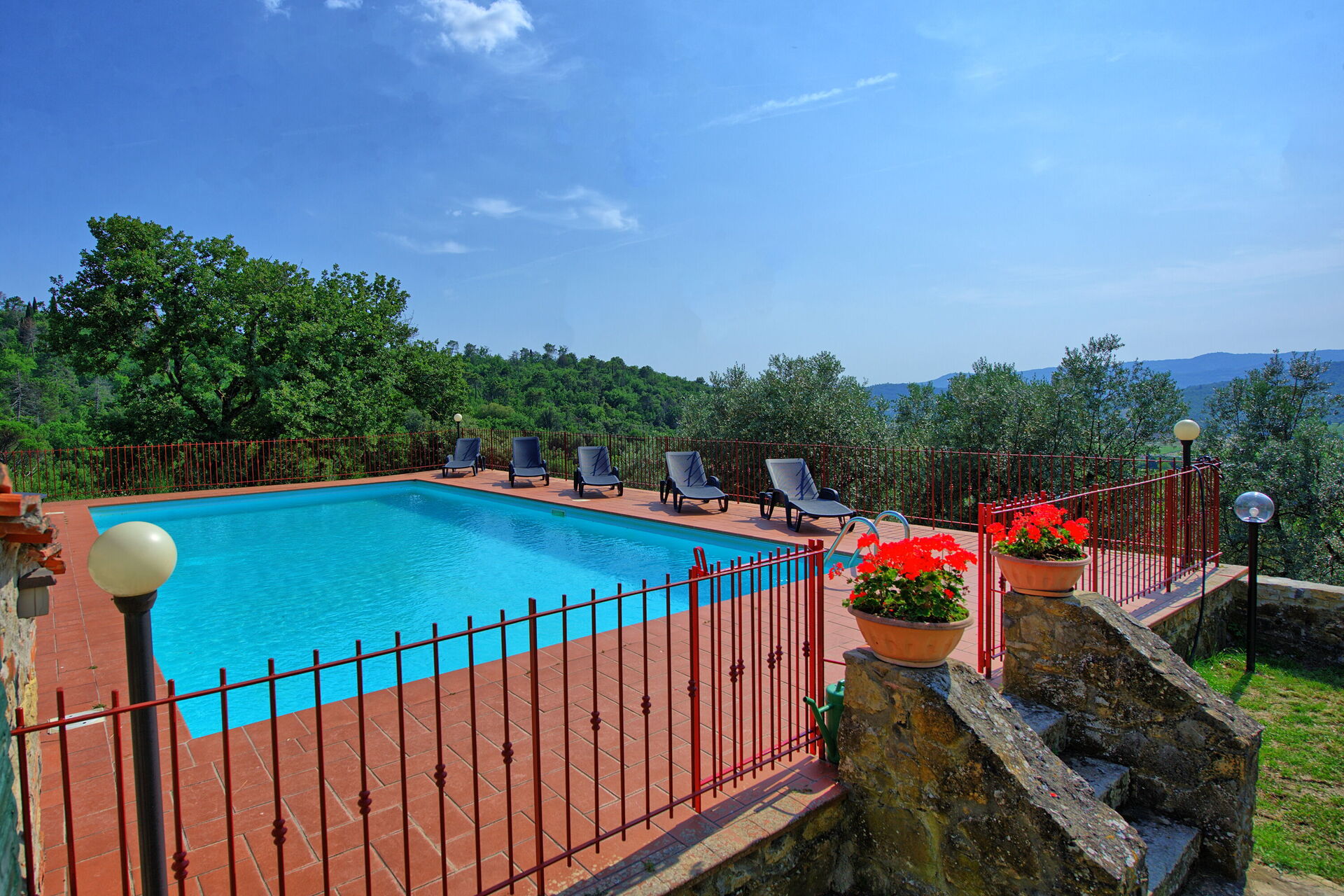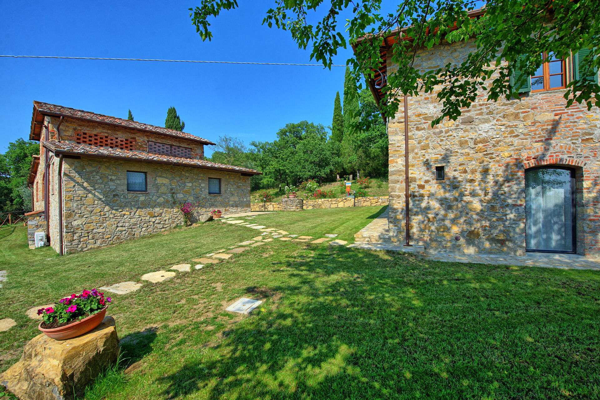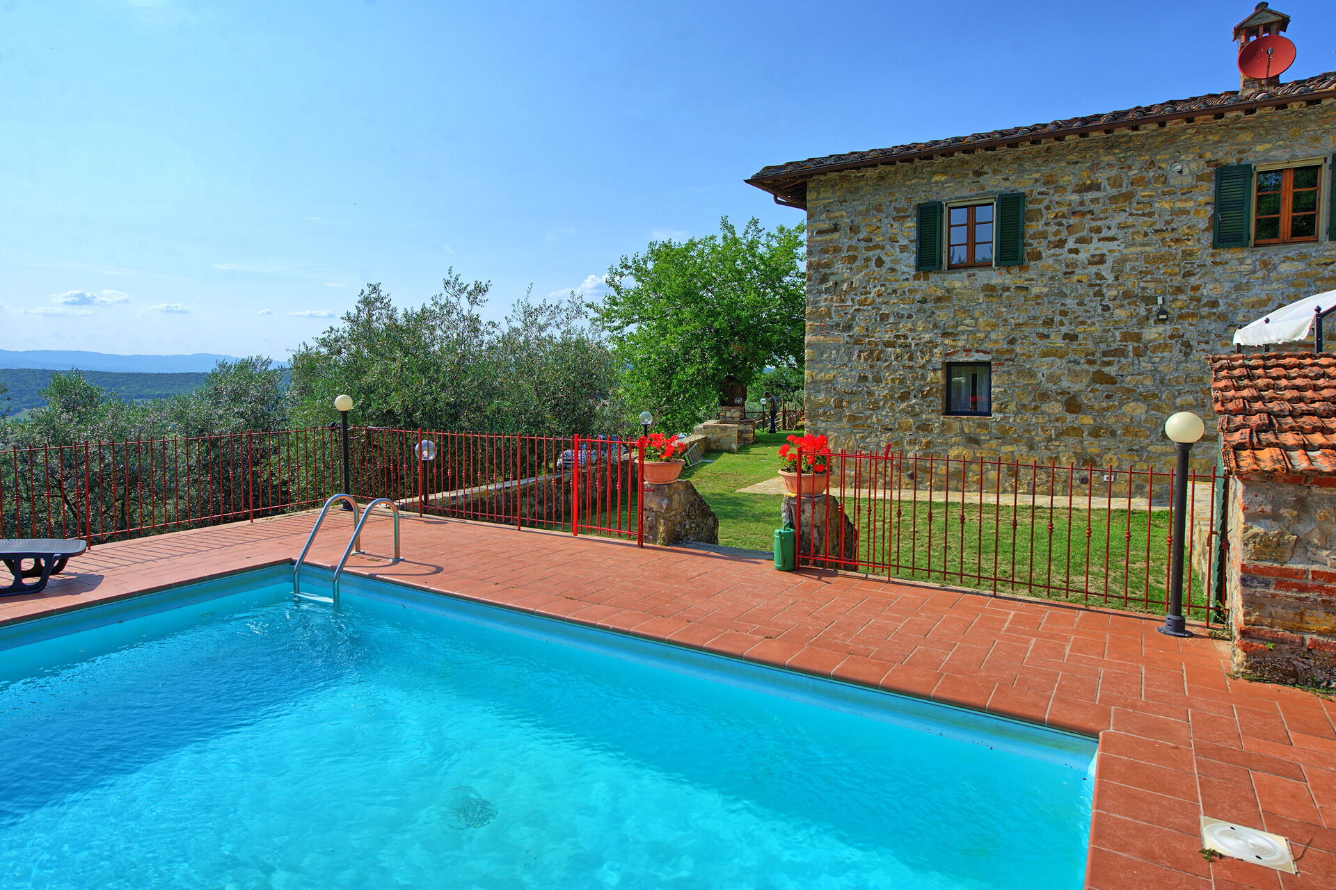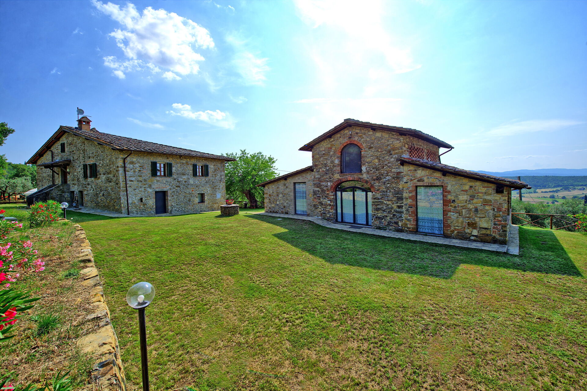 Typique ferme toscane, composée de 6 chambres et 4 salles de bains, est située parmi les collines du Chianti et Arezzo. Se compose de la maison principale (avec 4 chambres et 2 salles de bains) et d'une grange (avec 2 chambres et 2 salles de bains) située à quelques mètres de distance. Vue magnifique sur les bois, les champs et les vignes des environs. Belle piscine en position panoramique.