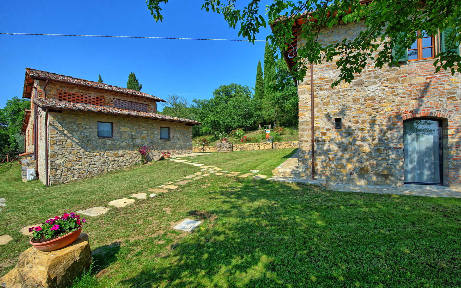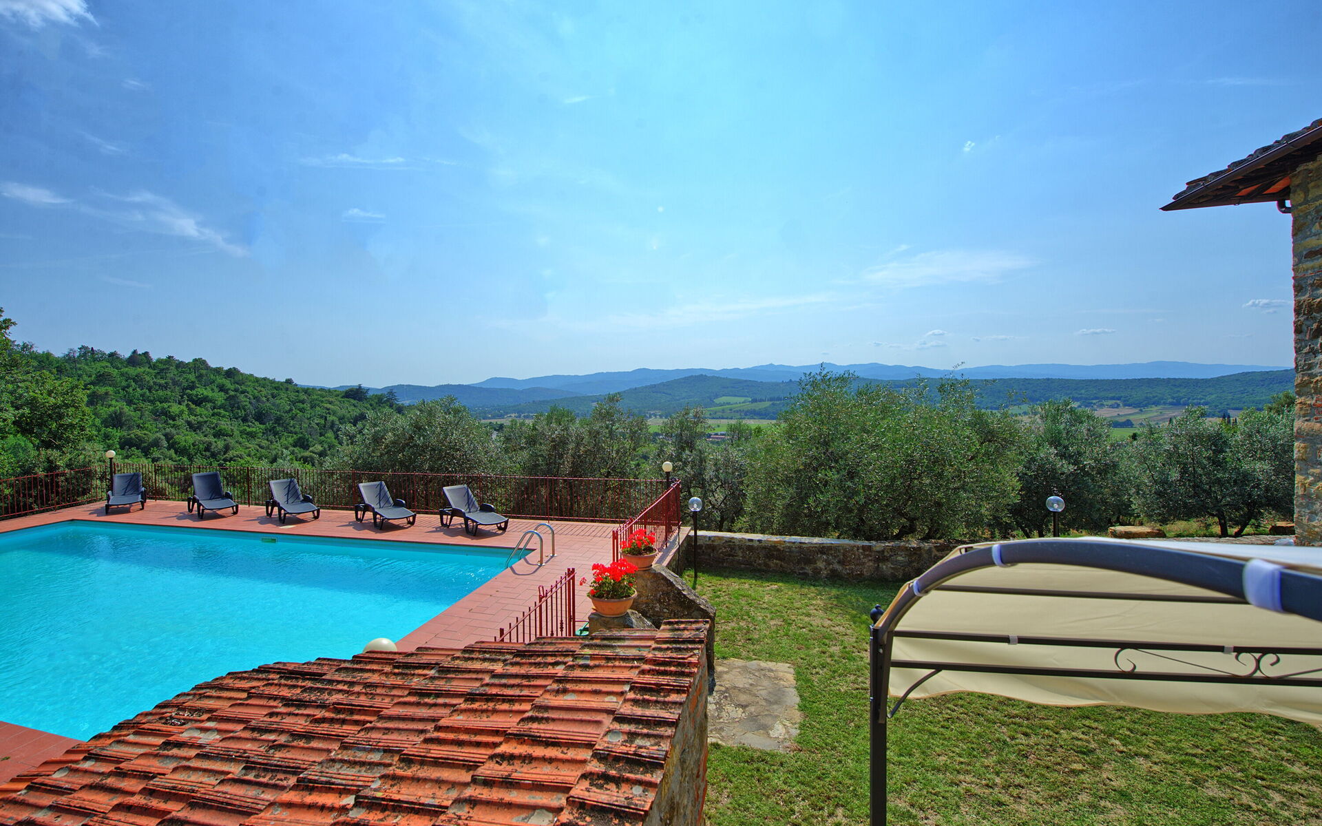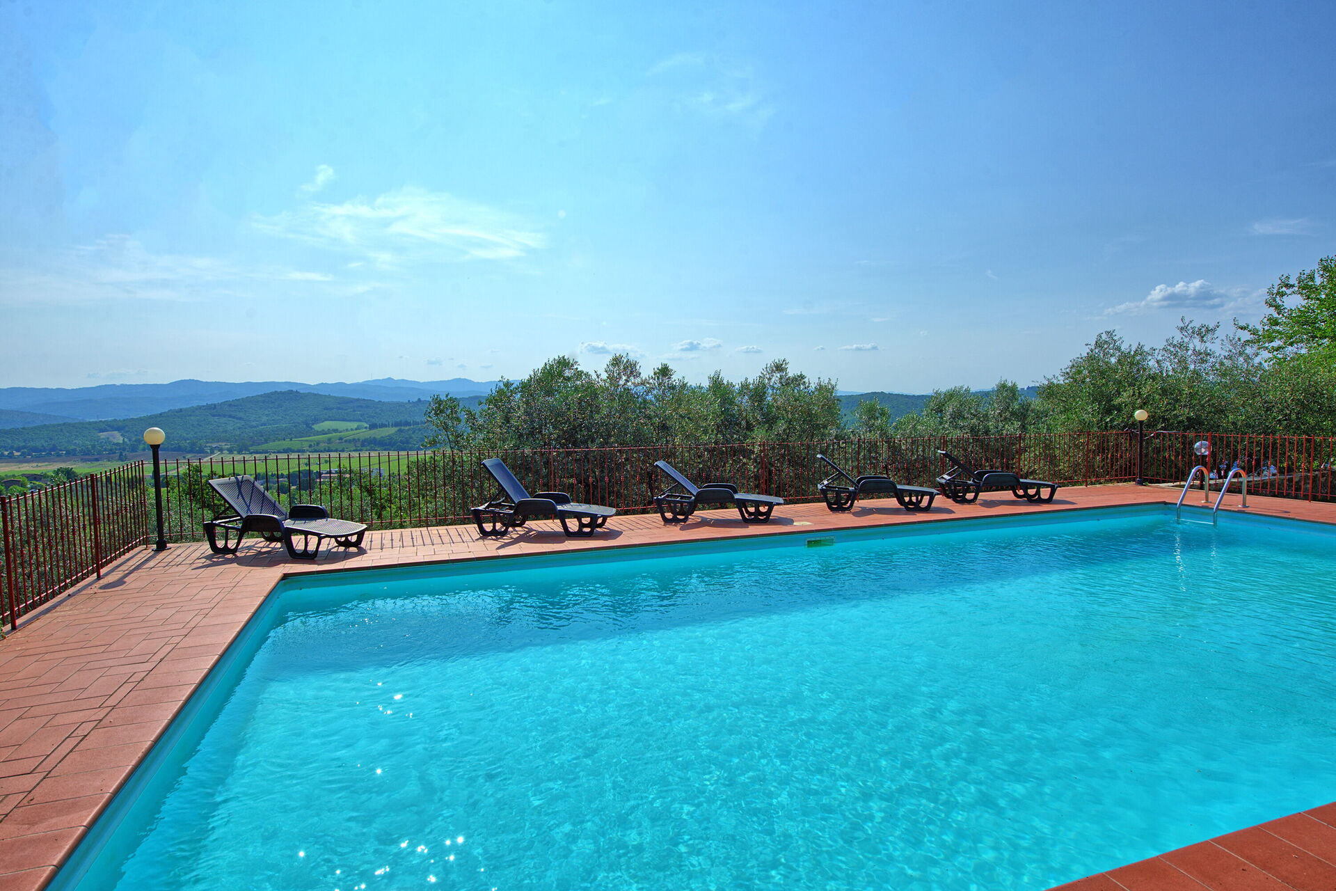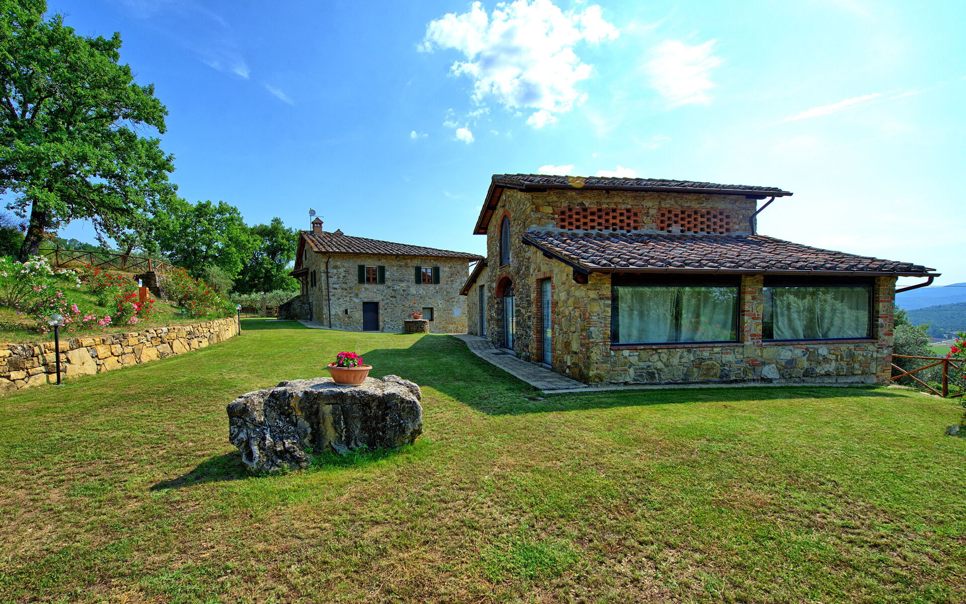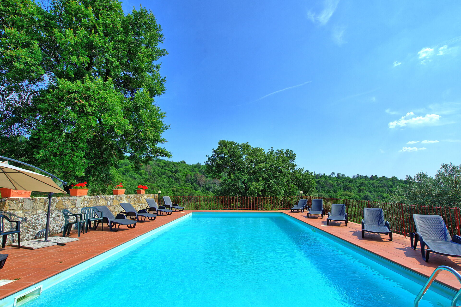 Typique ferme toscane, composée de 6 chambres et 4 salles de bains, est située parmi les collines du Chianti et Arezzo. Se compose de la maison principale (avec 4 chambres et 2 salles de bains) et d'une grange (avec 2 chambres et 2 salles de bains) située à quelques mètres de distance. Vue magnifique sur les bois, les champs et les vignes des environs. Belle piscine en position panoramique.