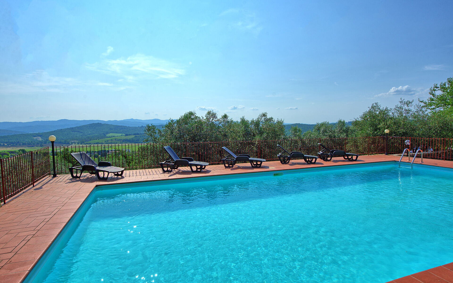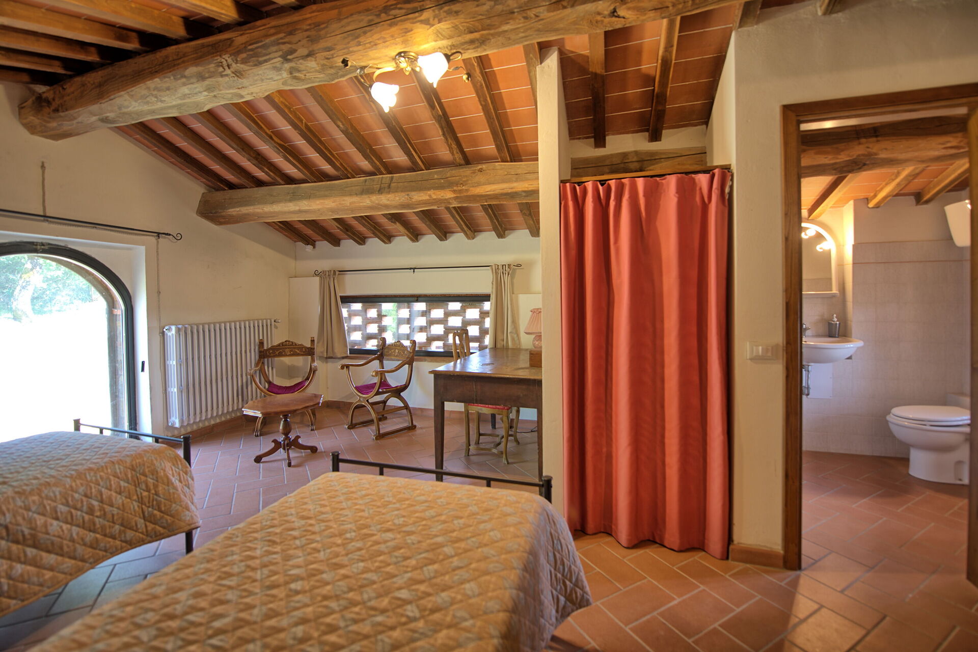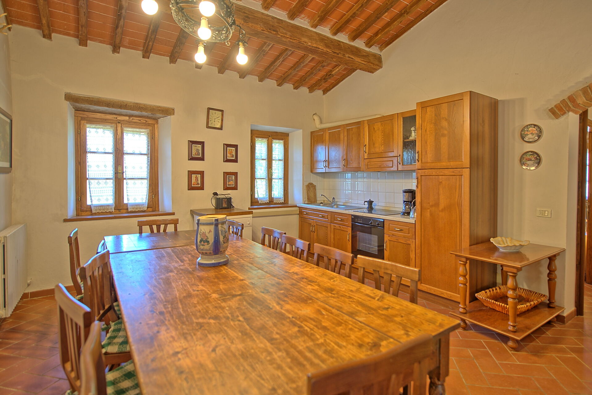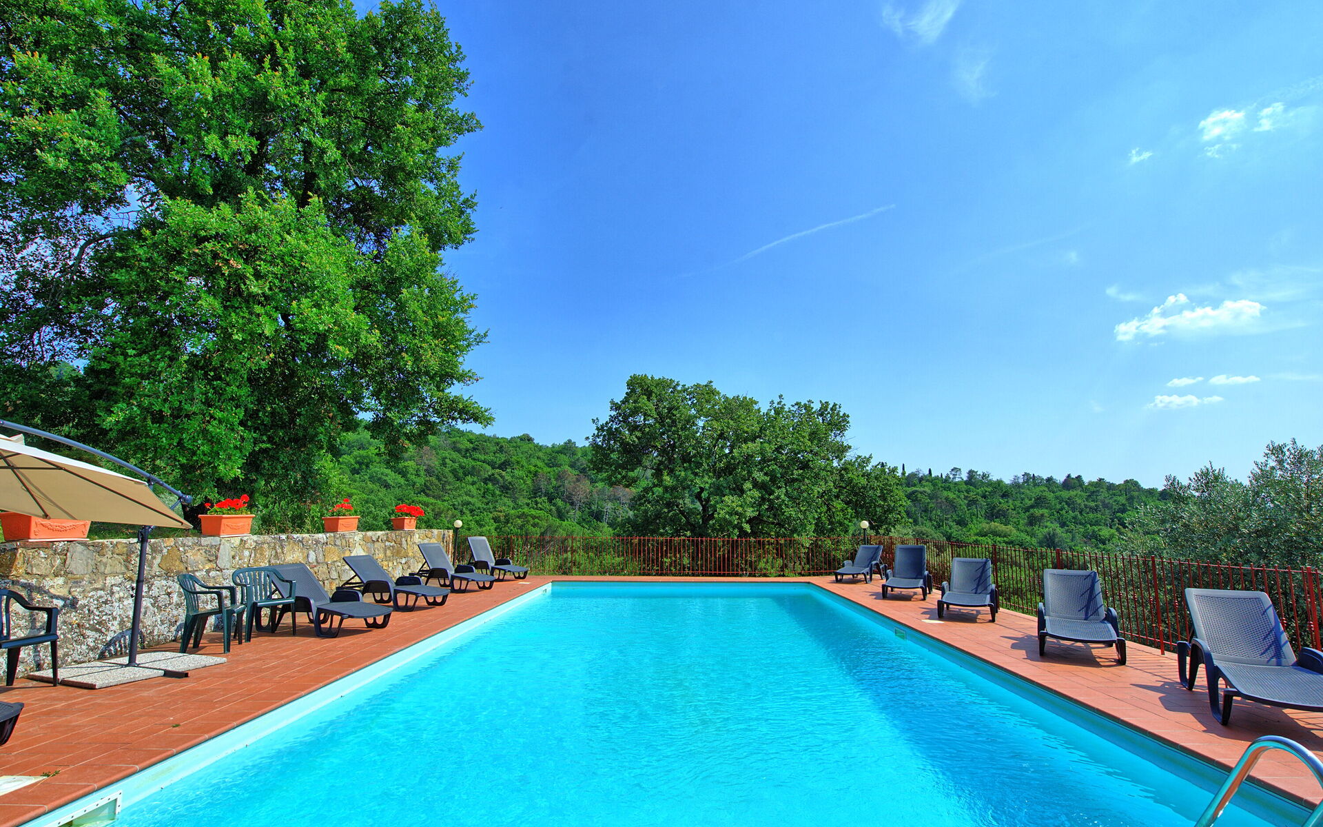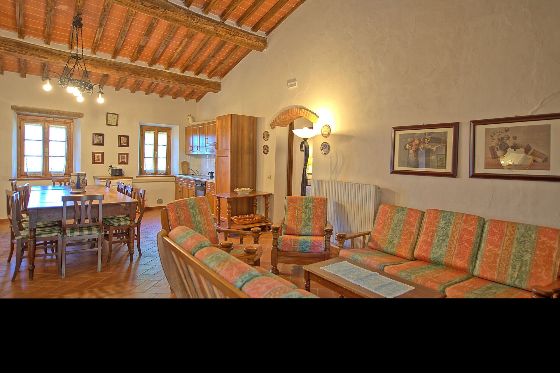 Typique ferme toscane, composée de 6 chambres et 4 salles de bains, est située parmi les collines du Chianti et Arezzo. Se compose de la maison principale (avec 4 chambres et 2 salles de bains) et d'une grange (avec 2 chambres et 2 salles de bains) située à quelques mètres de distance. Vue magnifique sur les bois, les champs et les vignes des environs. Belle piscine en position panoramique.