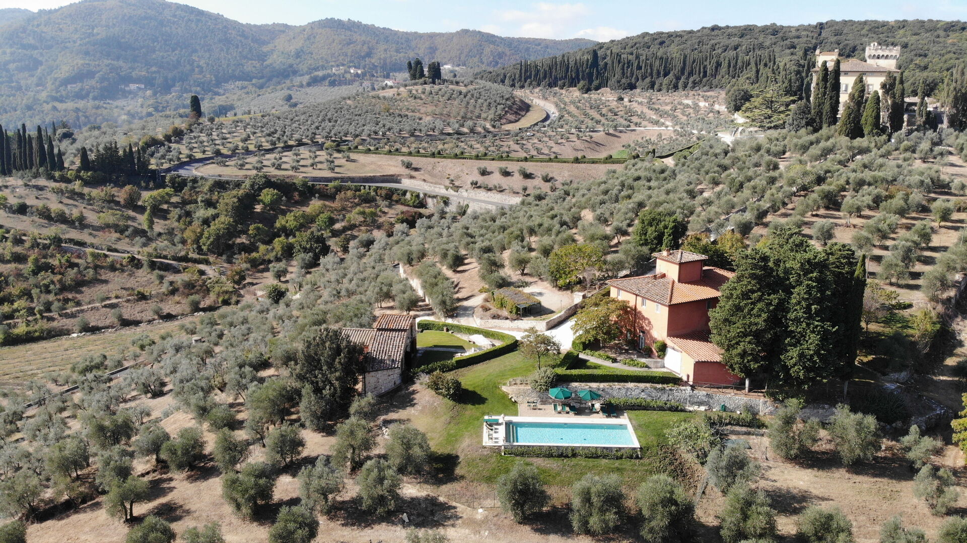 Confortable villa issue de la rénovation d'une ancienne propriété dont les origines remontent à 1300, située dans les environs immédiats de Florence (à seulement 15 km). La propriété fait partie d'une grande exploitation agricole de 200 hectares de champs cultivés en partie de vignobles et en partie d'oliviers où l'on produit d'excellents vins et une excellente huile d'olive extra-vierge.
