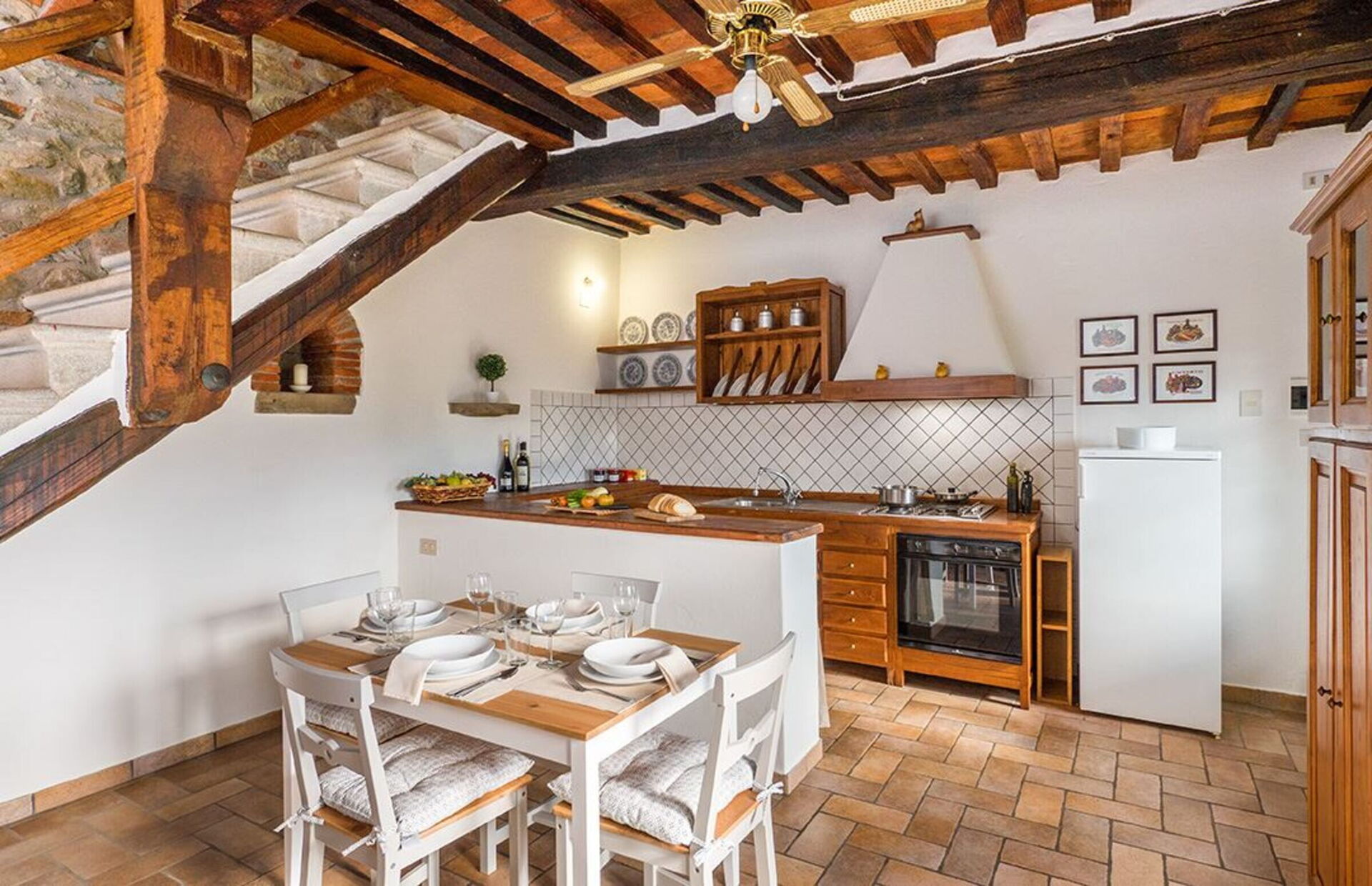 Une fois arrivés à Villa Gustavo vous trouverez une jolie propriété, propre et bien entretenue, avec vue sur les collines parfaite pour des calmes vacances en Toscane. Peu importe comment vous passez vos journées... visites, visites de musées, shopping ou tout simplement en vous baladant à la campagne, quand vous arrivez à la maison, vous pouvez vous délasser à la piscine avec votre famille et vos amis et conclure au mieux un autre jour de vacances en Toscane. Aussi disponibles en plein air sont une véranda et un barbecue. Il y a une cuisine y compris machine à café et réfrigérateur, ainsi que, assez de vaisselle et couverts jusqu'à dix personnes. Si vous préférez dîner «al fresco», il y a à votre disposition un patio entièrement meublé où vous pourrez profiter du beau temps tout en mangeant en plein air.