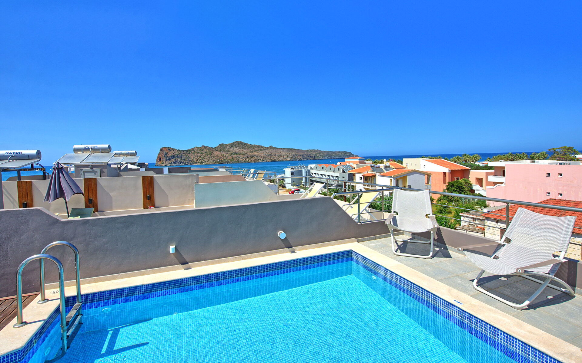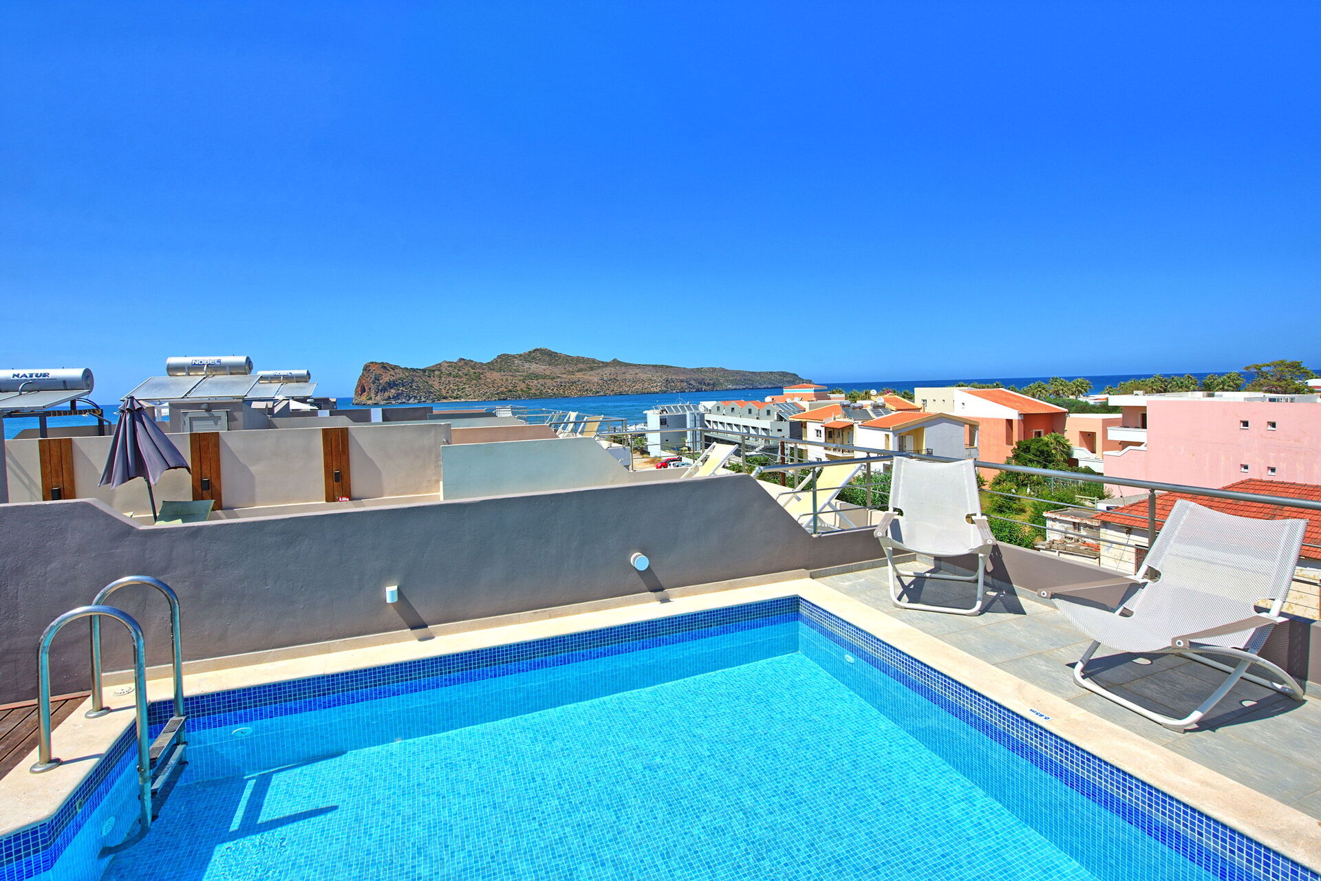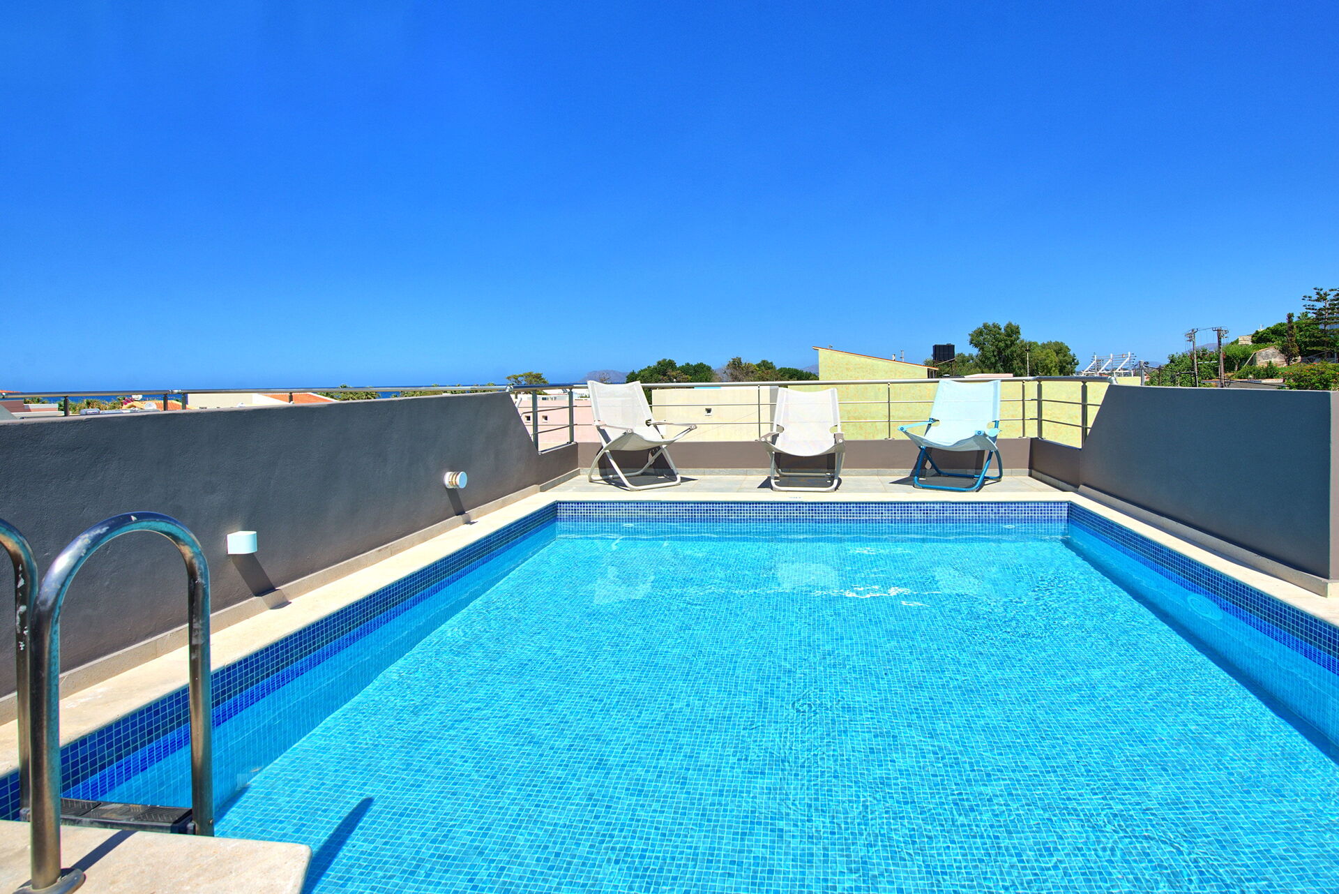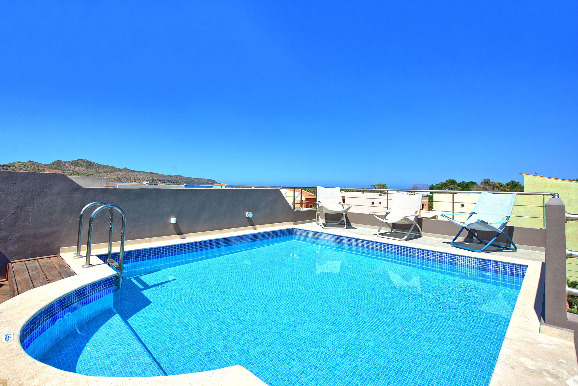 Comfortable Villa Rental in Crete offering 4 bedrooms and a private pool situated on the last floor of the property.