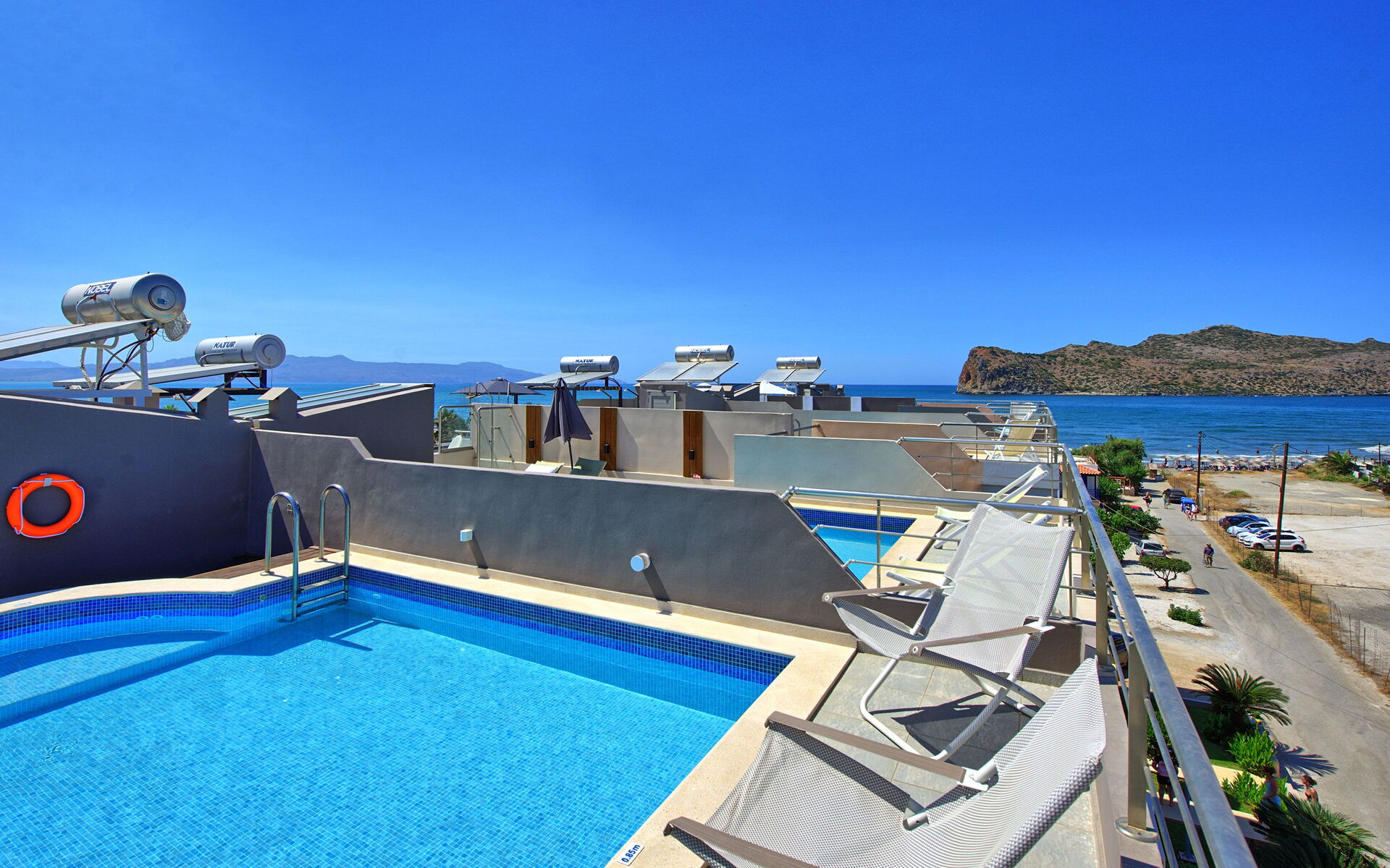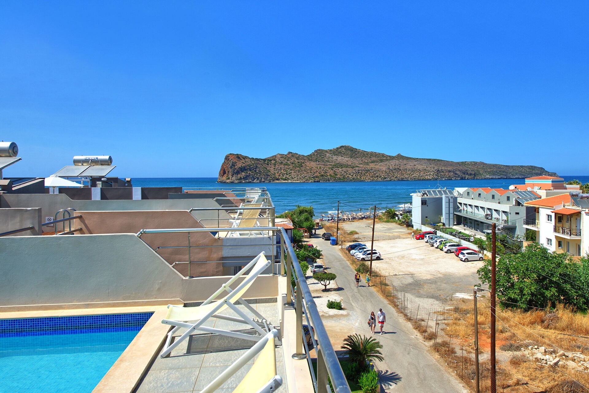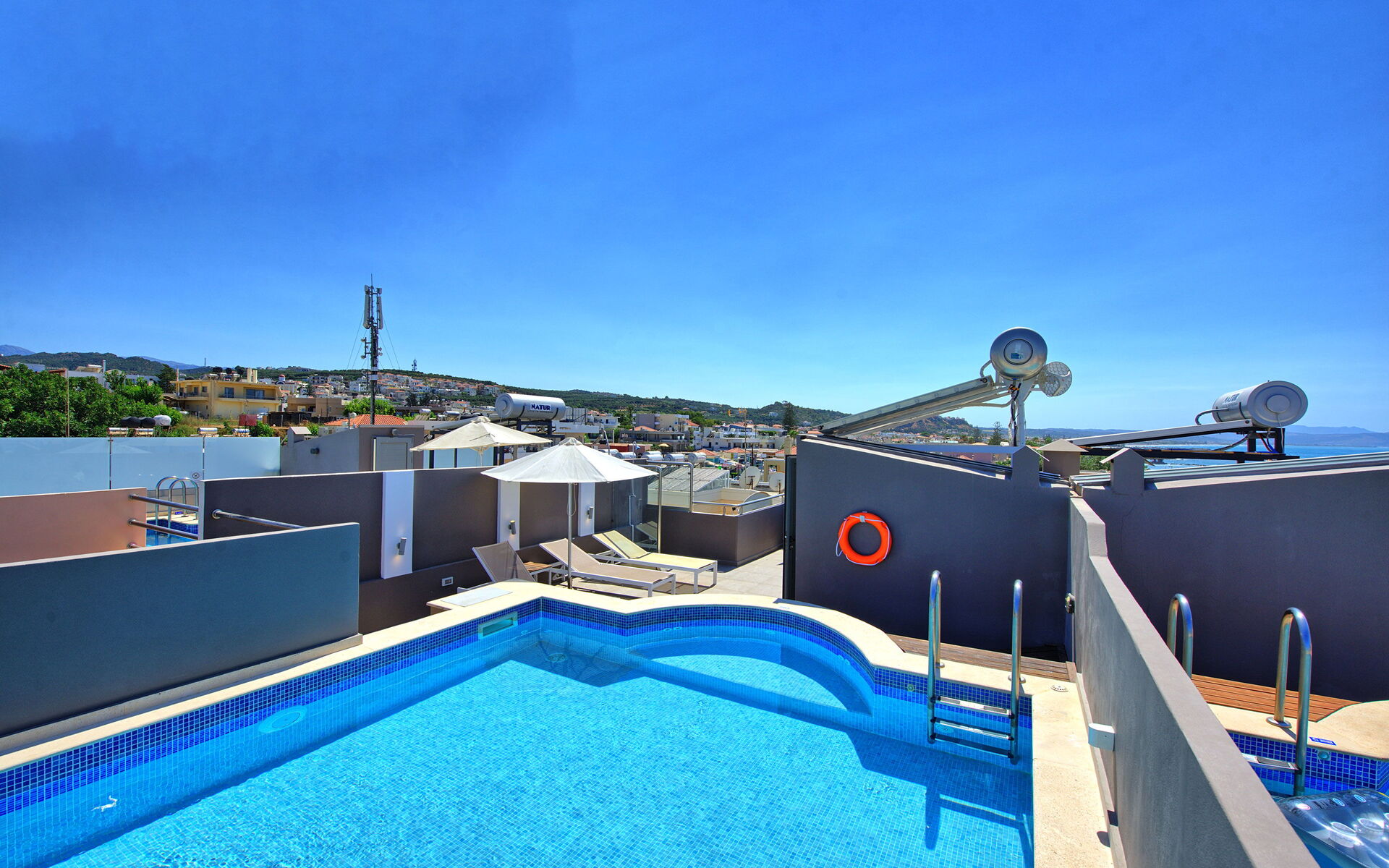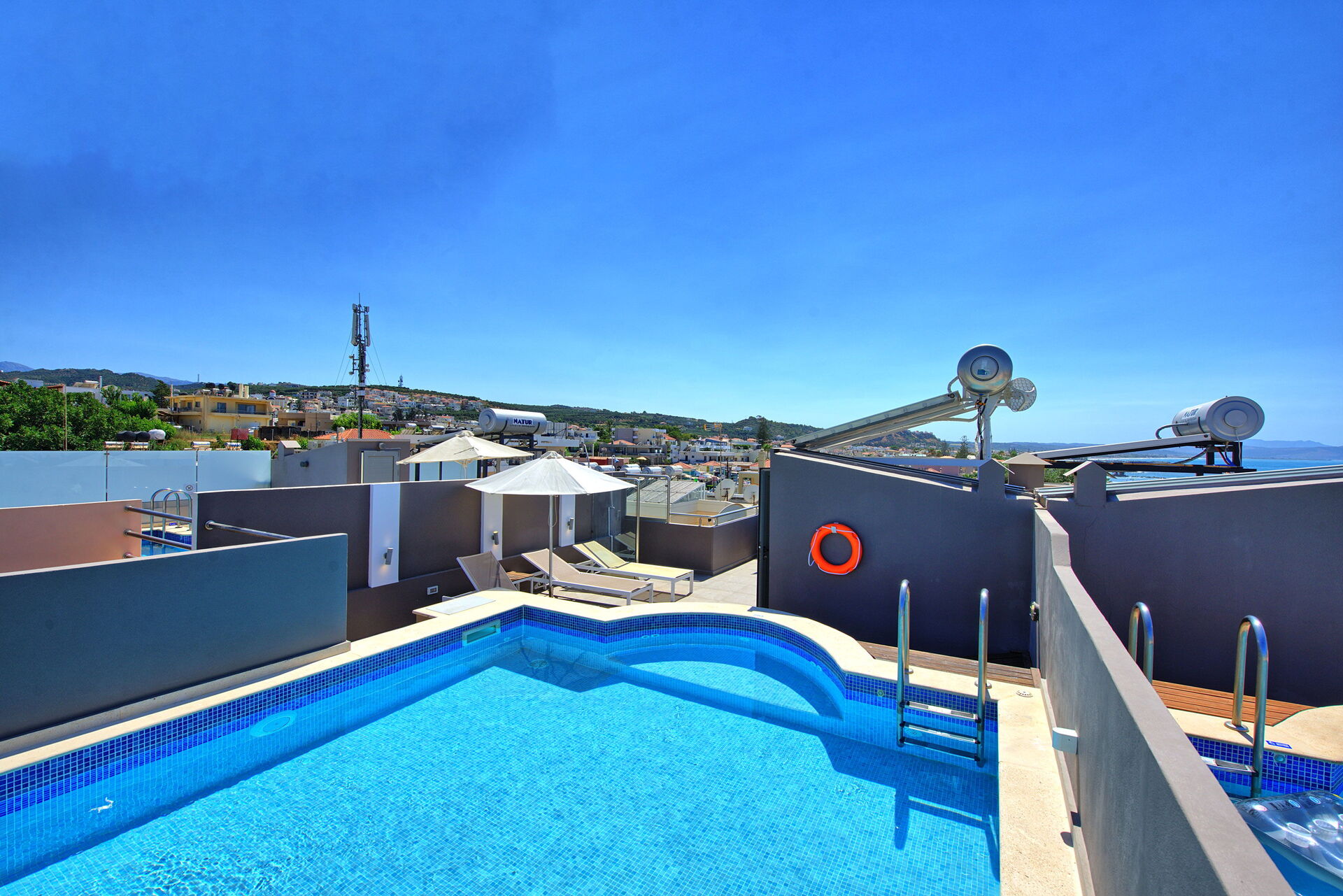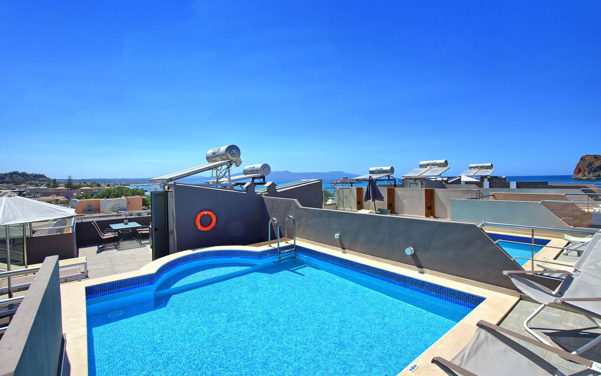 Comfortable Villa Rental in Crete offering 4 bedrooms and a private pool situated on the last floor of the property.