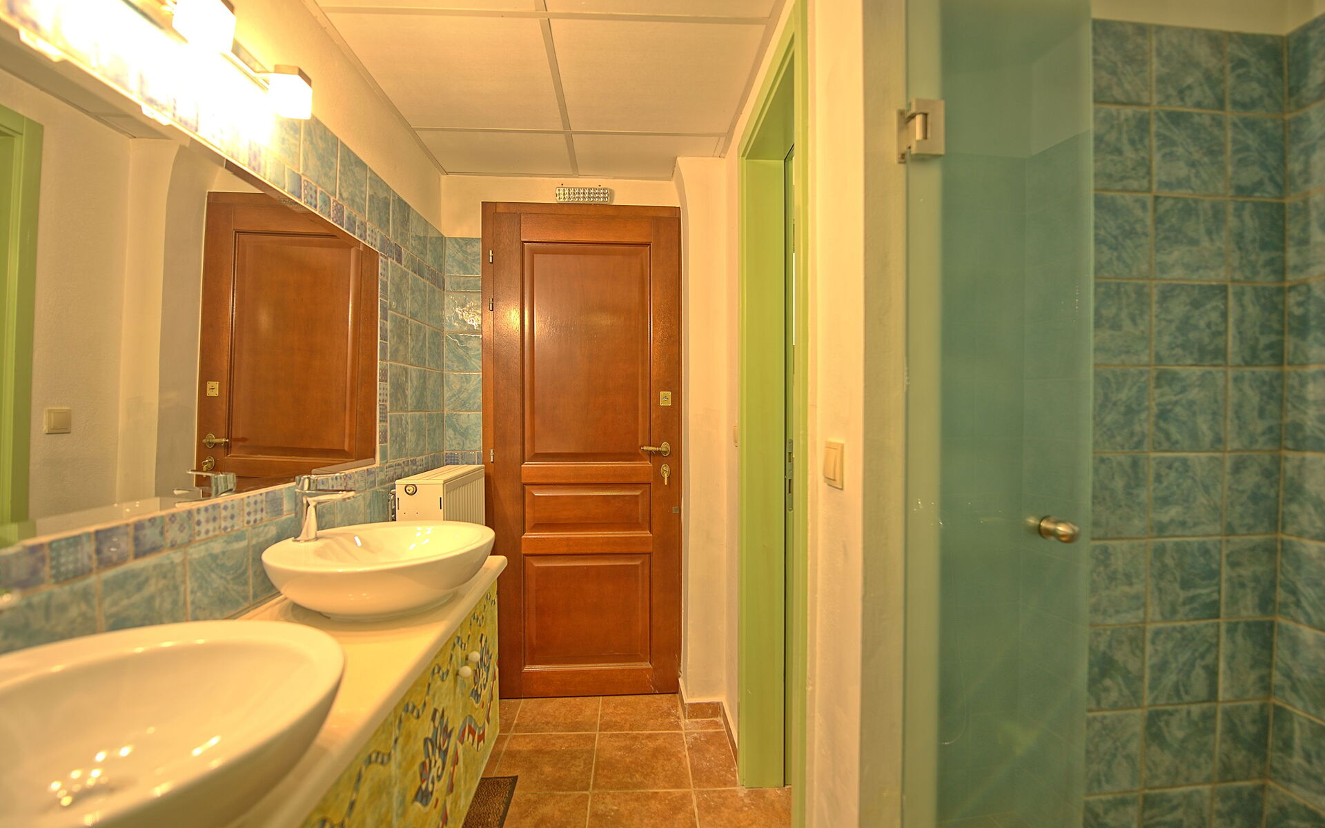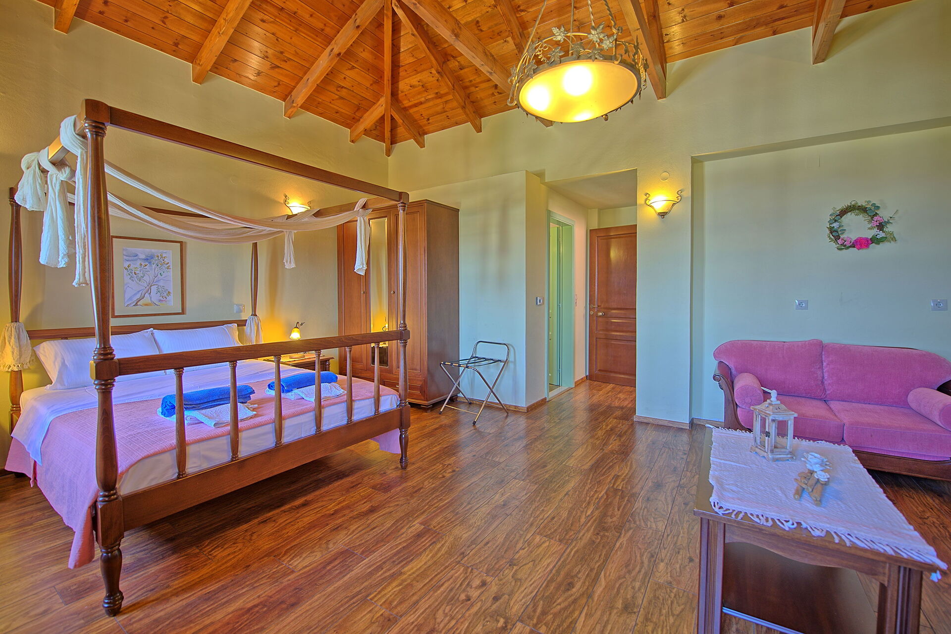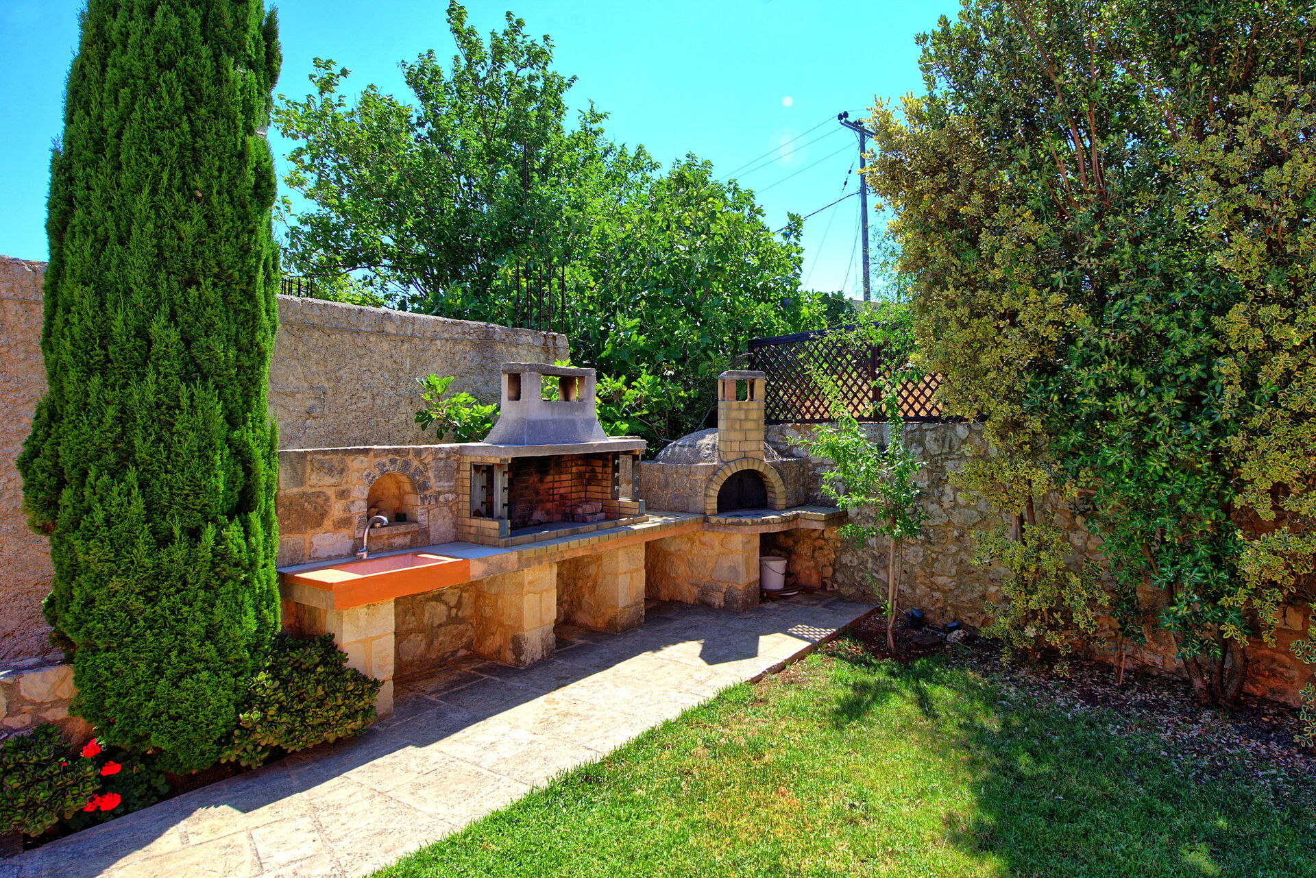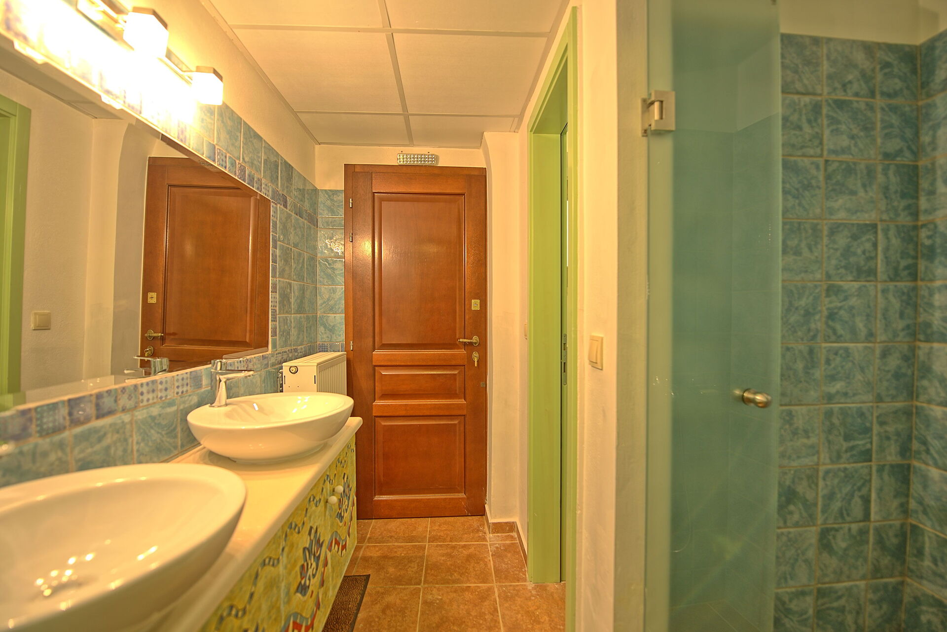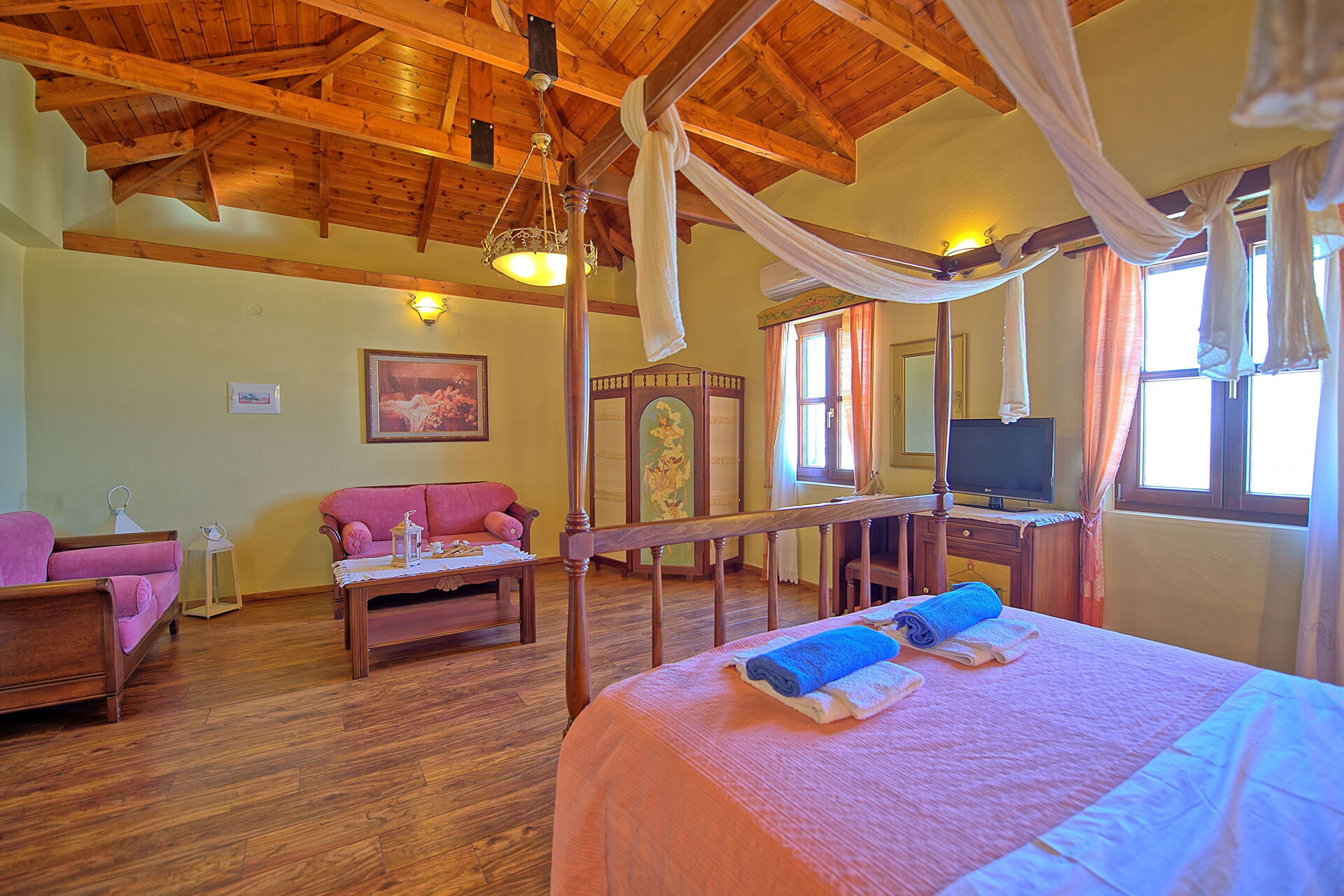 Villa with pool 5 km from the sea in Crete. It has 4 bedrooms, each with a private bathroom; a private pool; and a terrace with beautiful sea views. The rustic style interiors are very welcoming. Beaches and Lake Kournas are 5 km away.