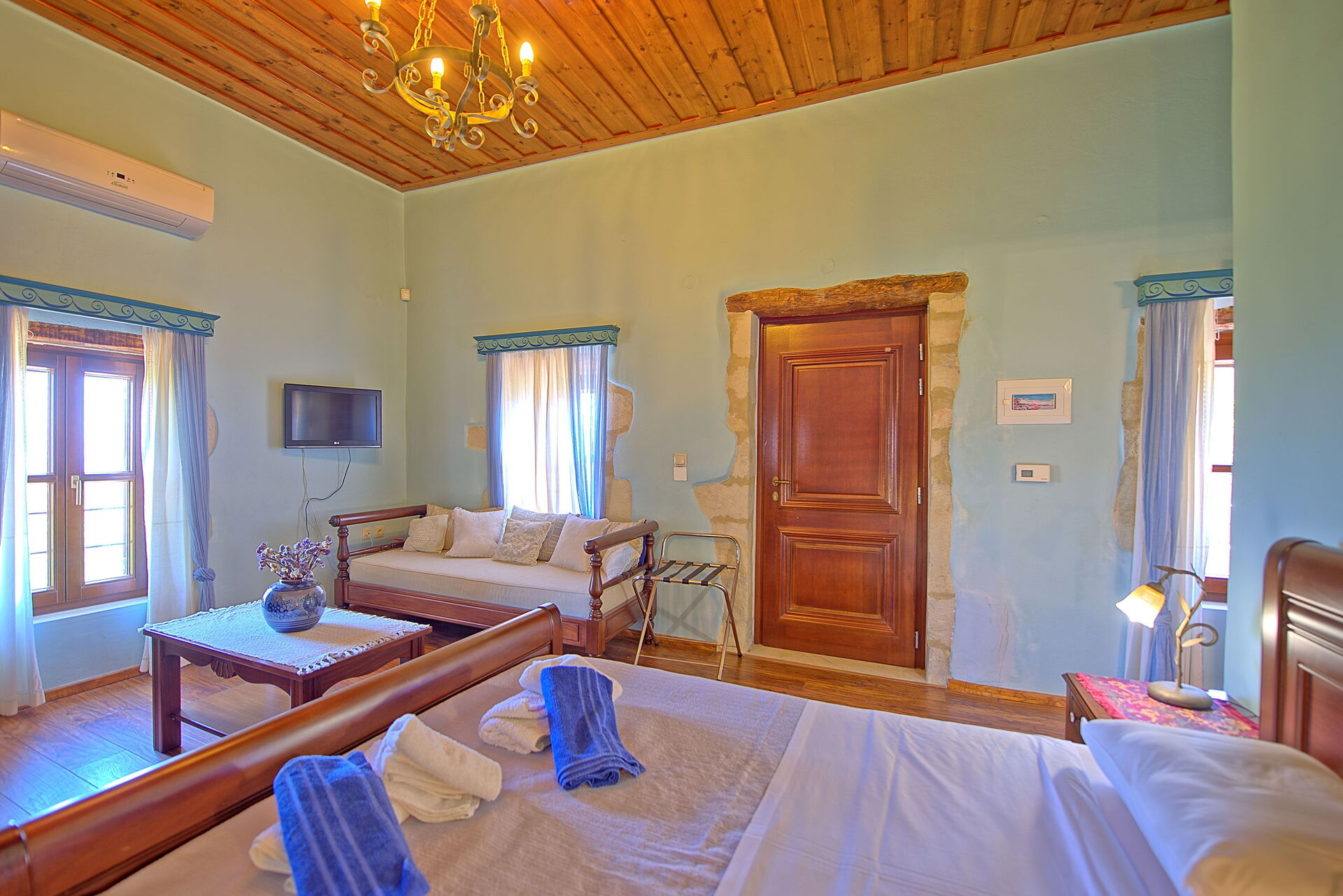 Distances: Kastelli 300 meters away, Lake Kournas 5 km, Georgioupoli 10 km, Rethymno 25 km, Chania 45 km.