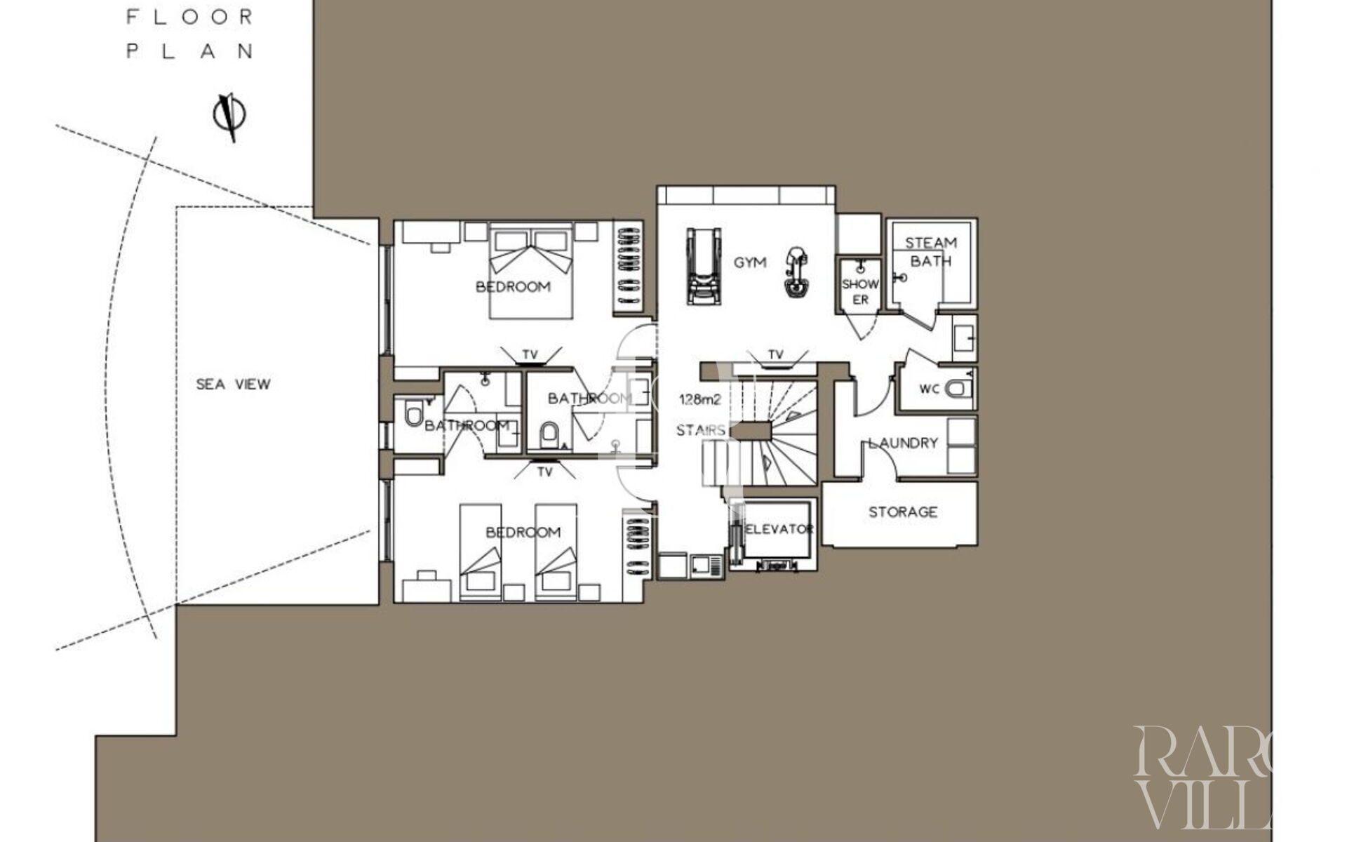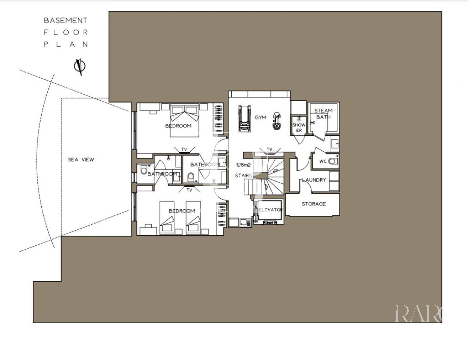 For the convenience of the guests staying at that floor, there is an additional small kitchen space with a fridge. Modern Steam bath with beautiful celling, shower and toilet as well as a laundry room can be also found.